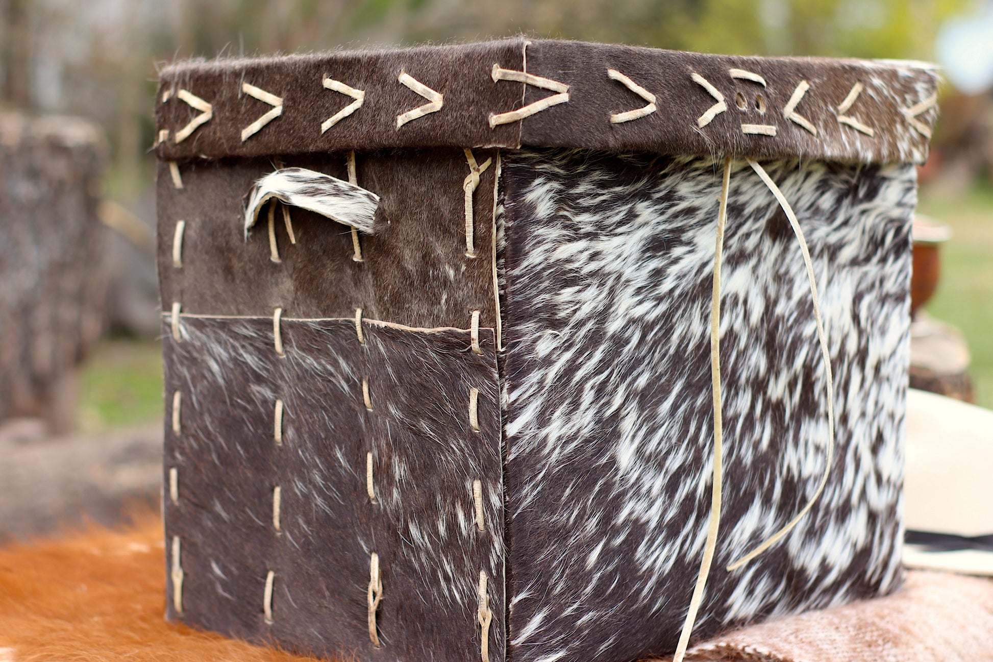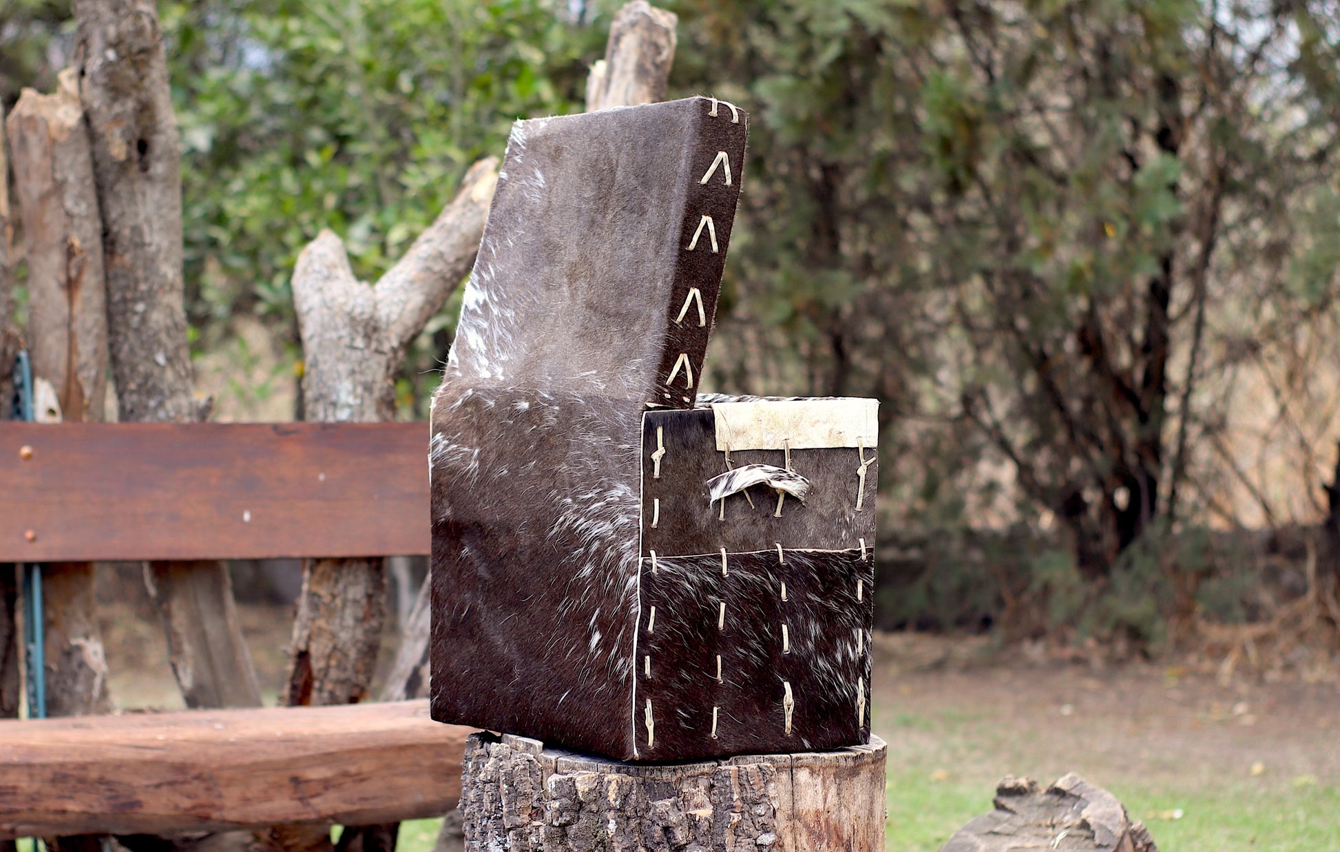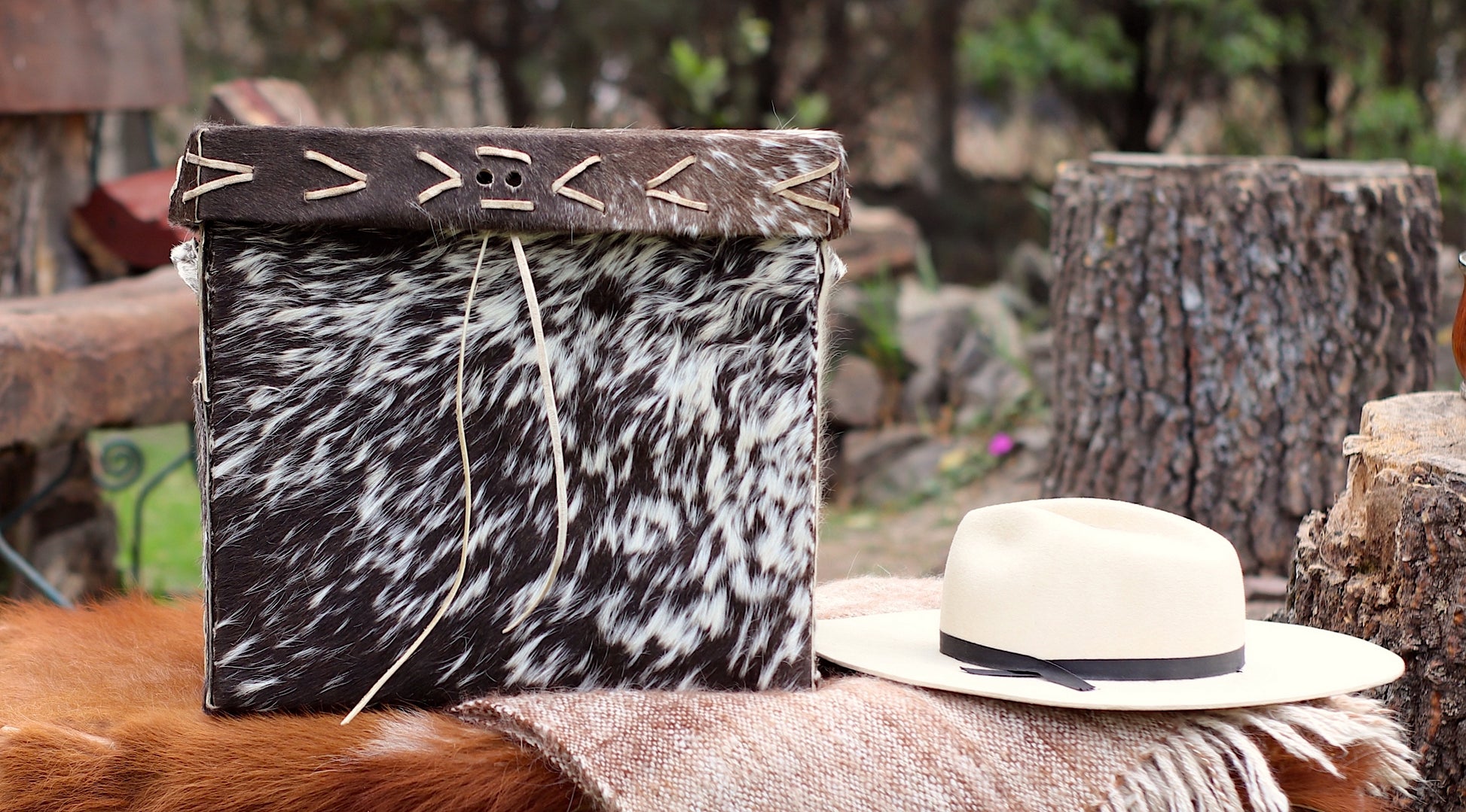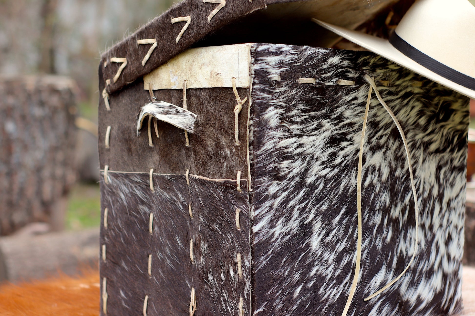 Baúl de cuero natural hecho a mano desde una sola pieza cocido con tientos.