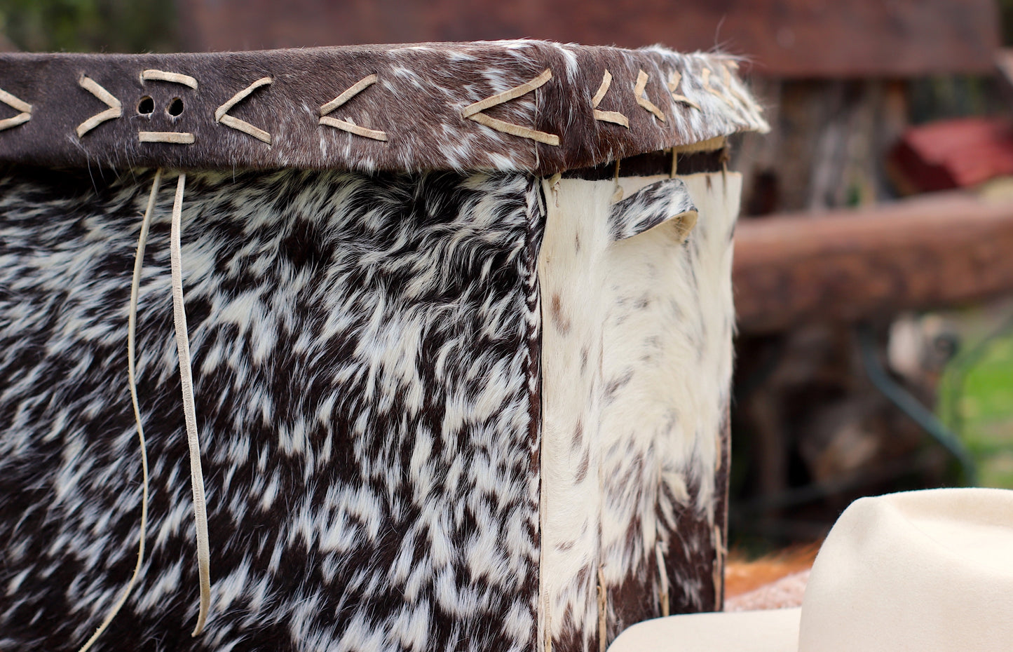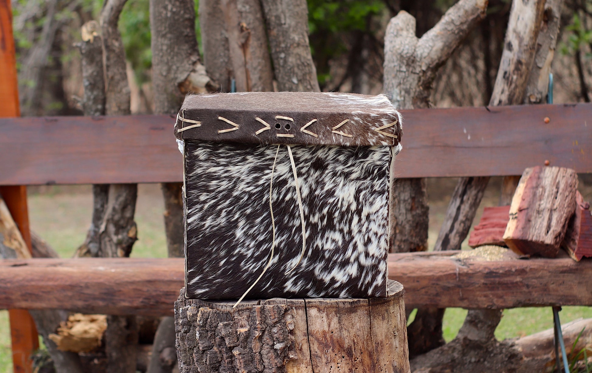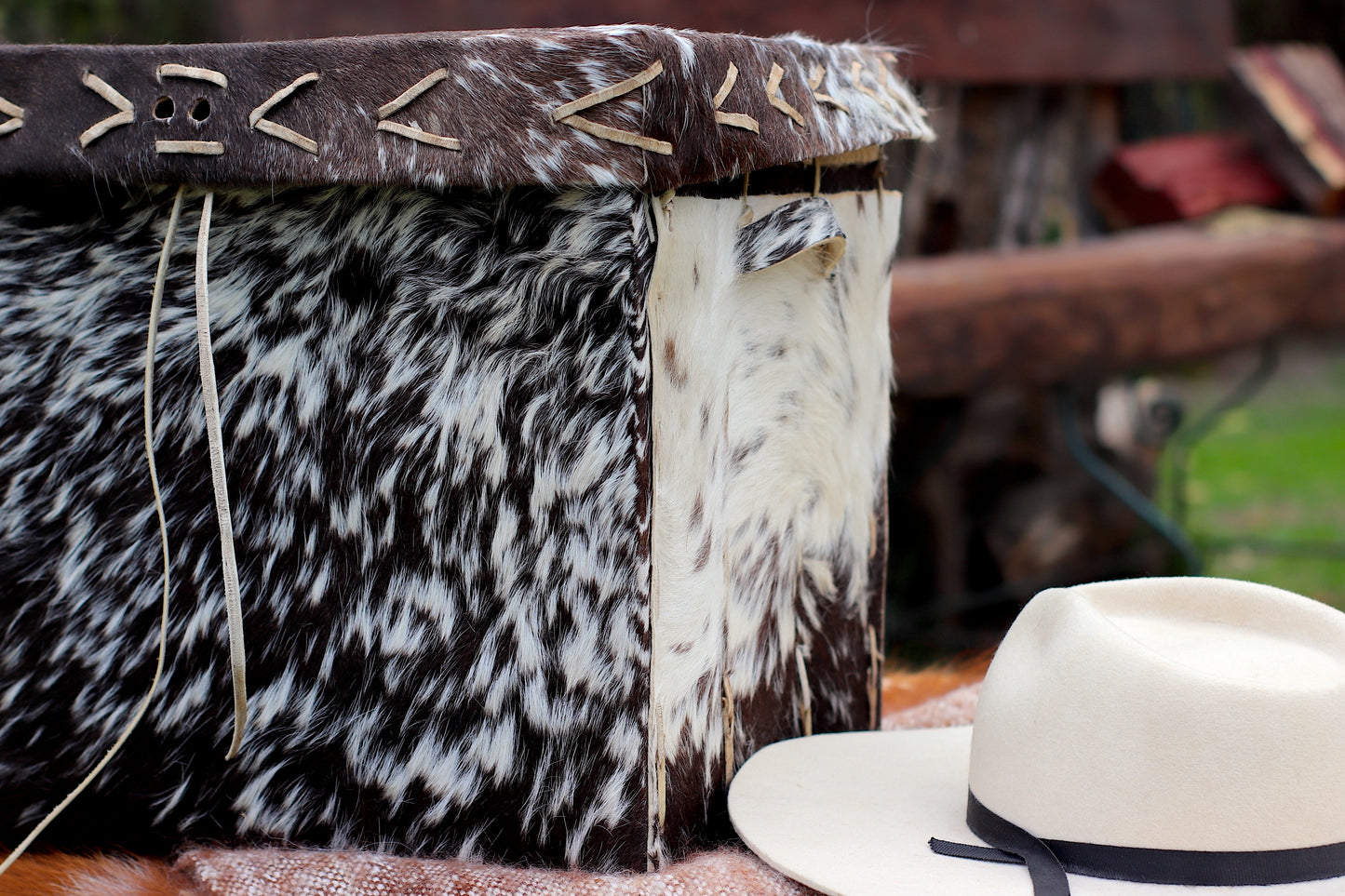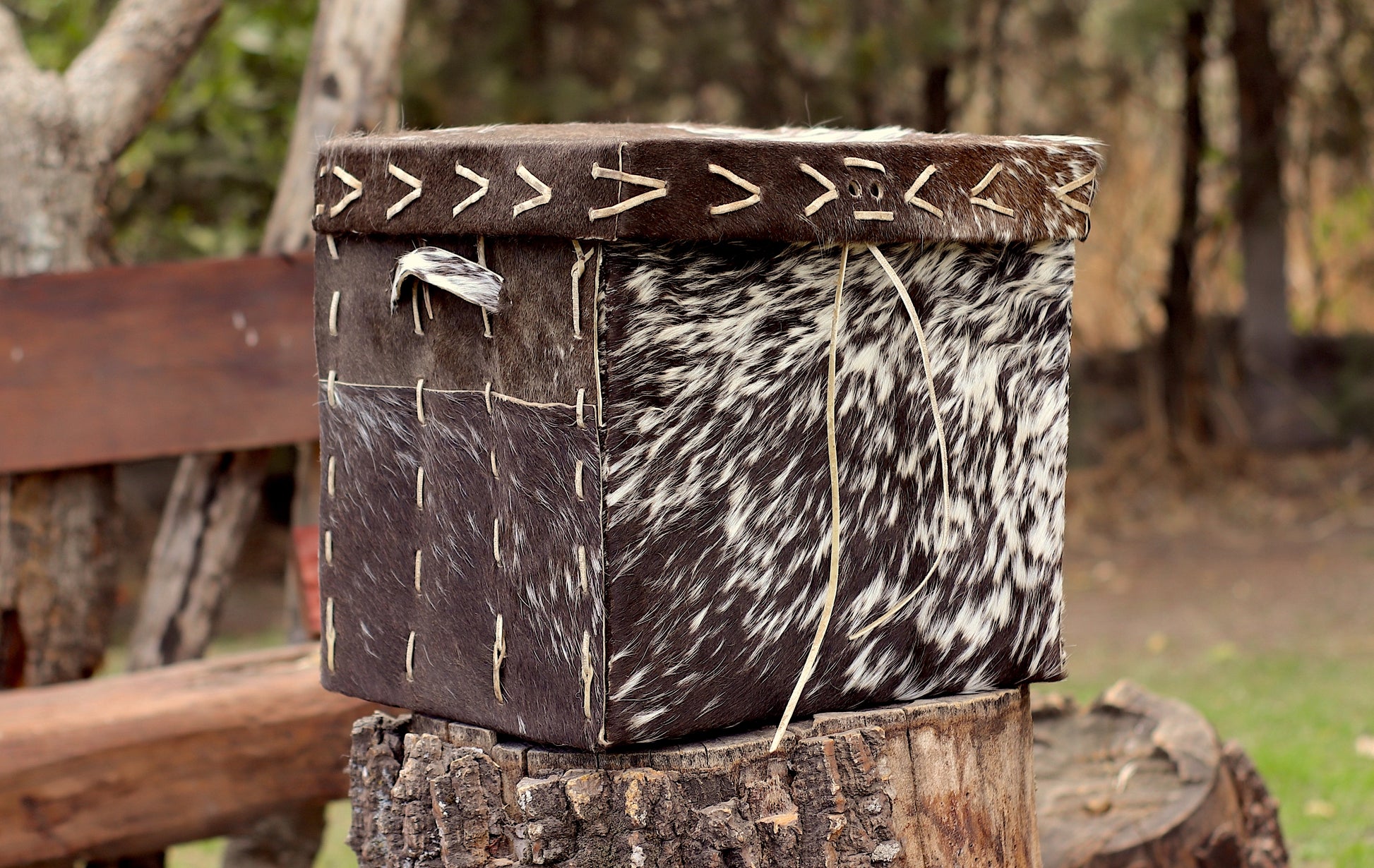 Baúl de cuero natural hecho a mano desde una sola pieza cocido con tientos.