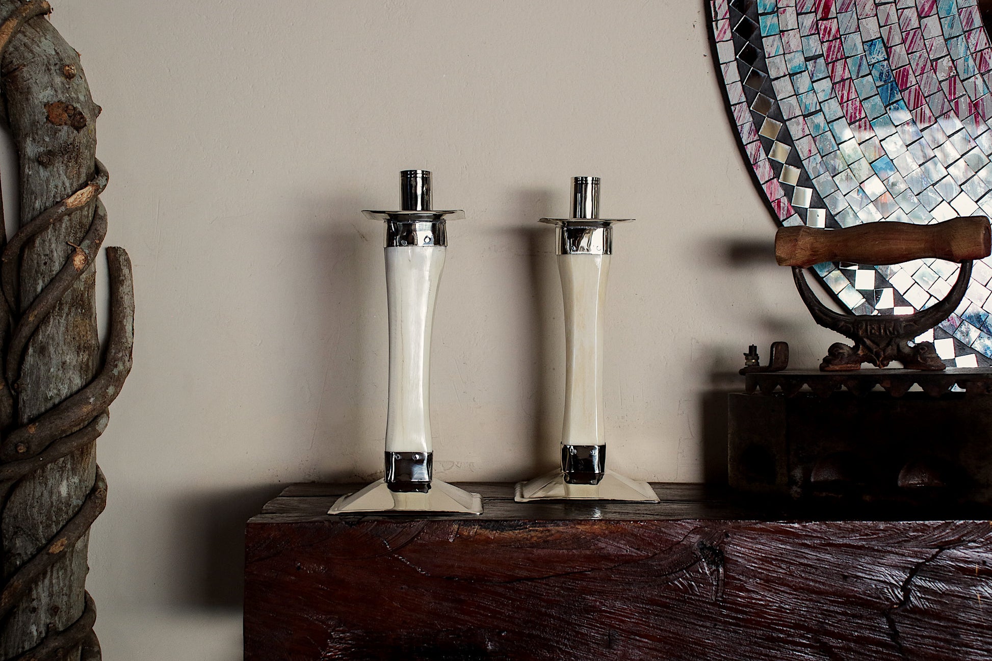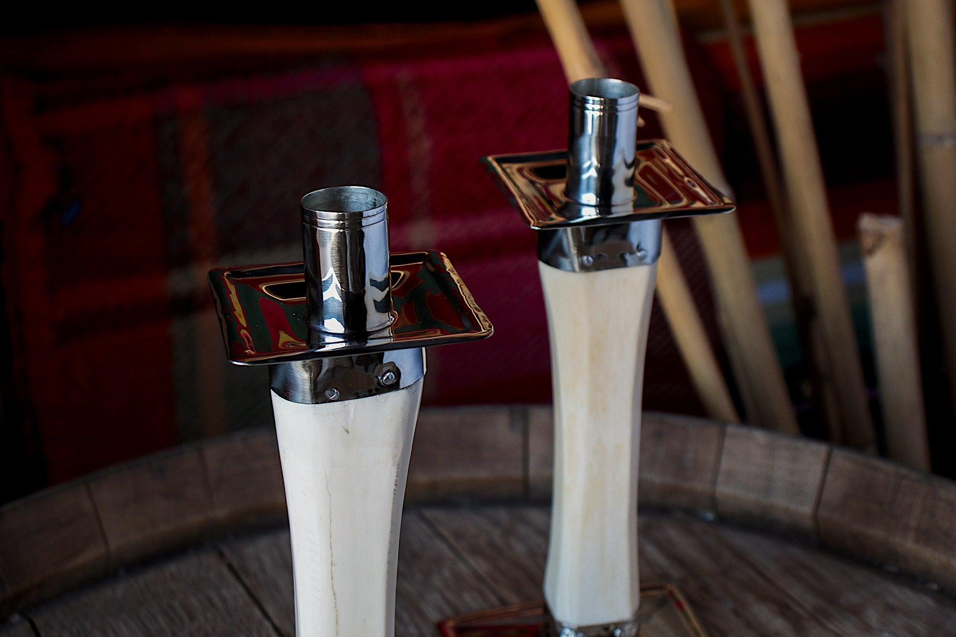 Las piezas son de Hueso y Alpaca y fueron trabajadas a mano en todas sus partes.