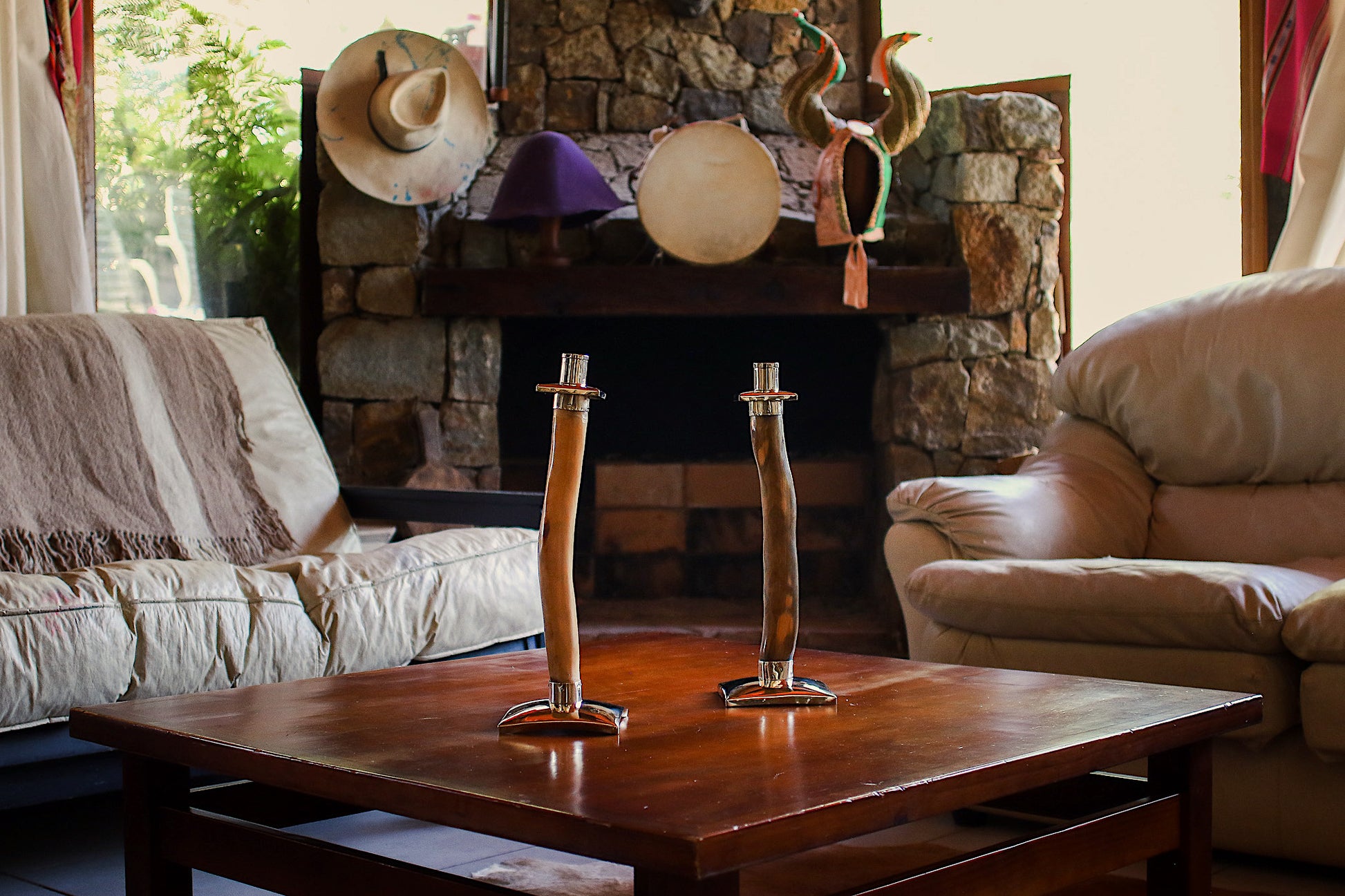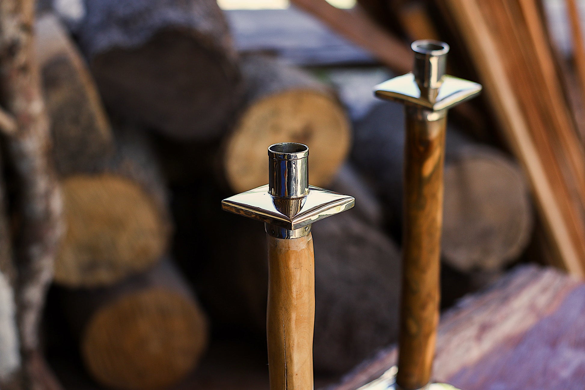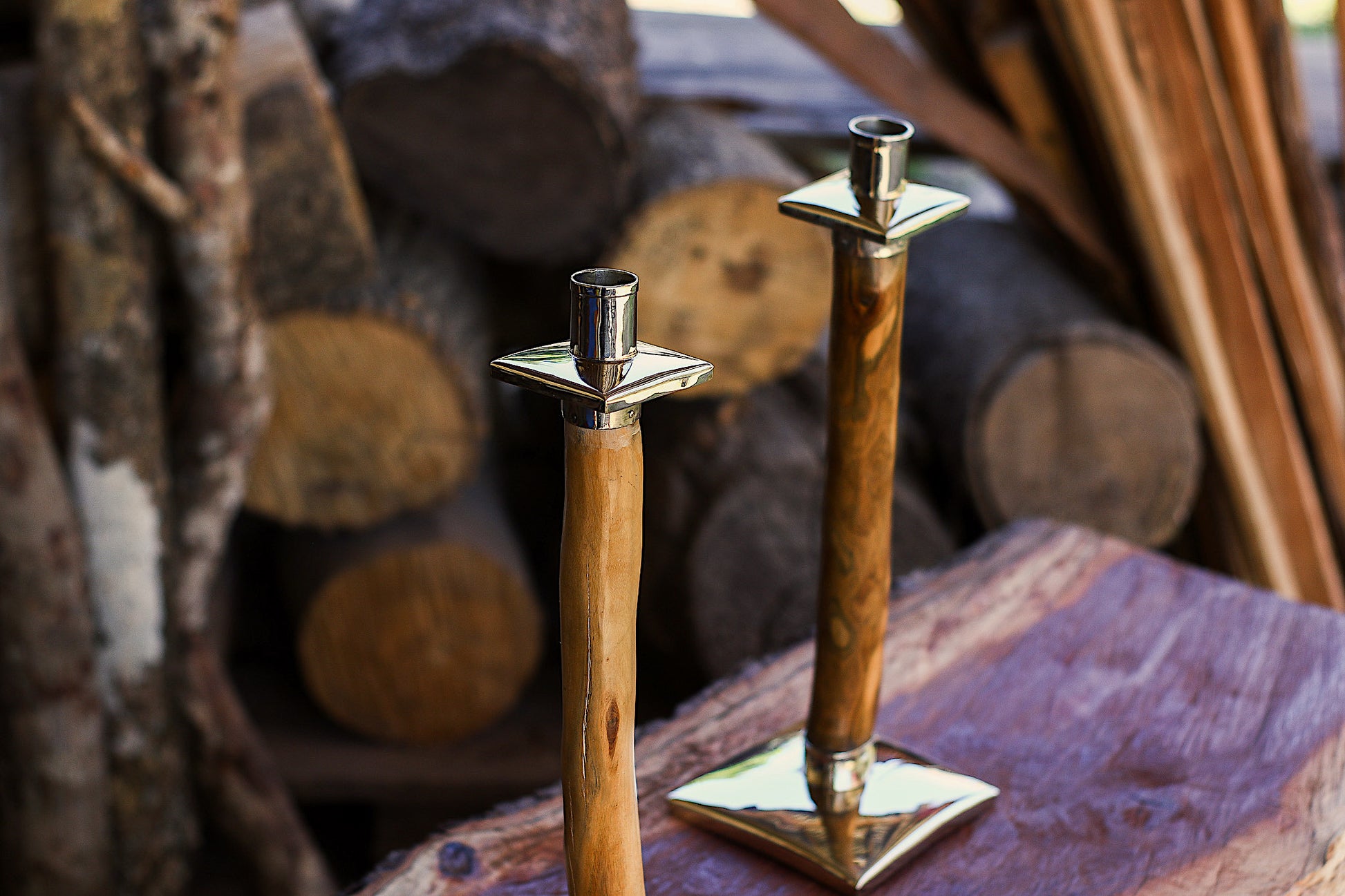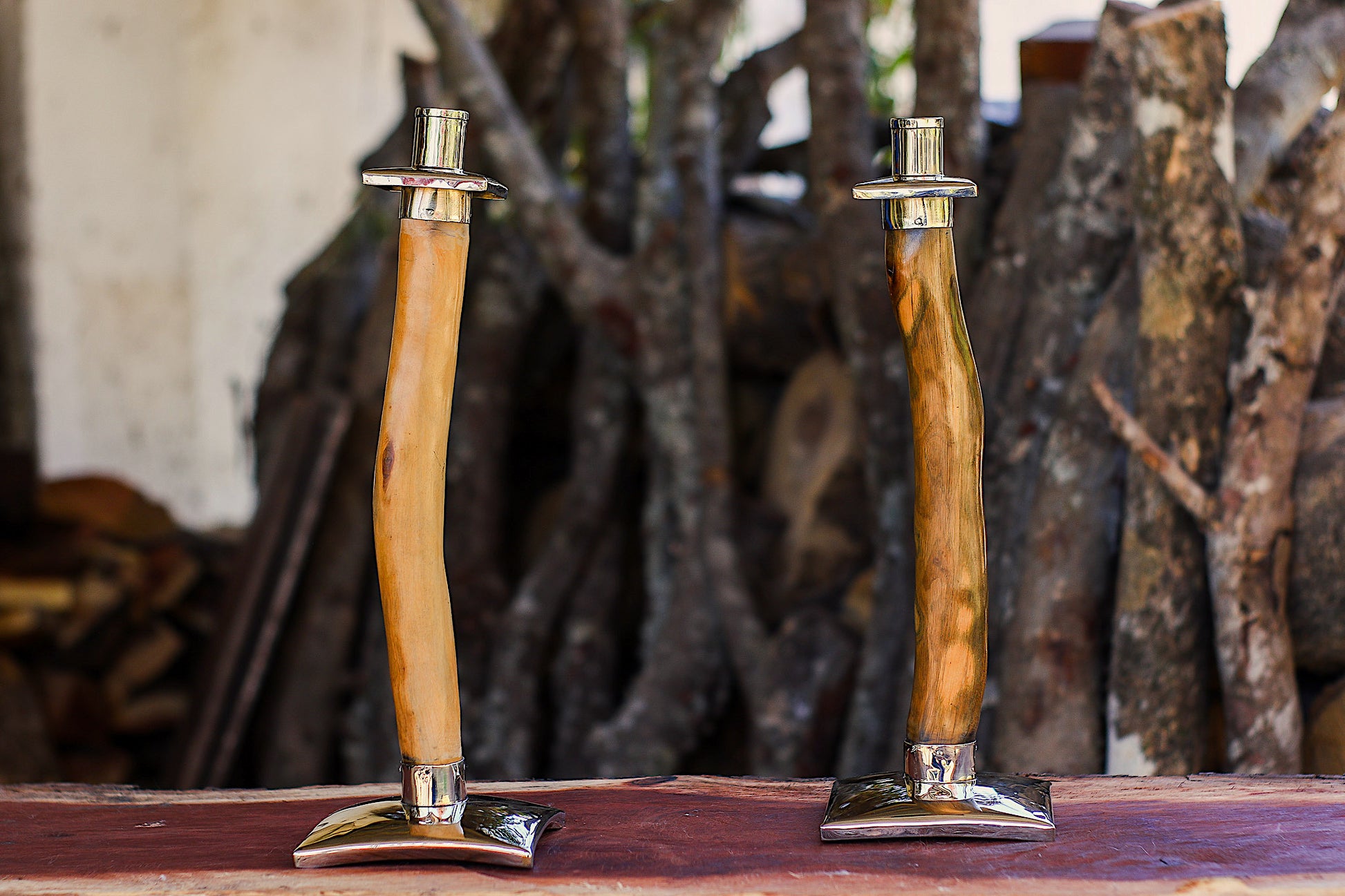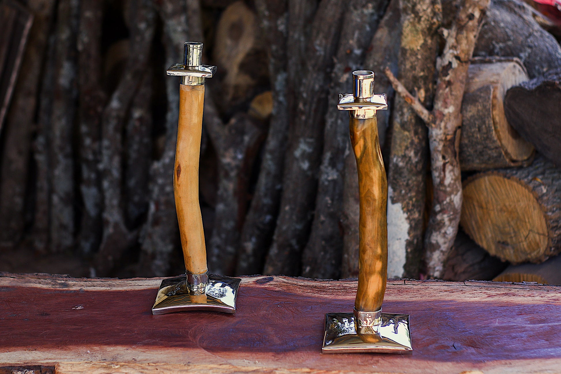 Candeleros de Palo Santo y Alpaca
