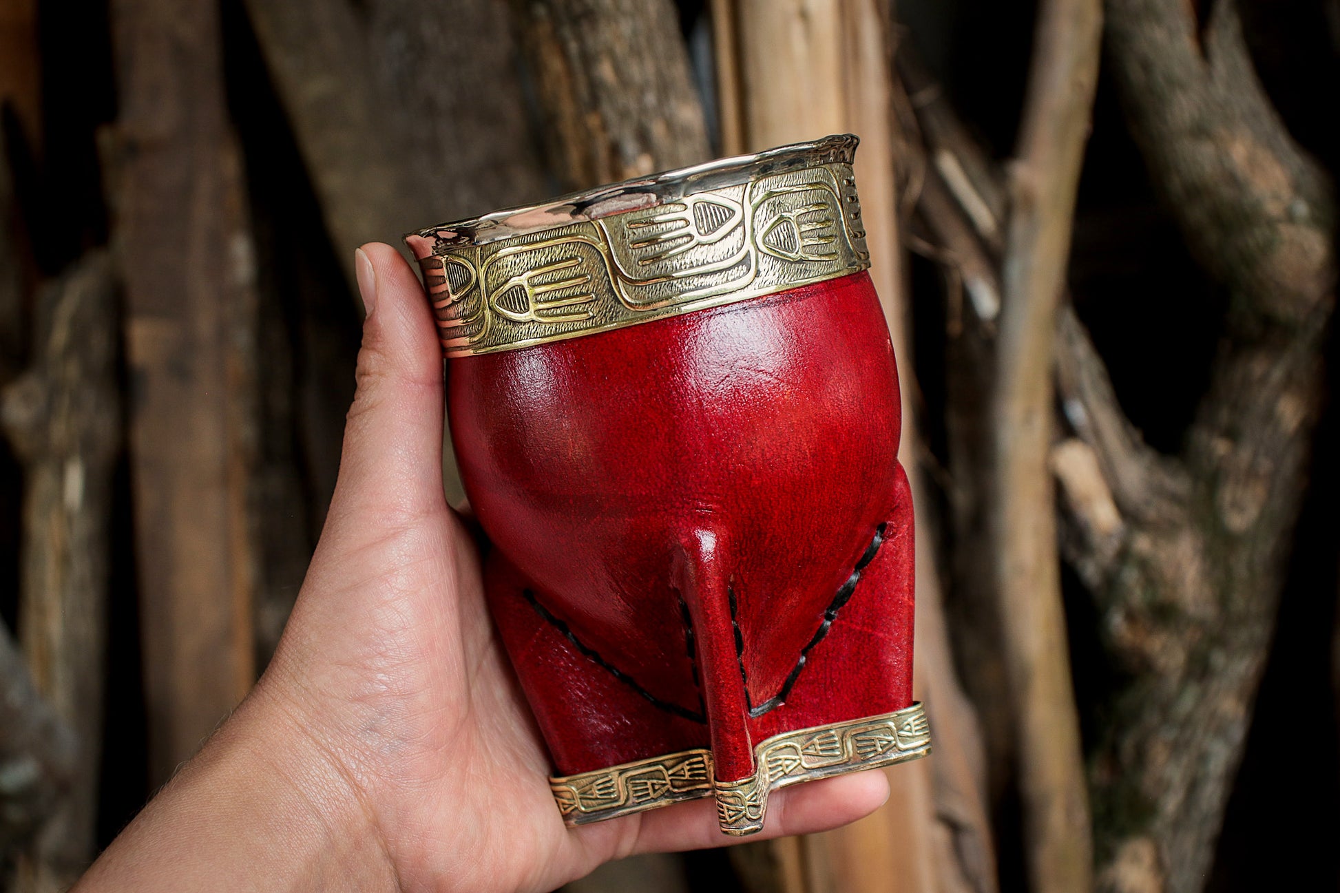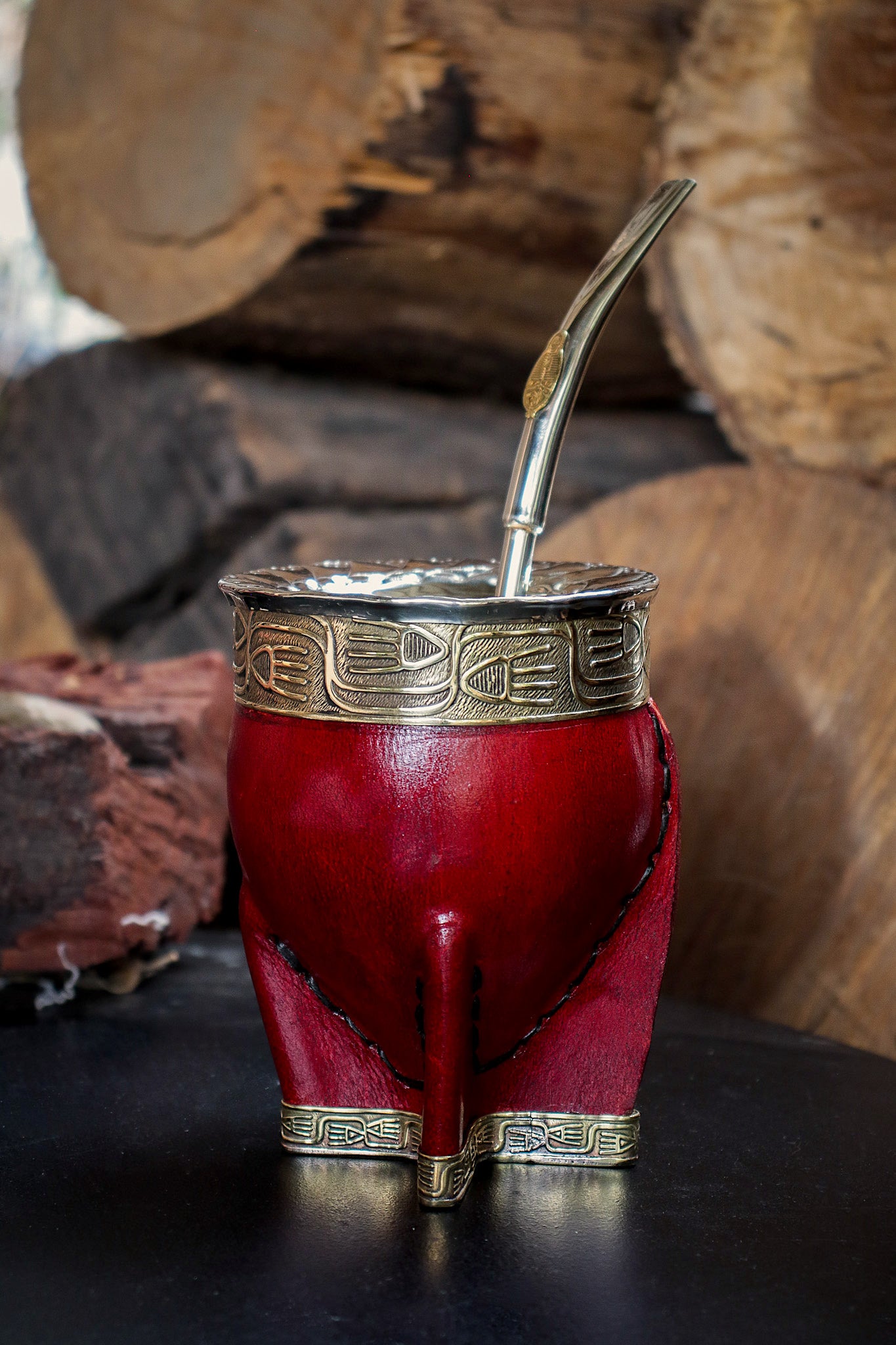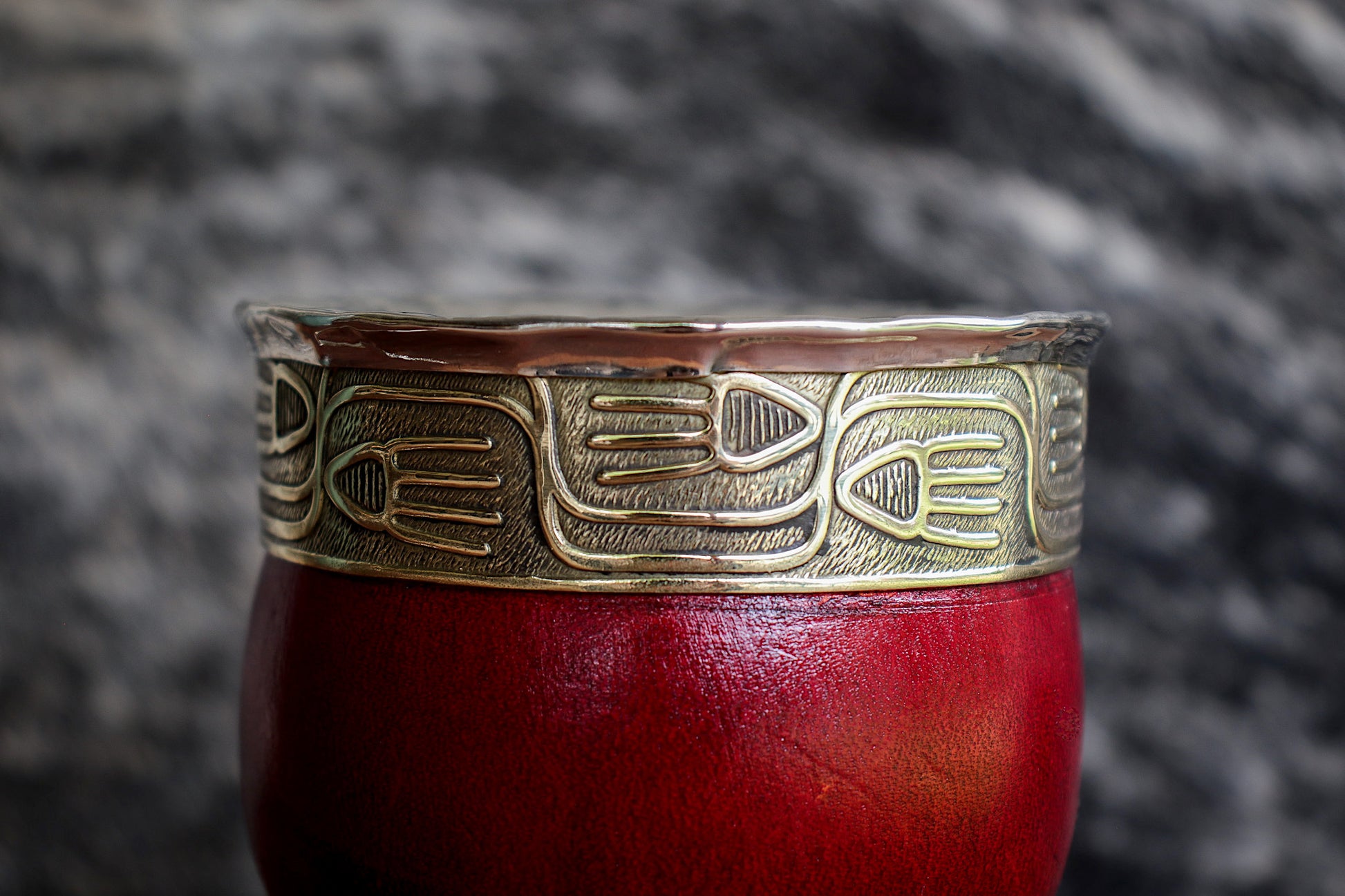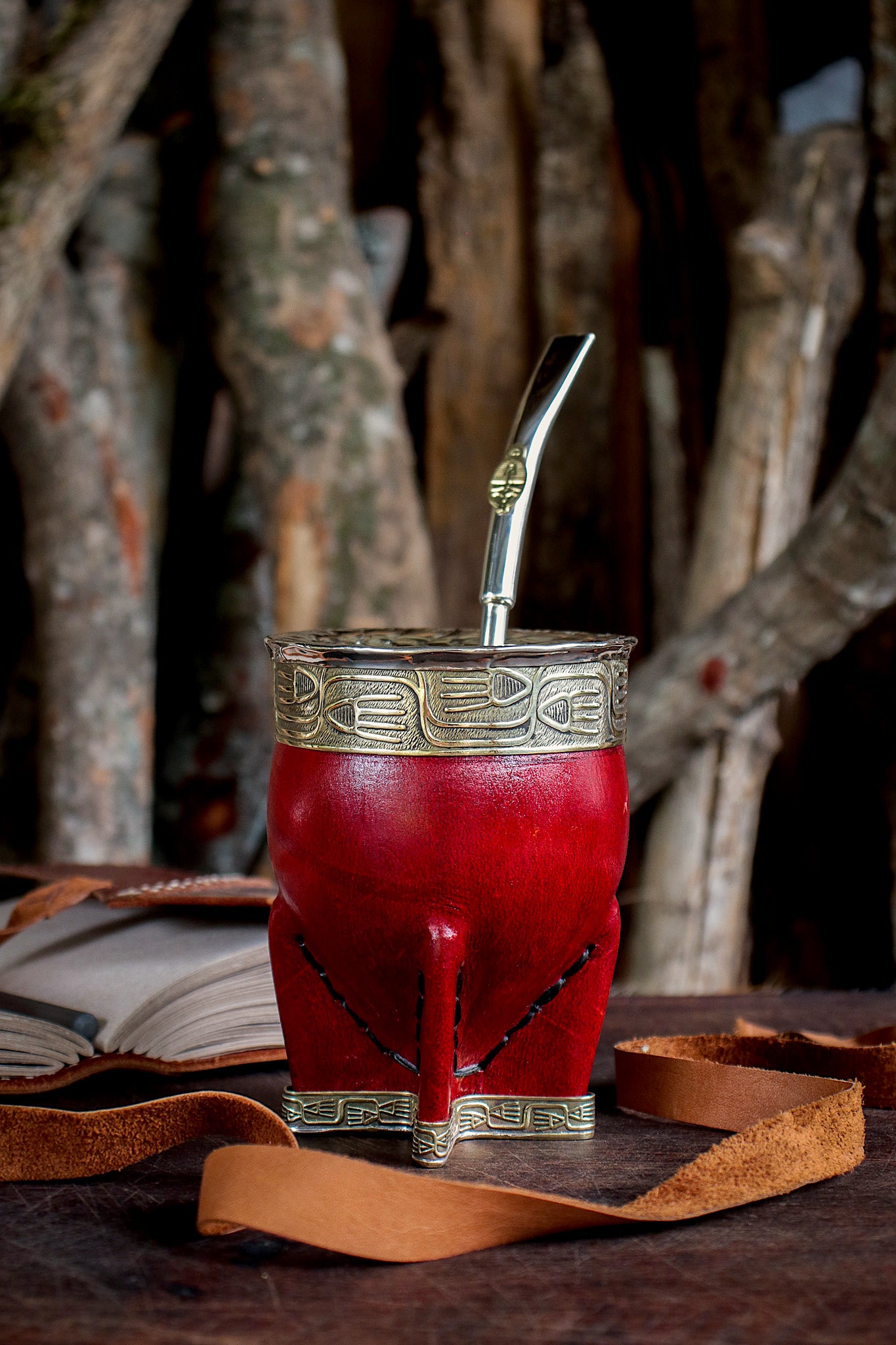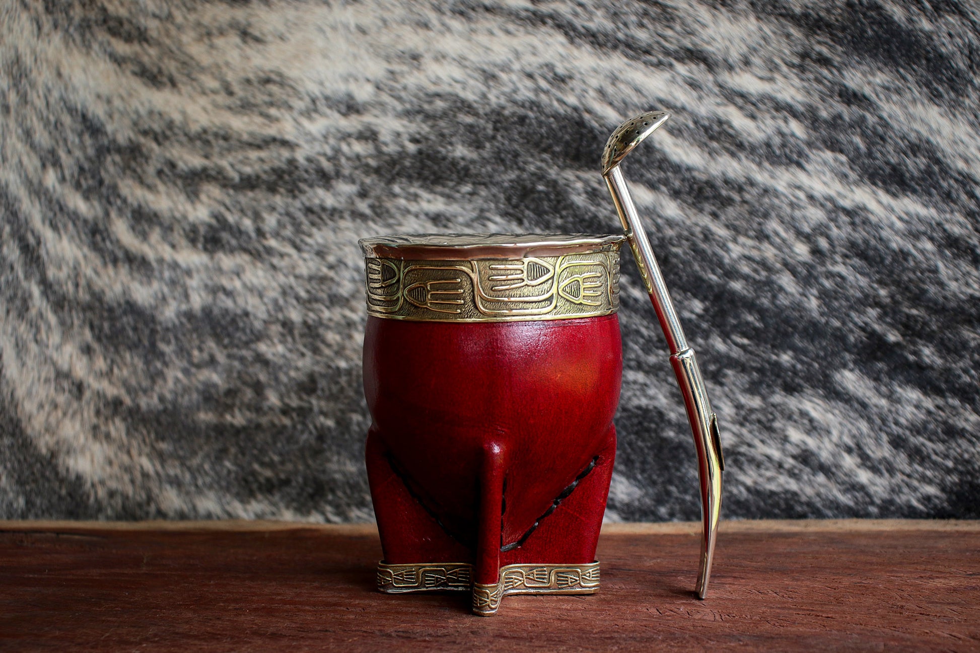 Mate imperial de porongo forrado artesanalmente en cuero natural.