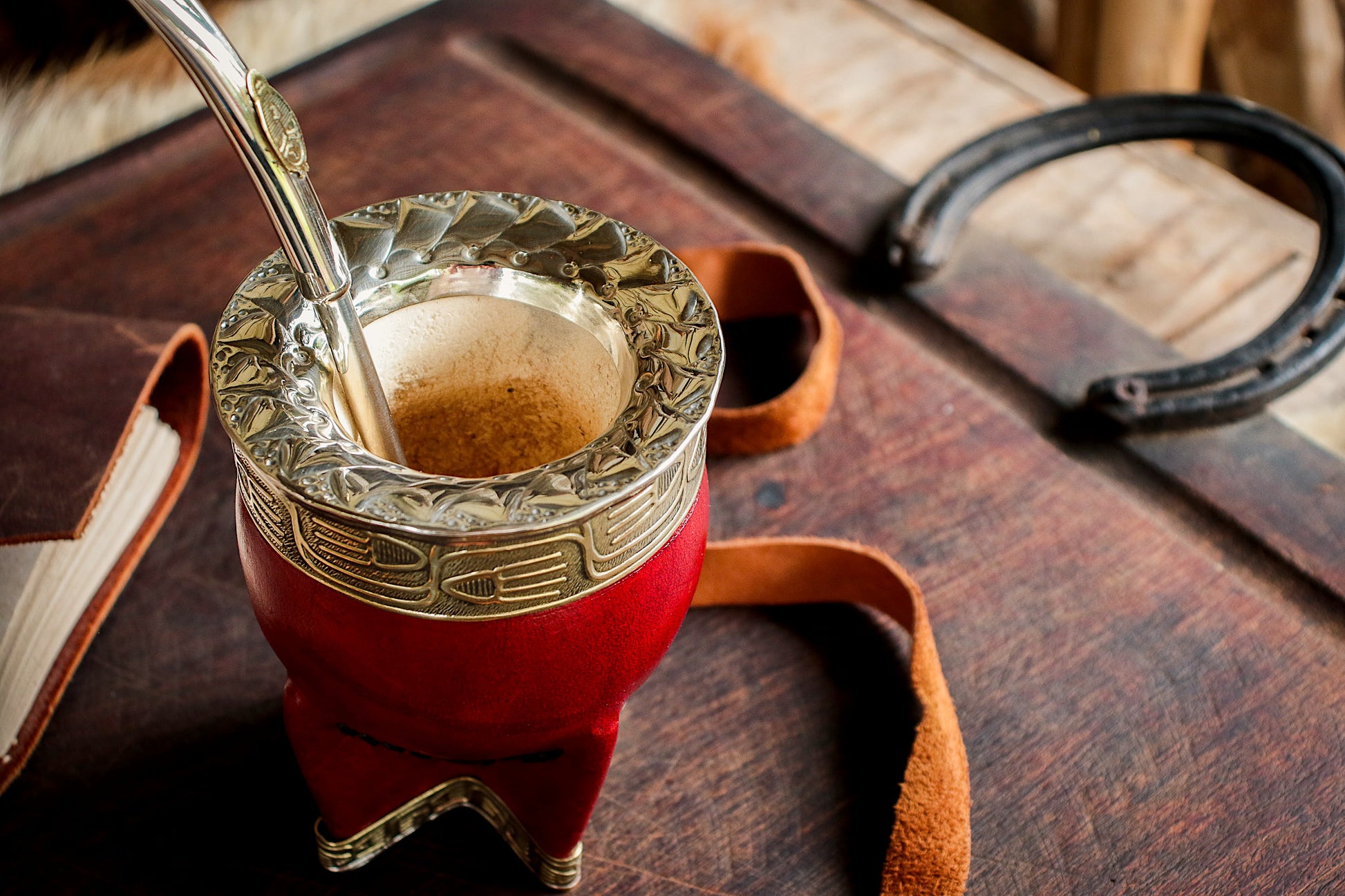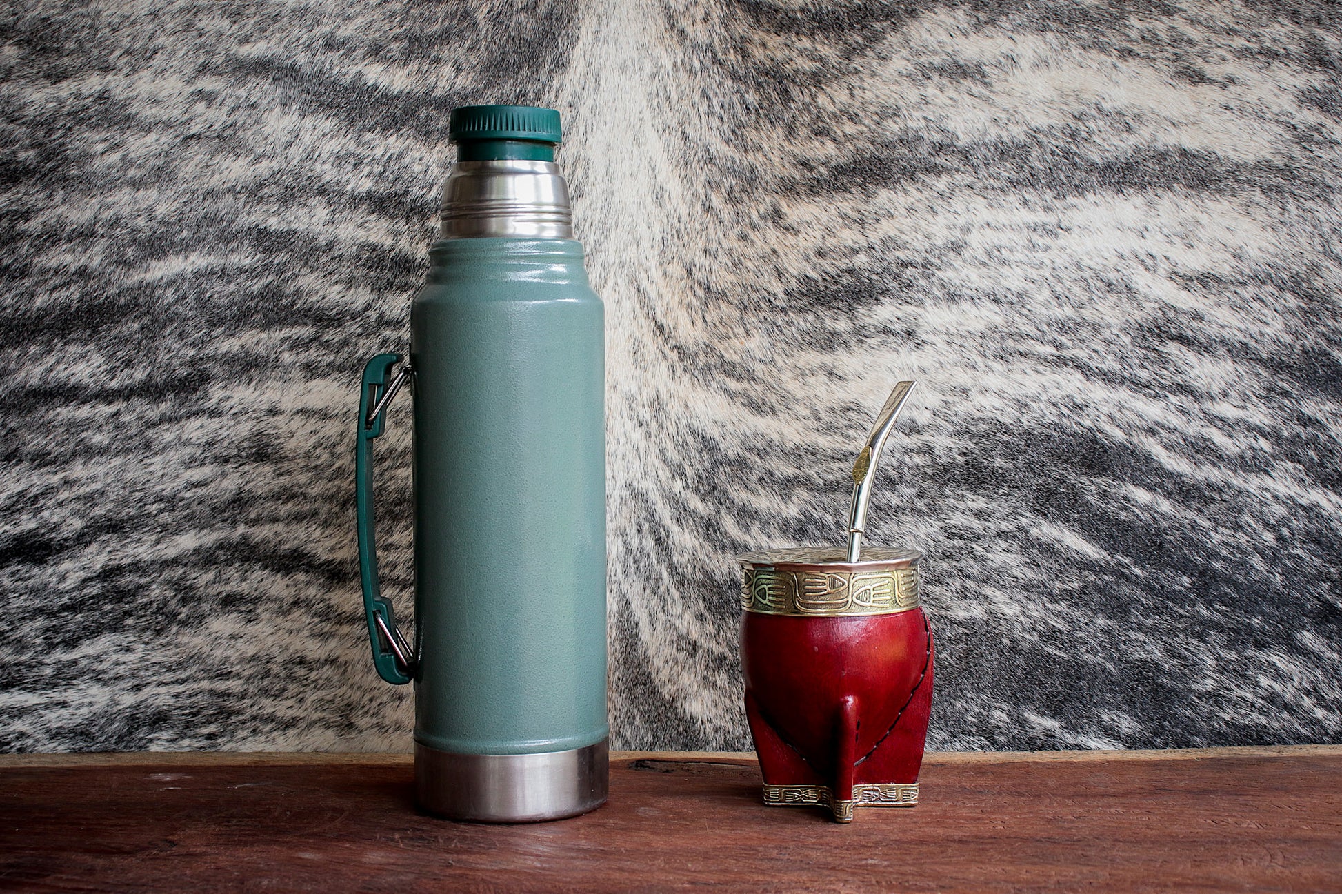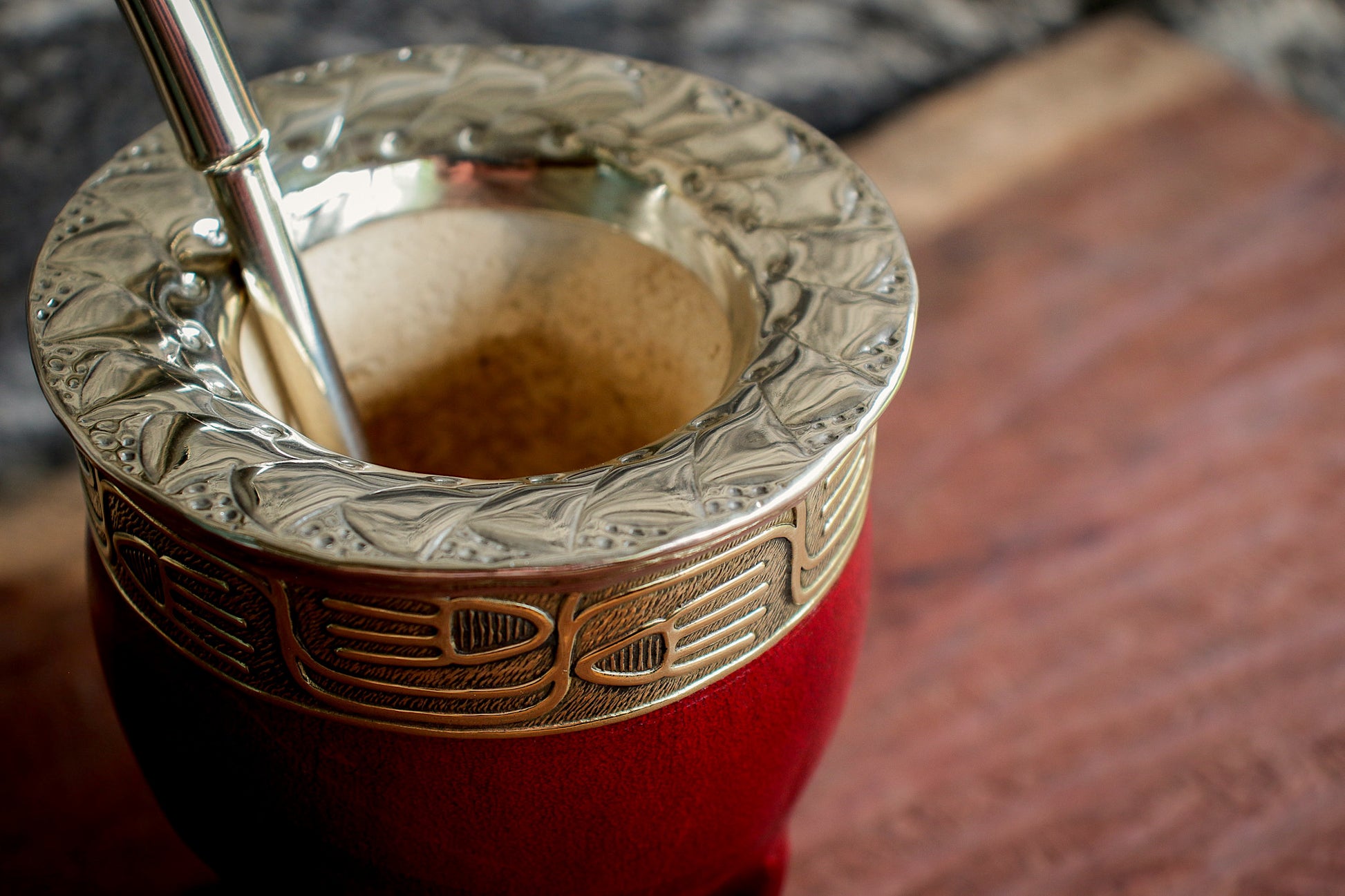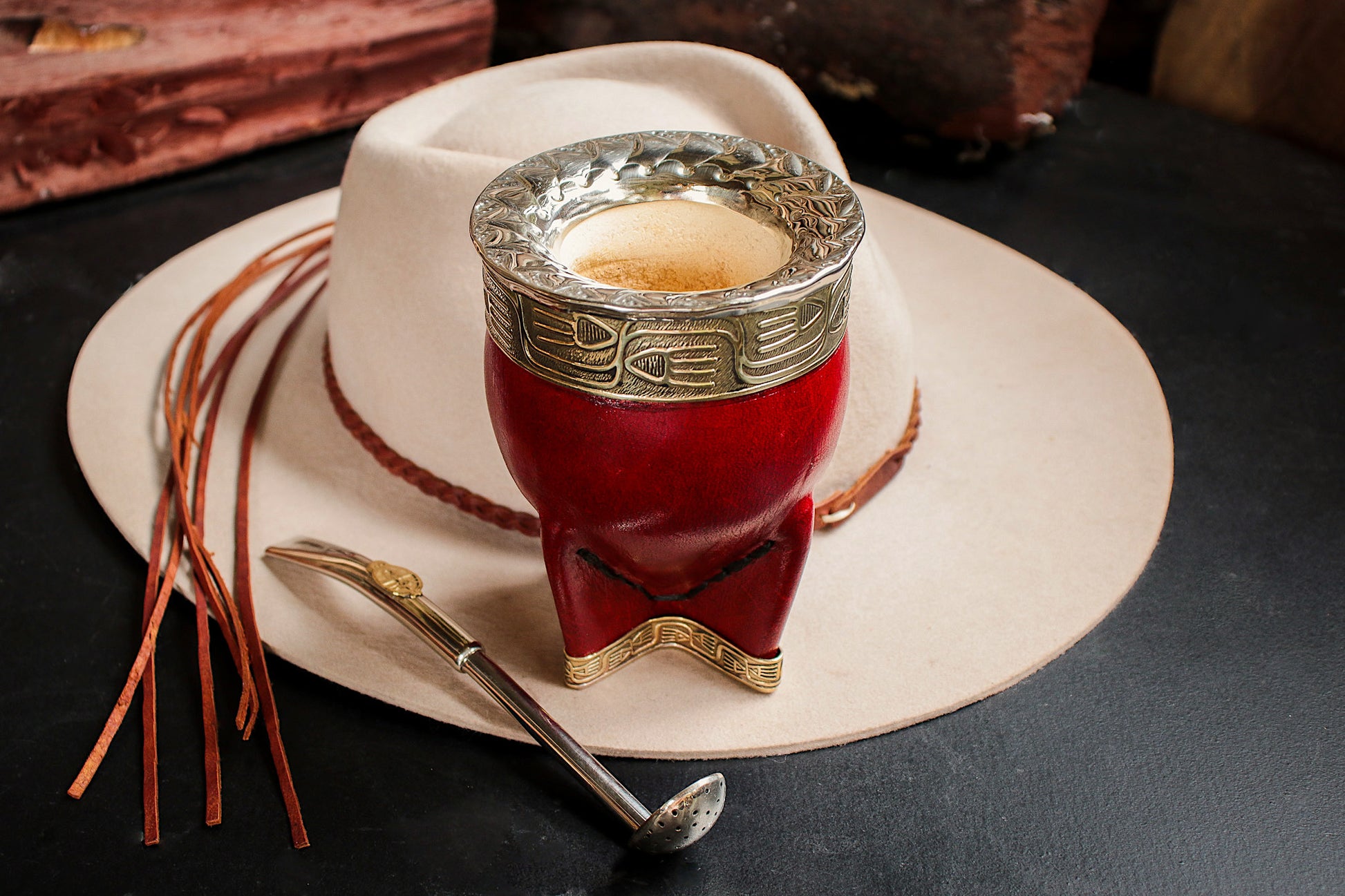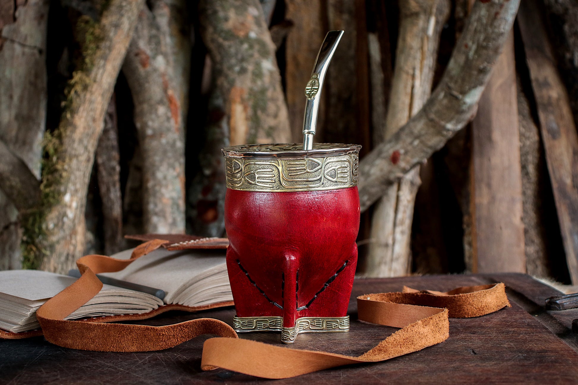 Mate imperial de porongo forrado artesanalmente en cuero natural.