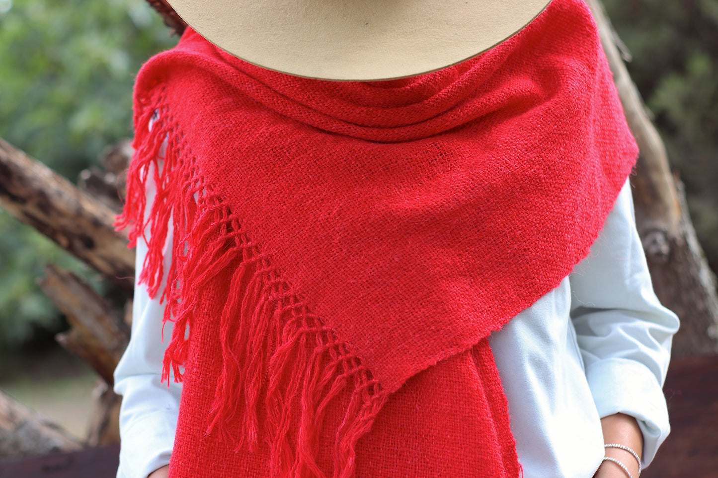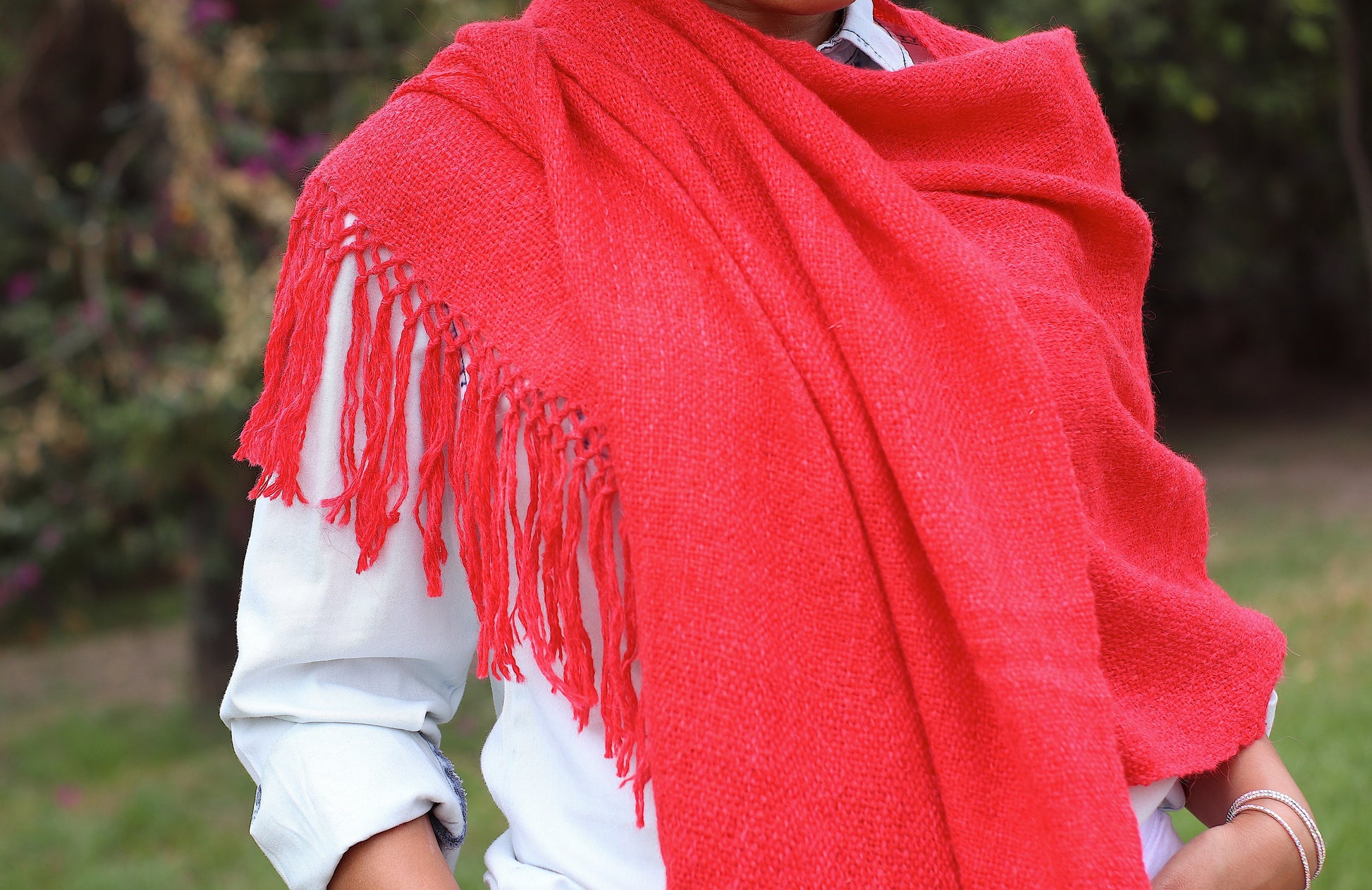 Es artesanal desde la esquila, lavado de la fibra, cardado e hilado en rueca y confección en telar antiguo.