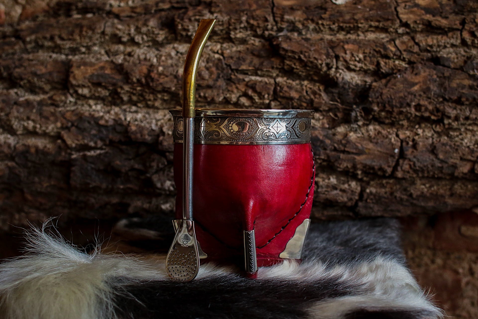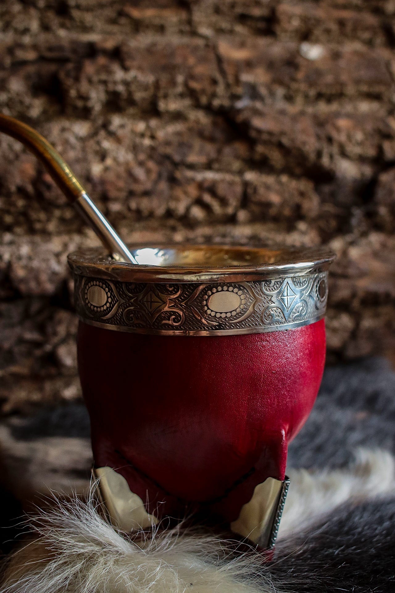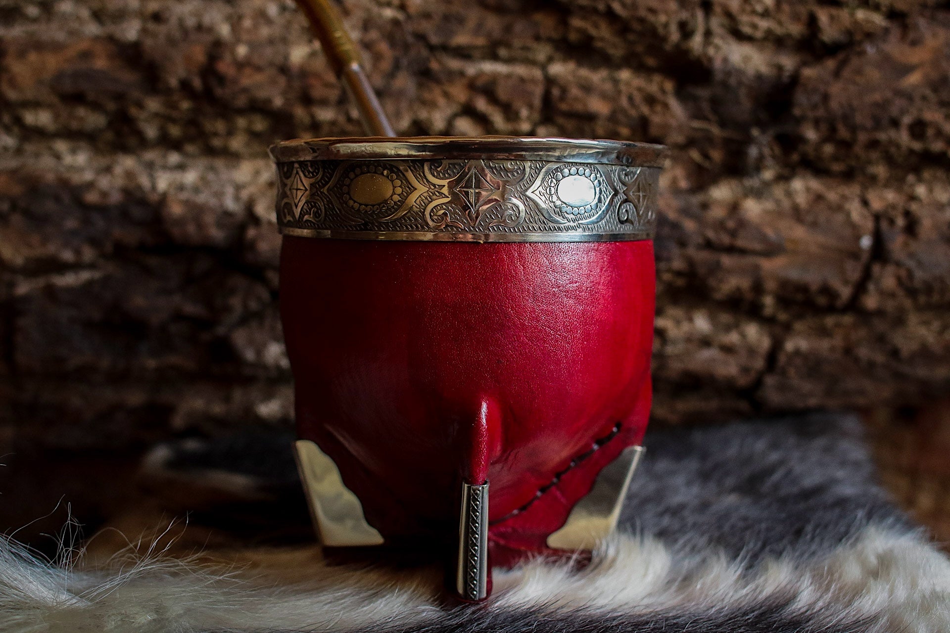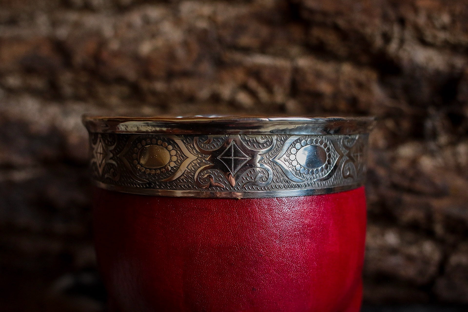 Mate imperial de porongo forrado artesanalmente en cuero natural.