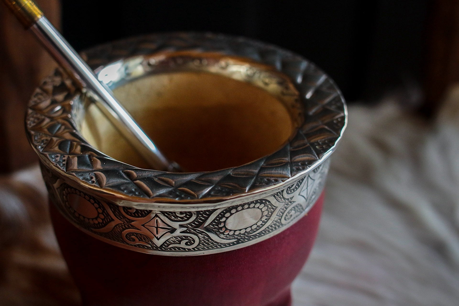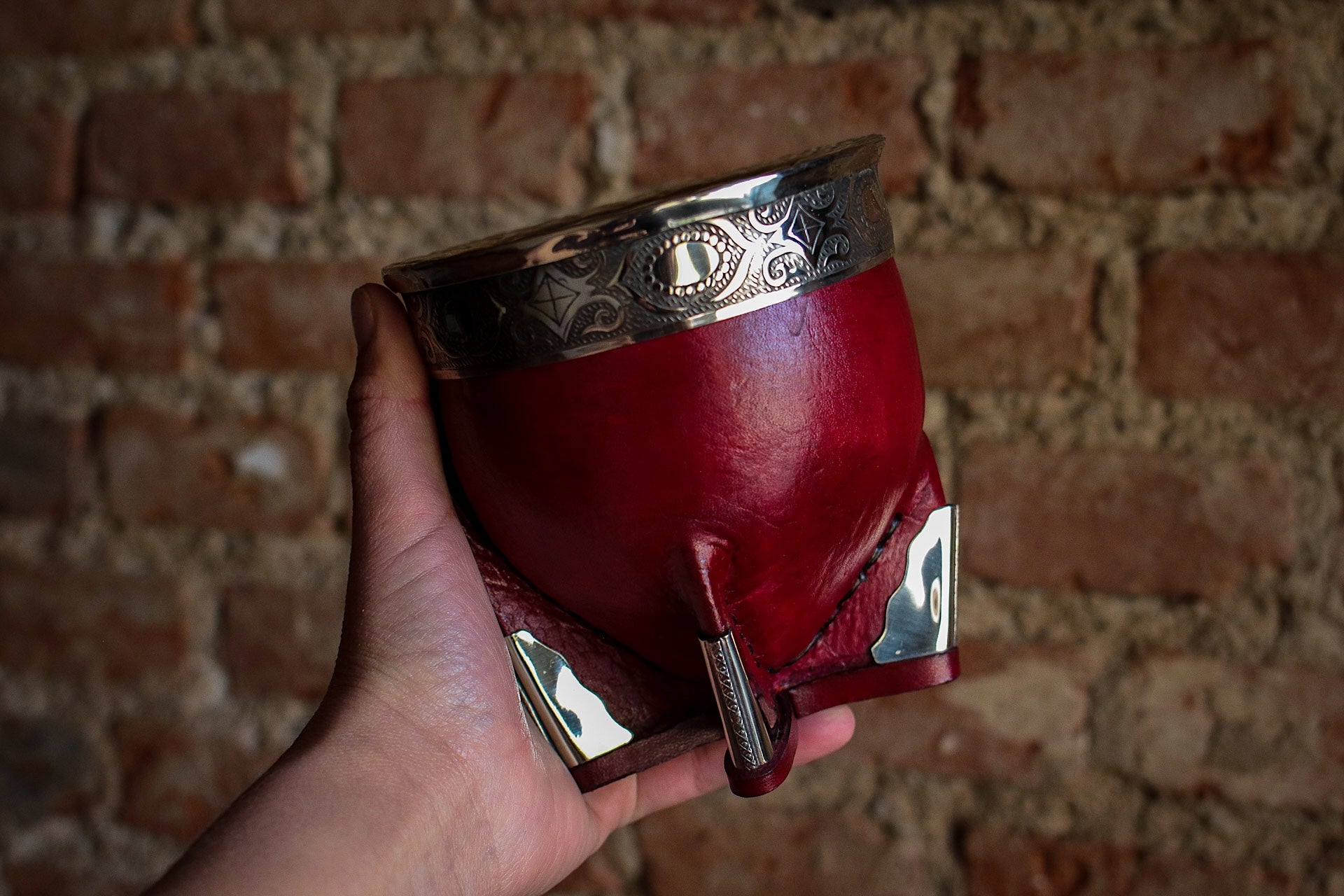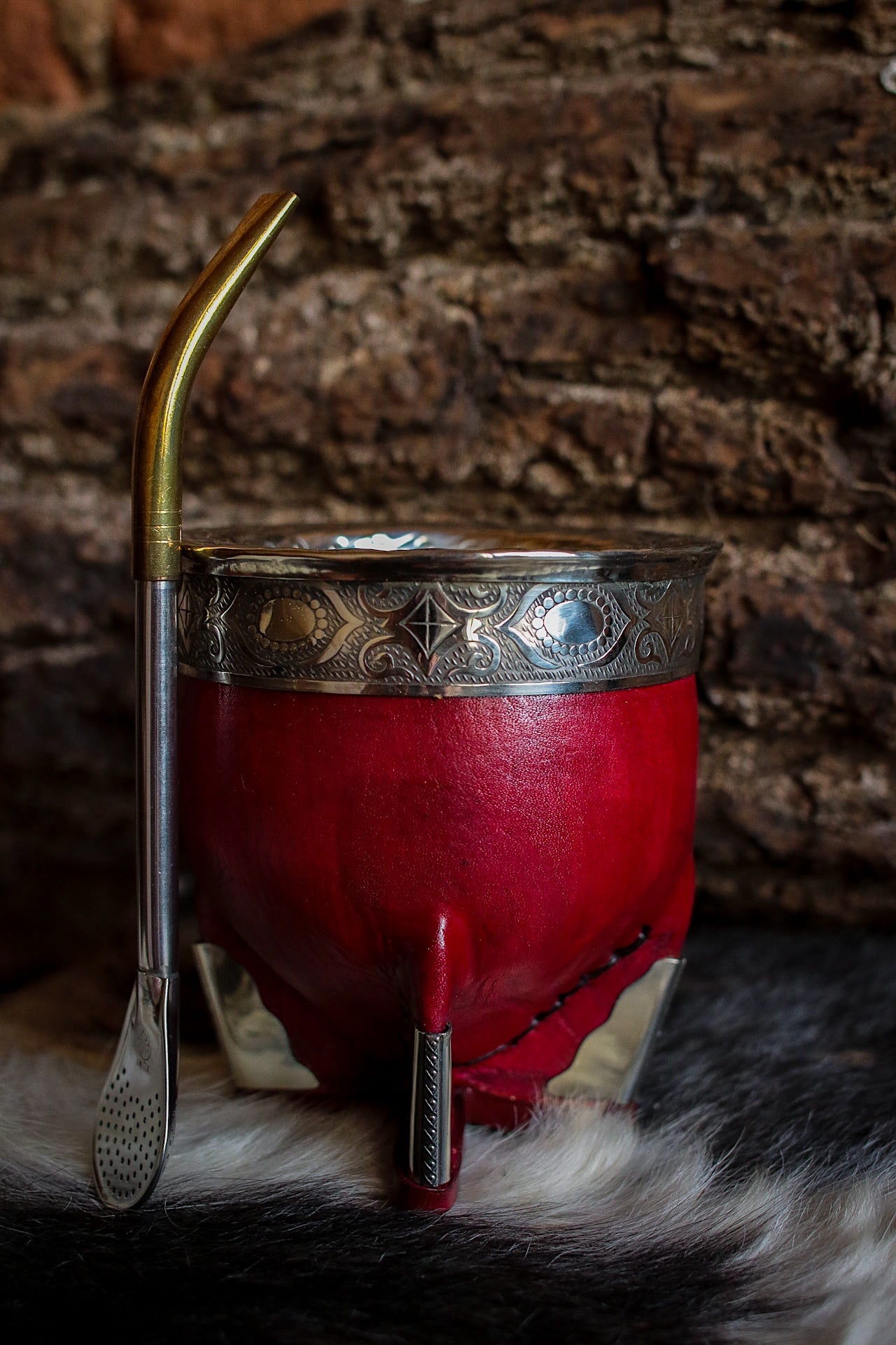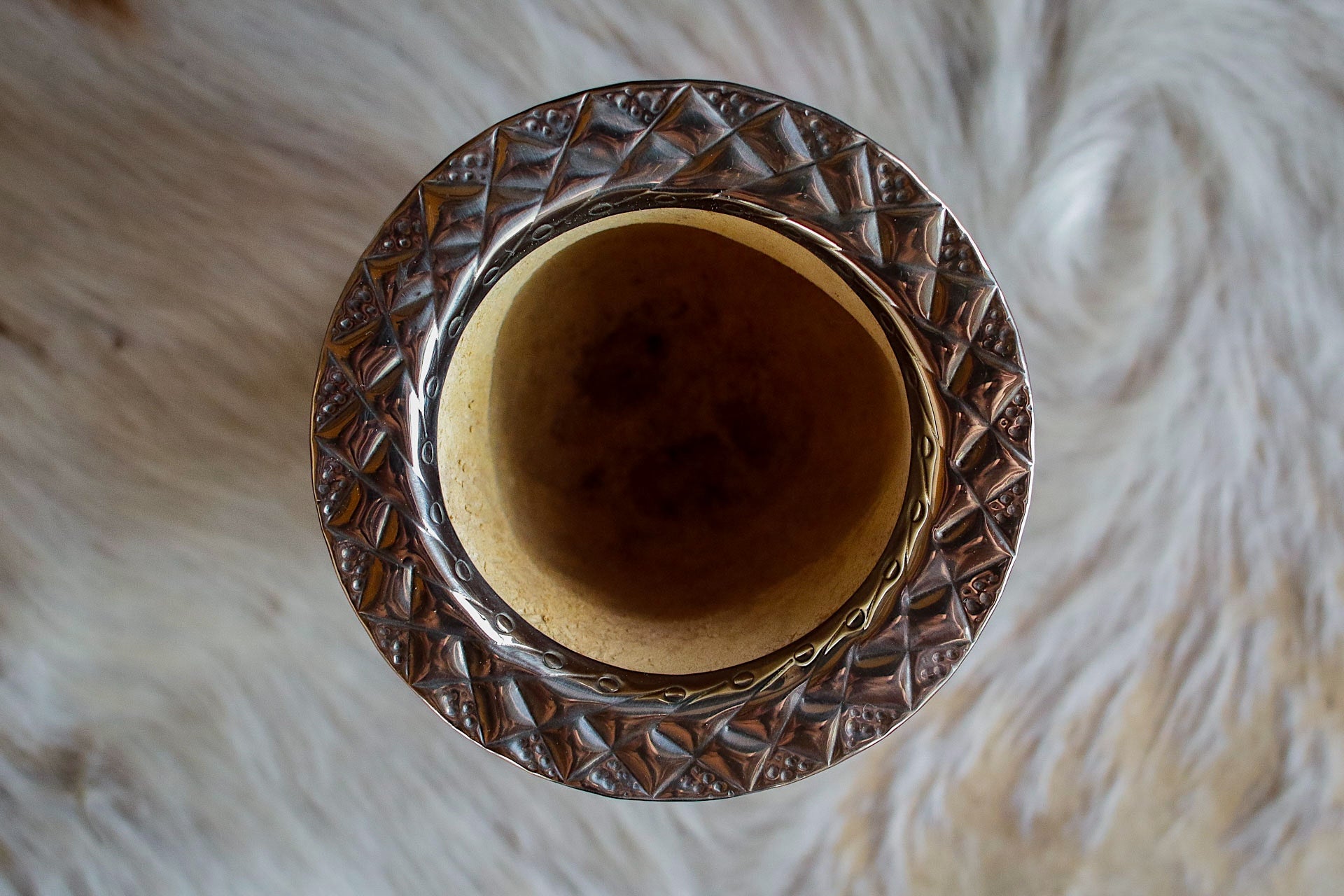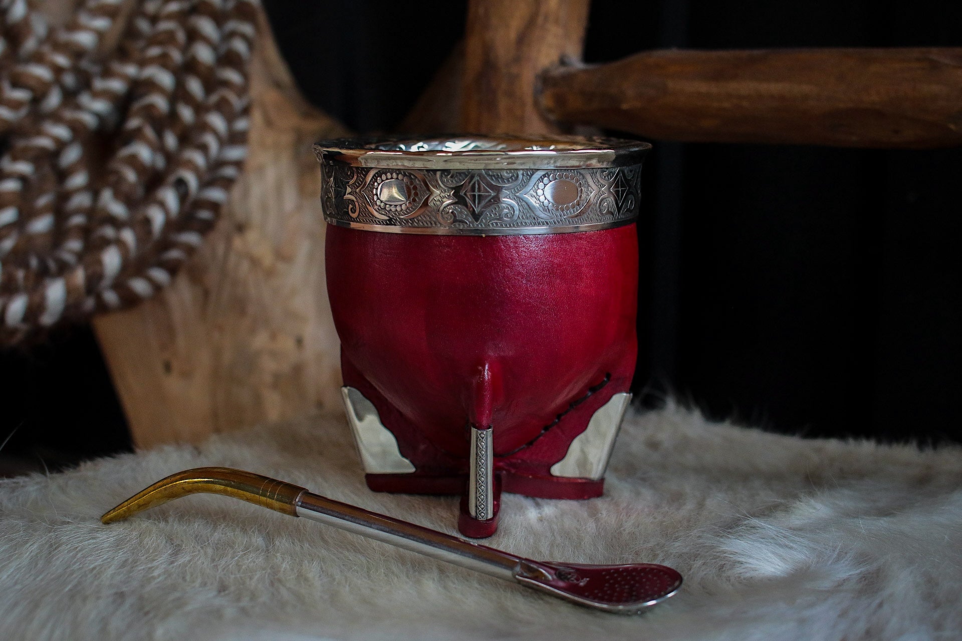 Mate imperial de porongo forrado artesanalmente en cuero natural.