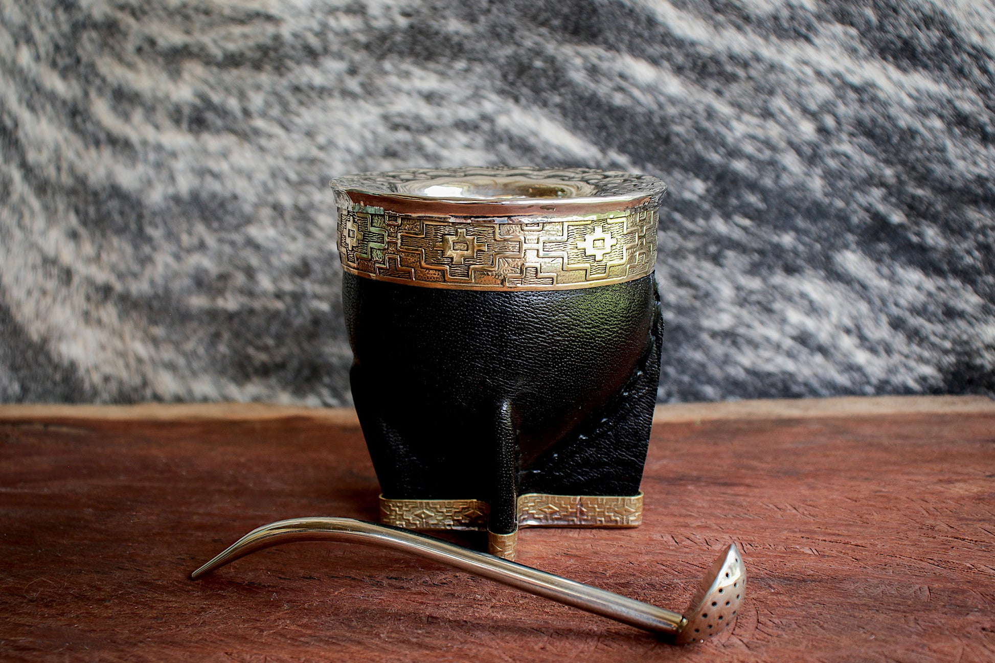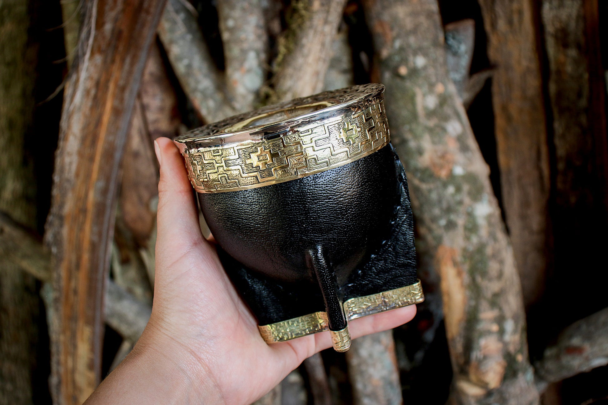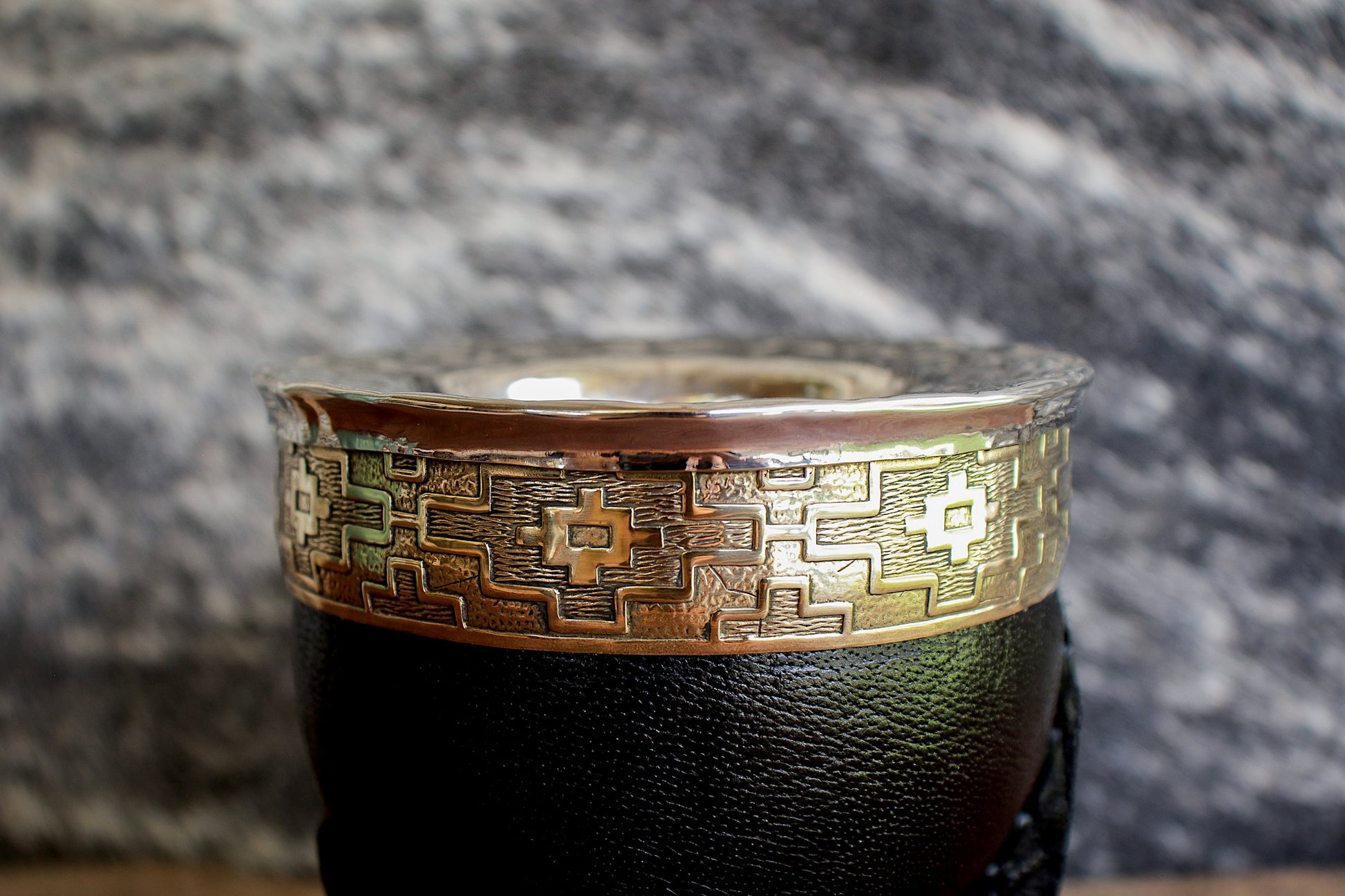 Mate imperial de porongo forrado artesanalmente en cuero natural.