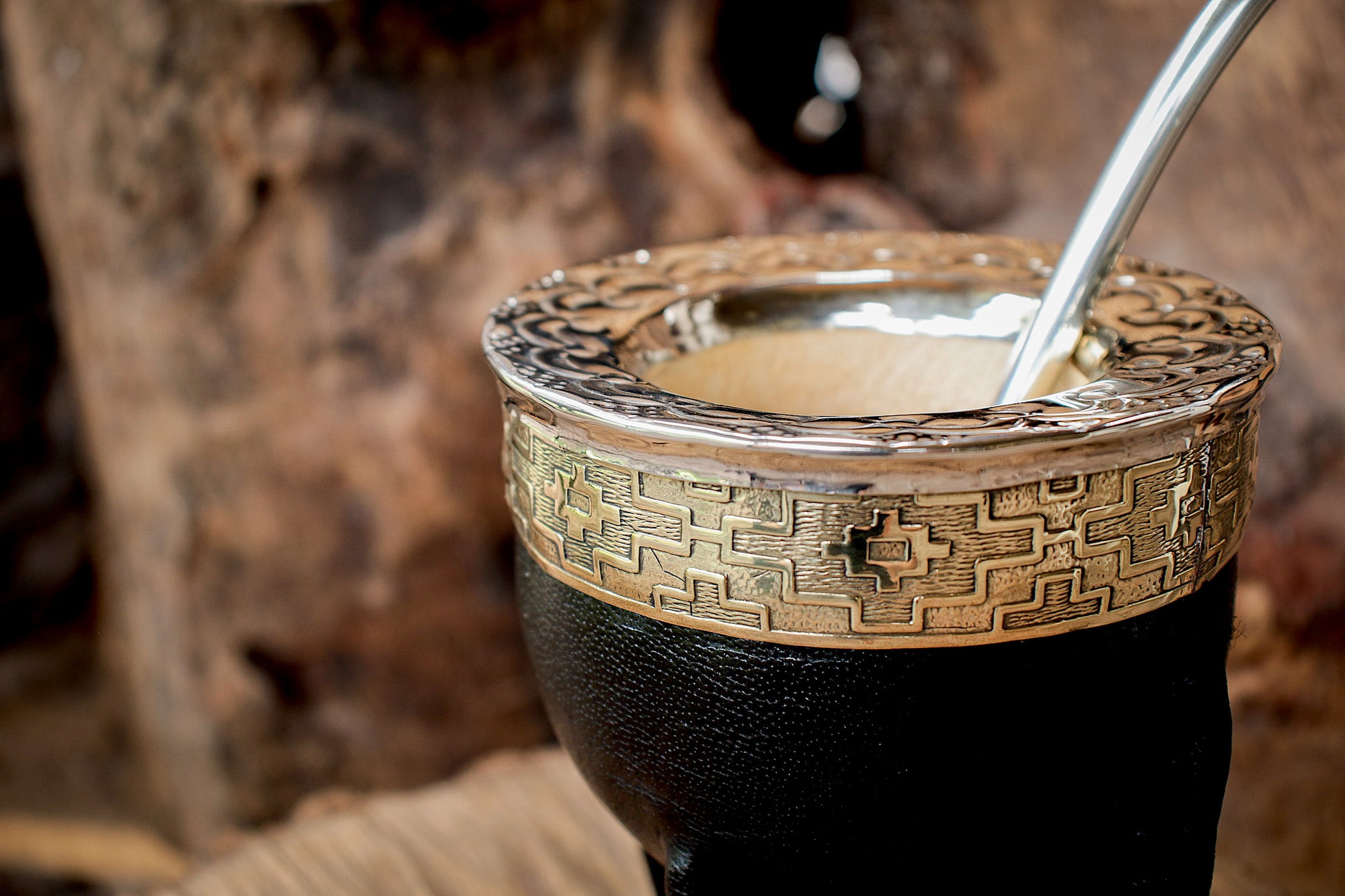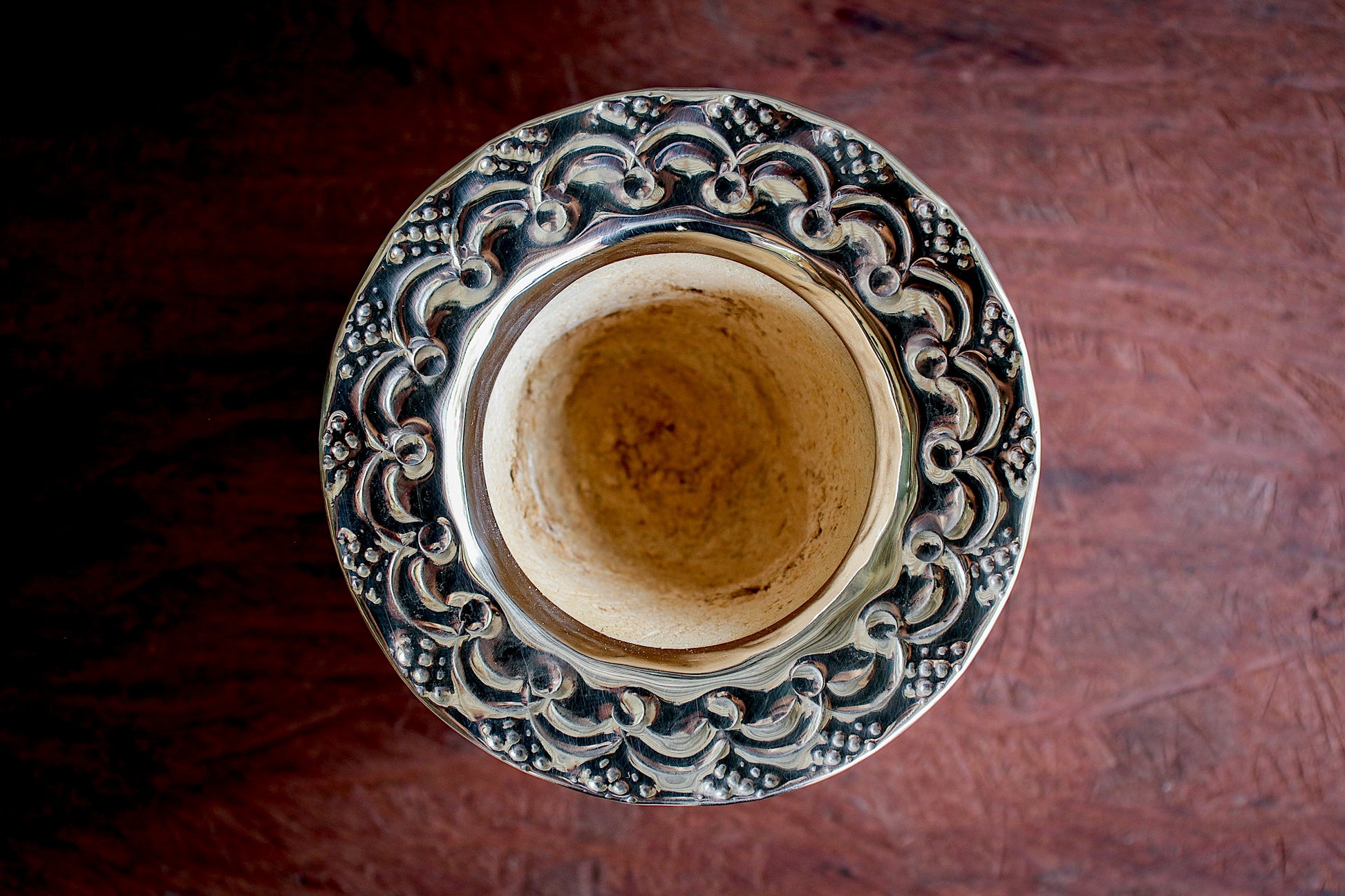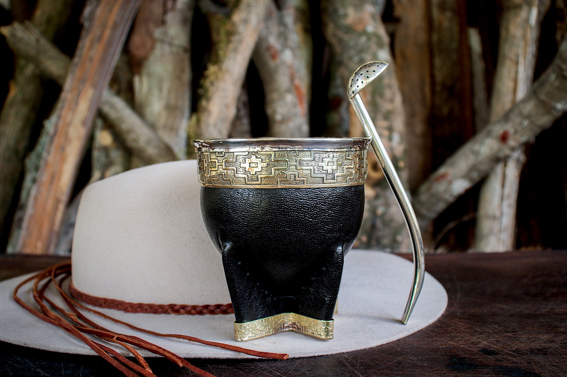 Mate imperial de porongo forrado artesanalmente en cuero natural.