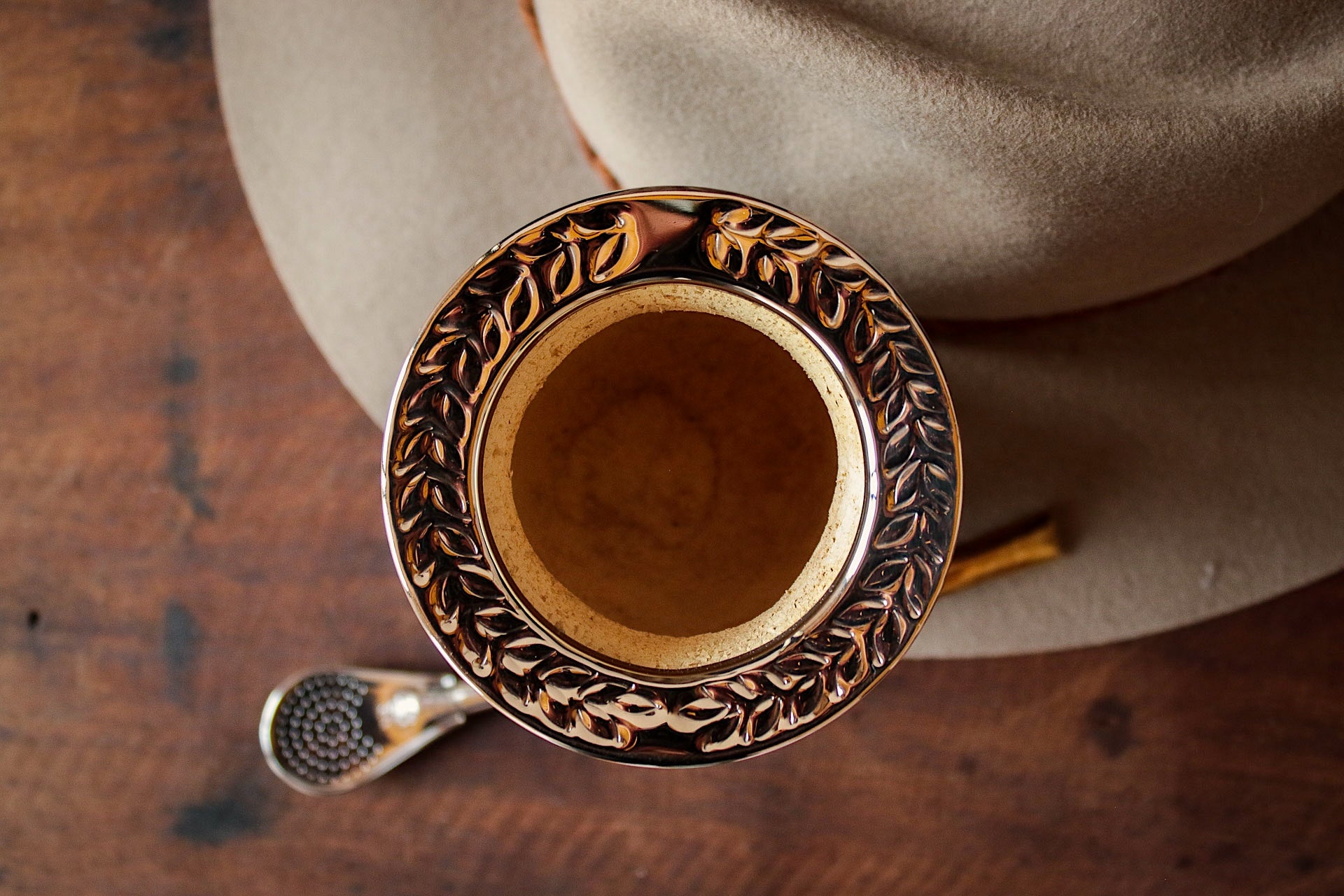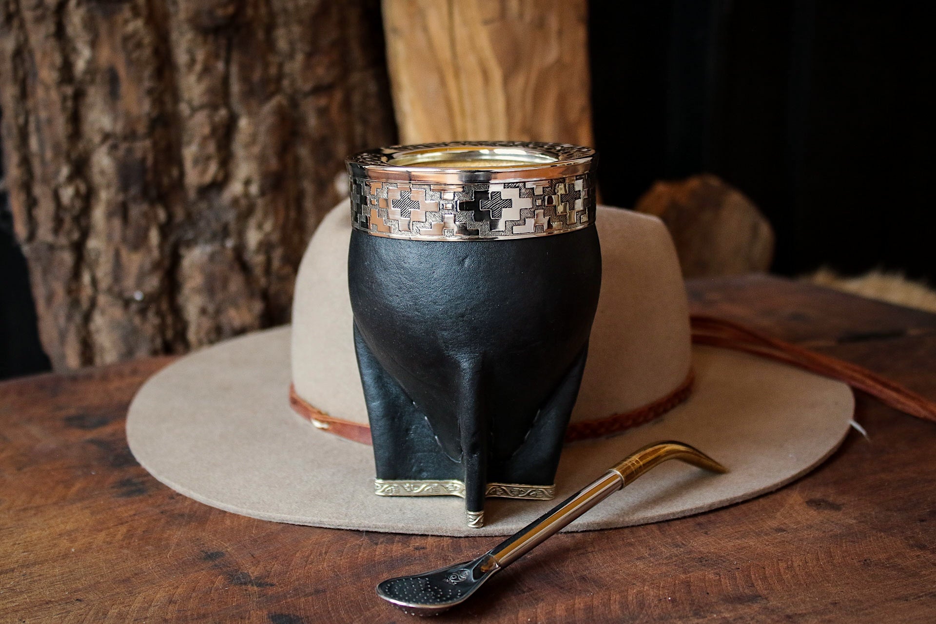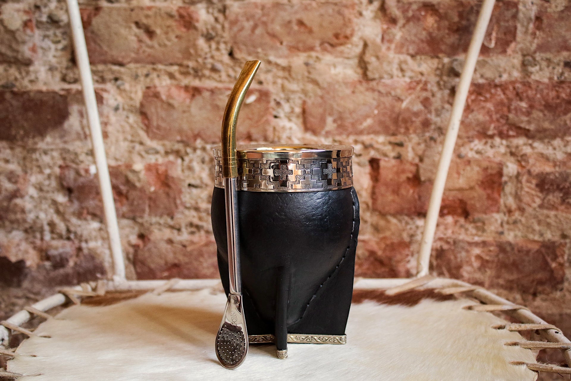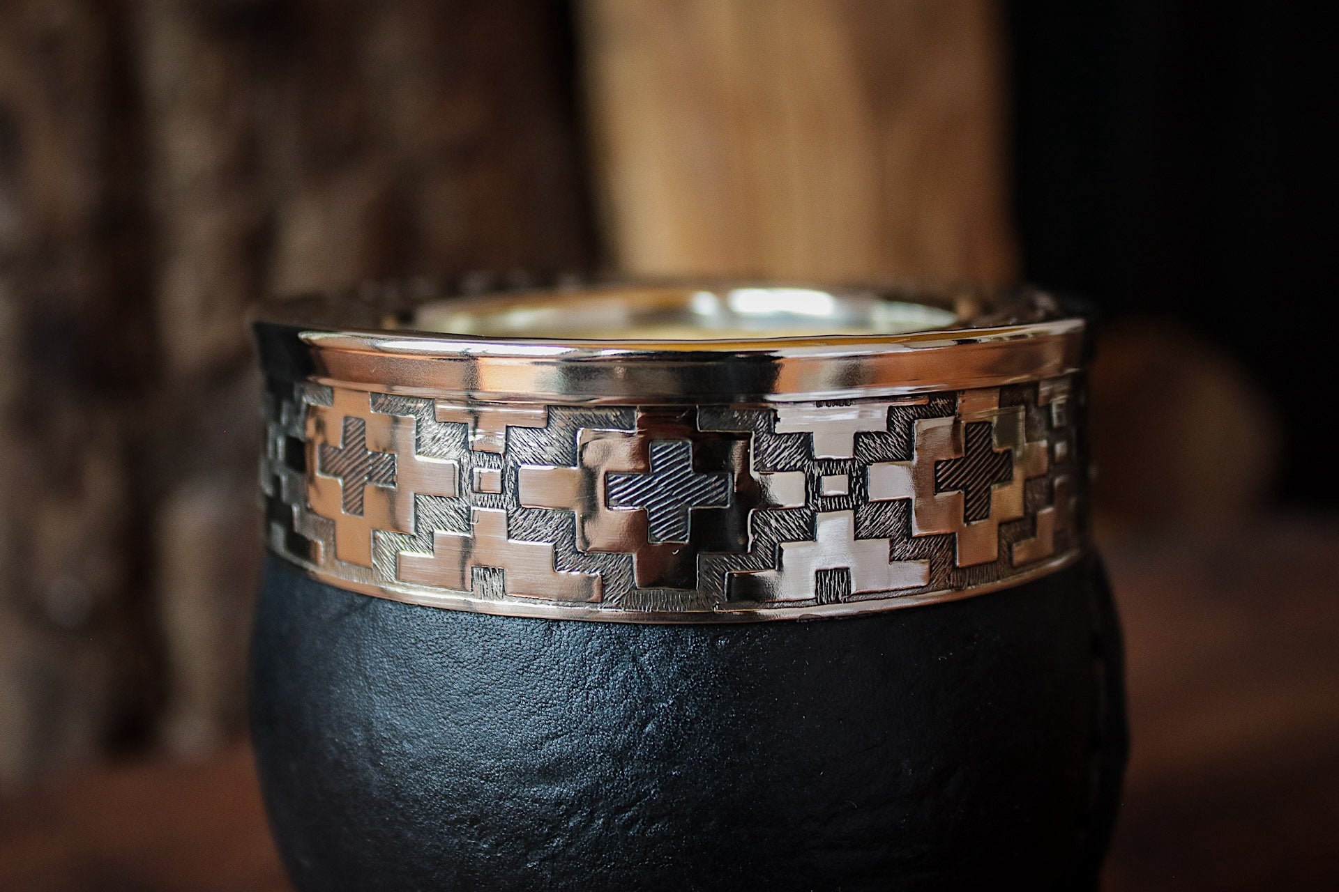 Mate imperial de porongo forrado artesanalmente en cuero natural.