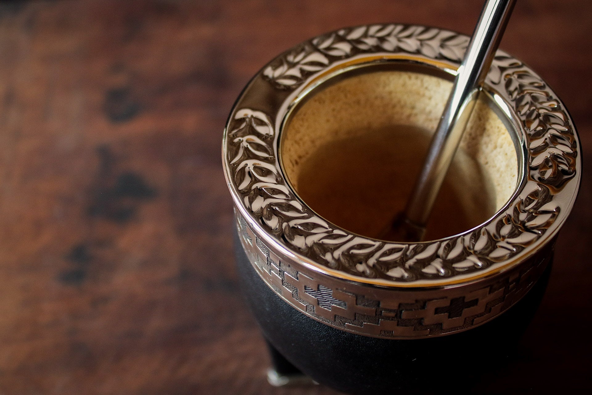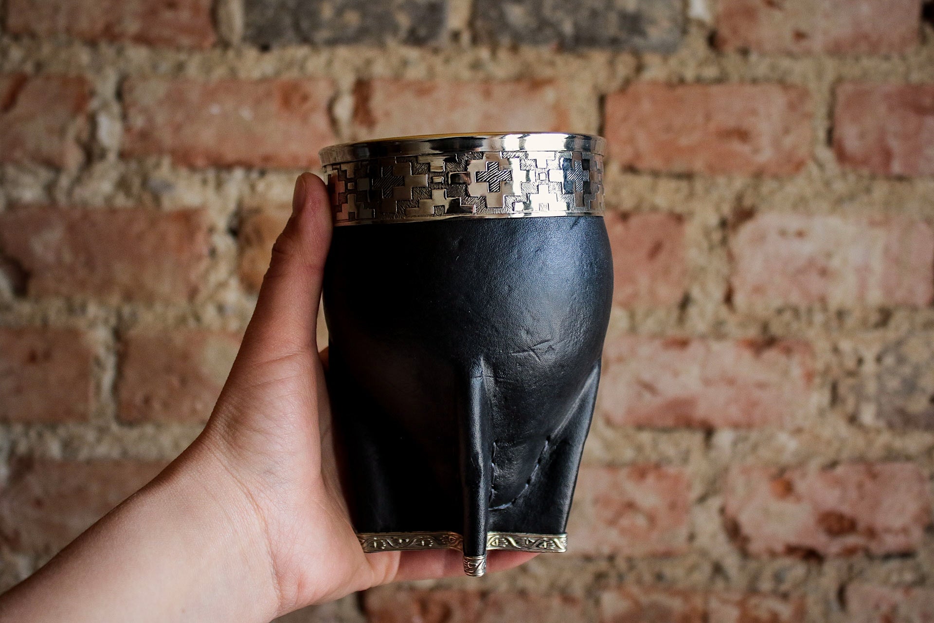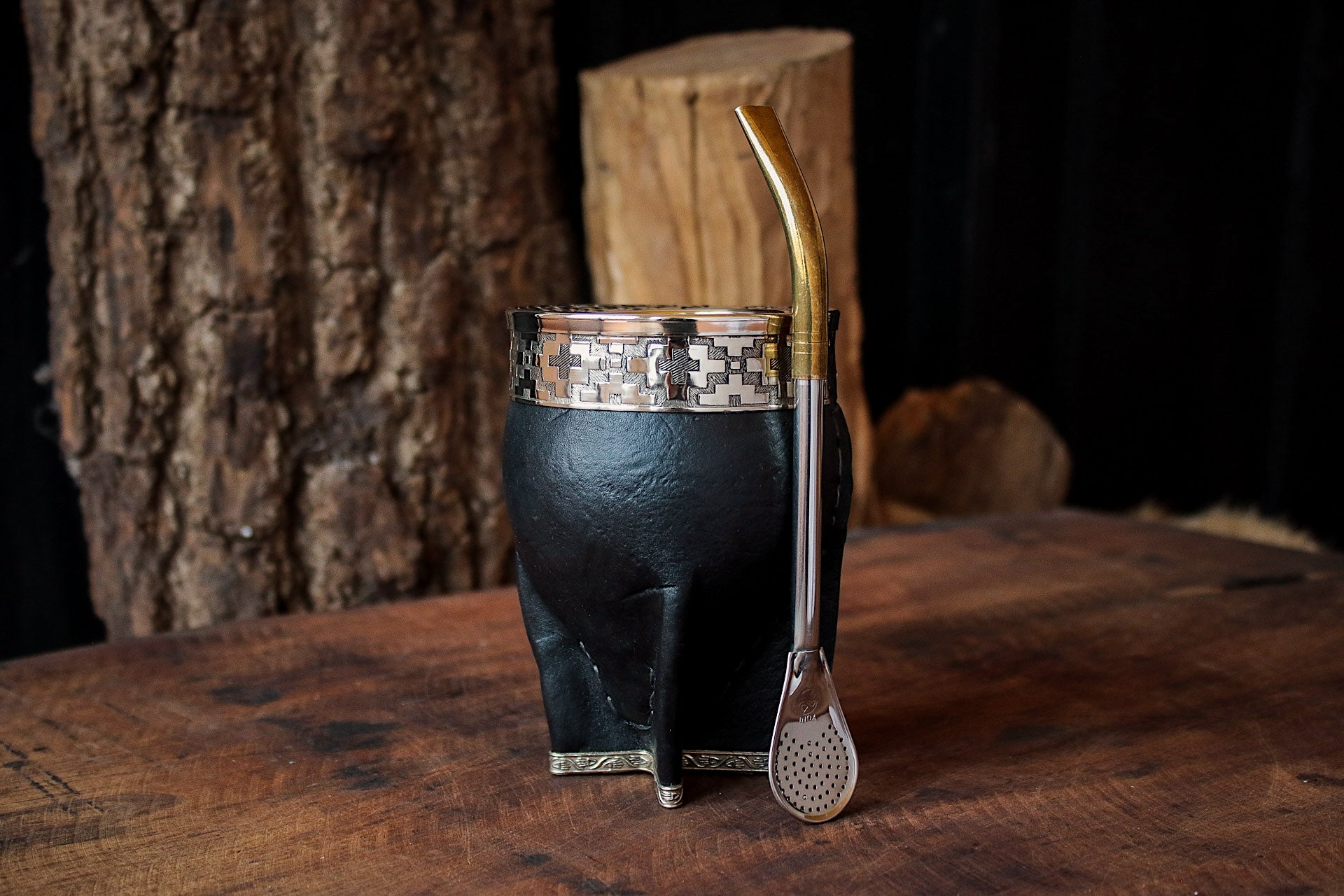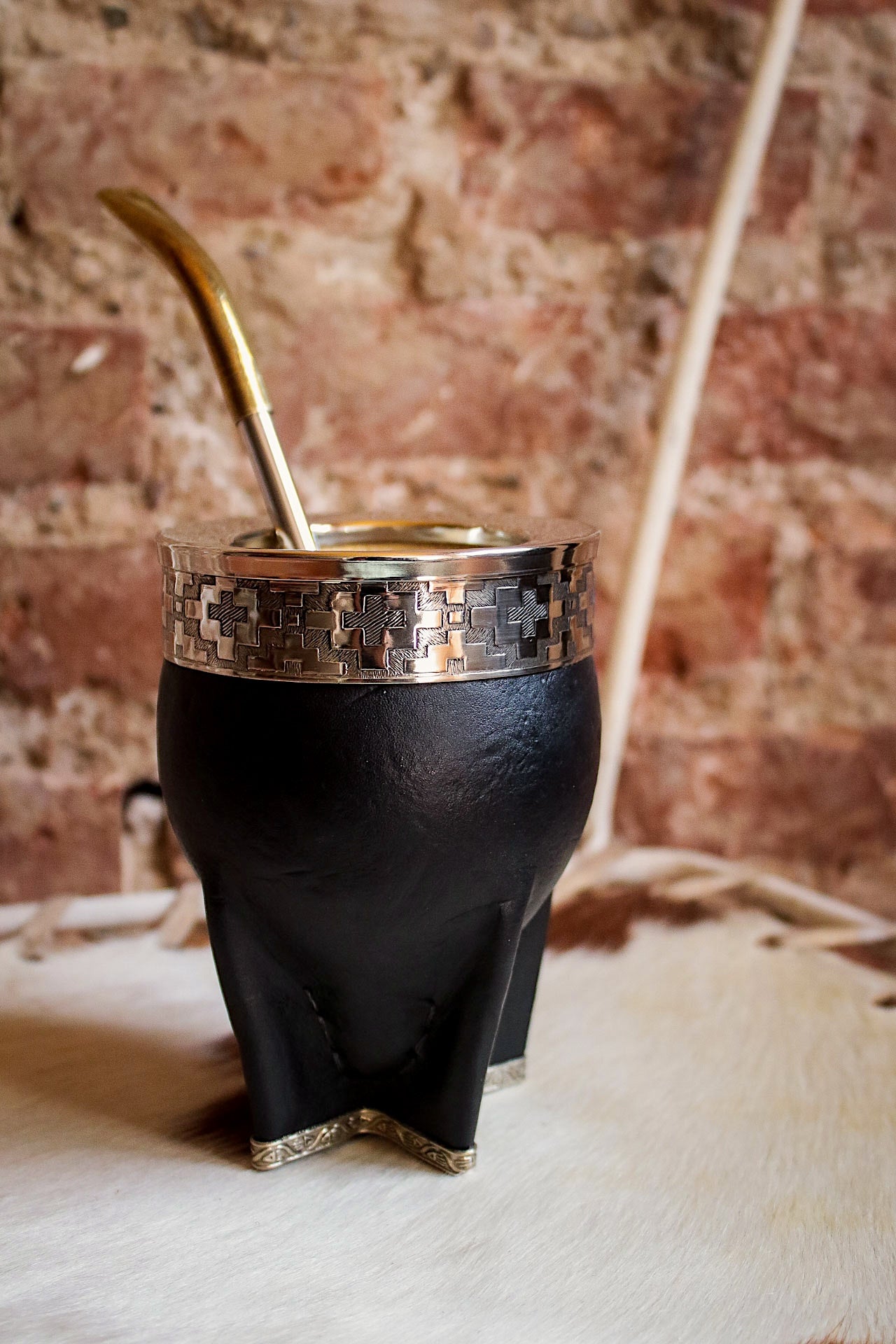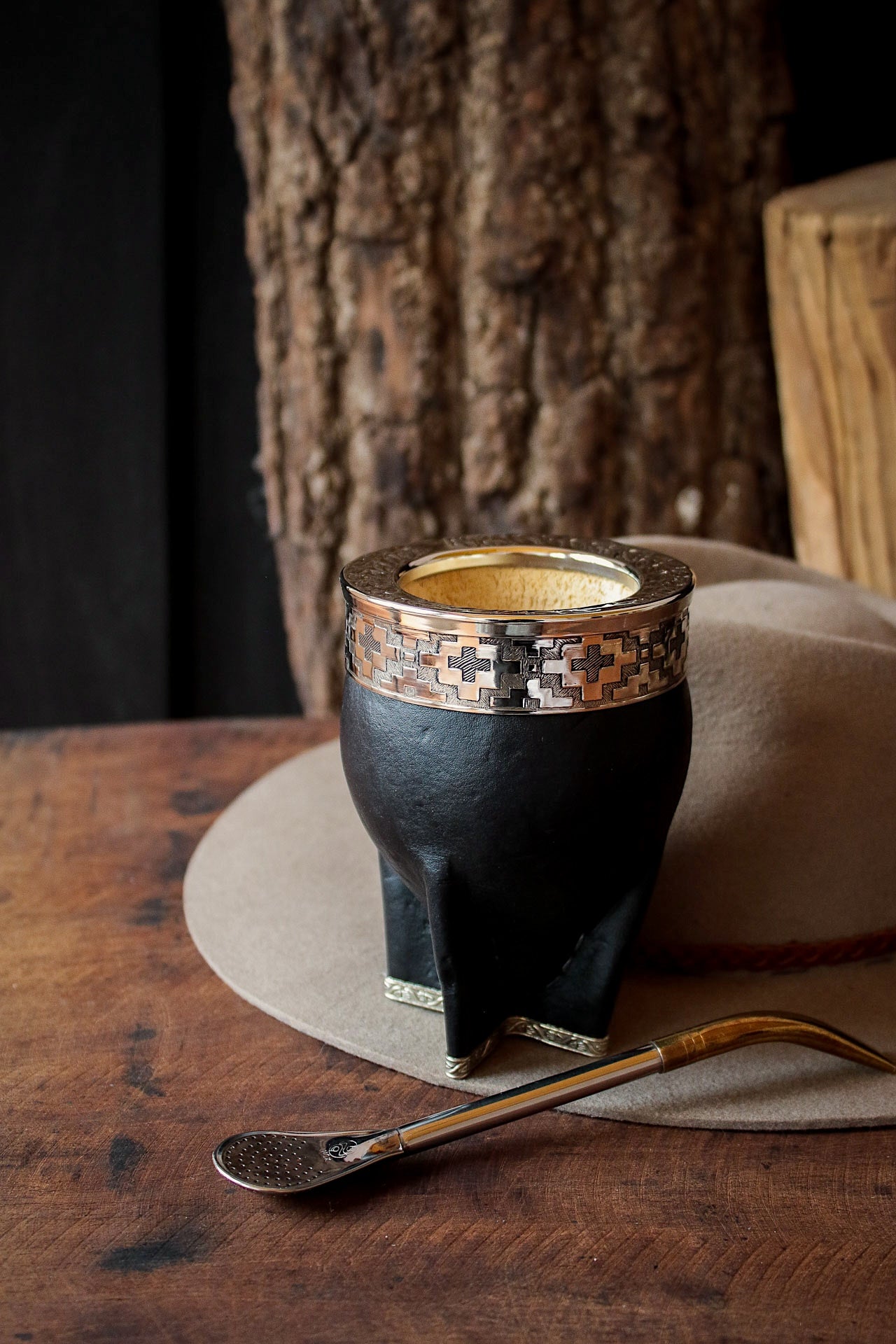 Mate imperial de porongo forrado artesanalmente en cuero natural.