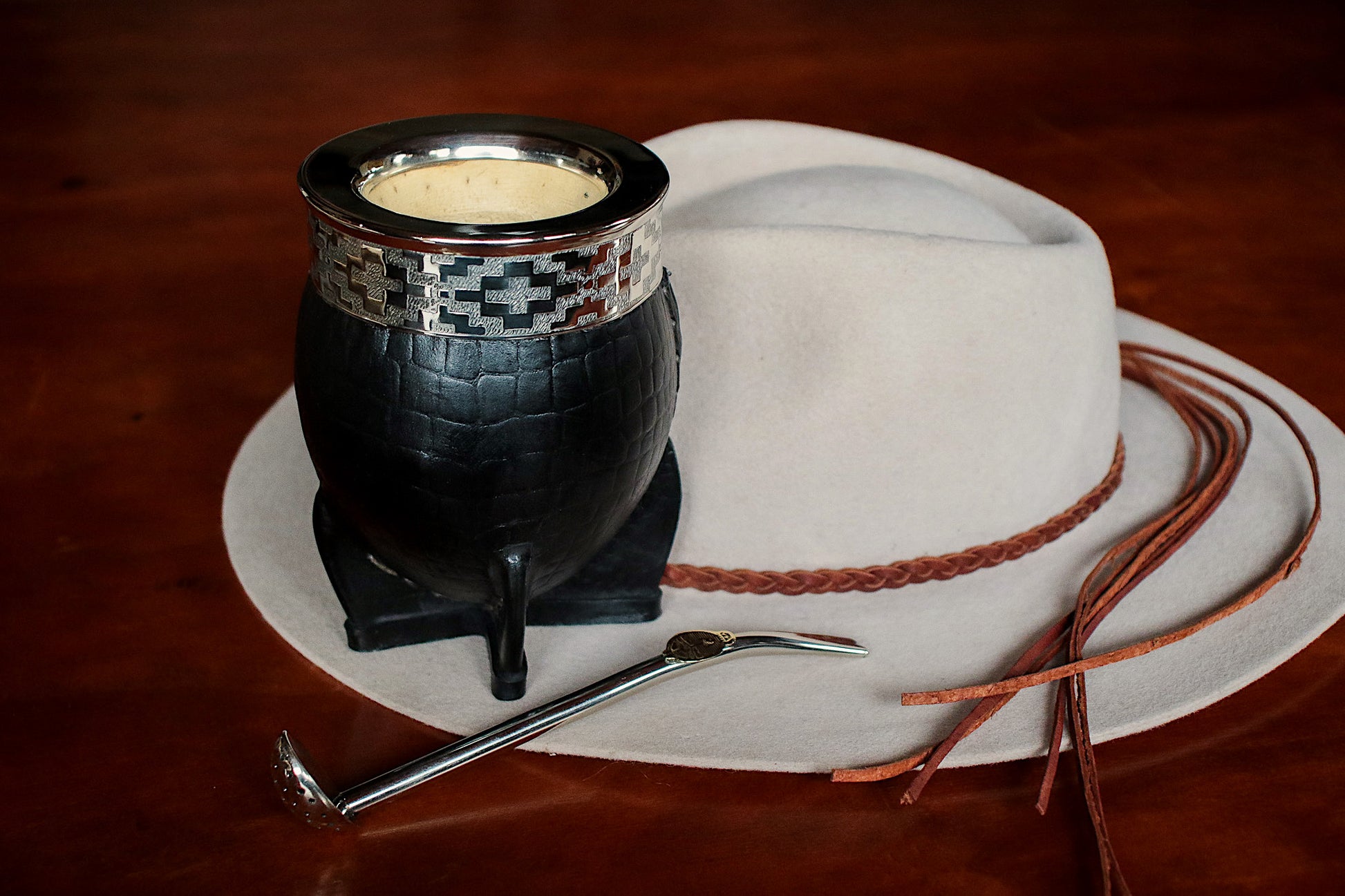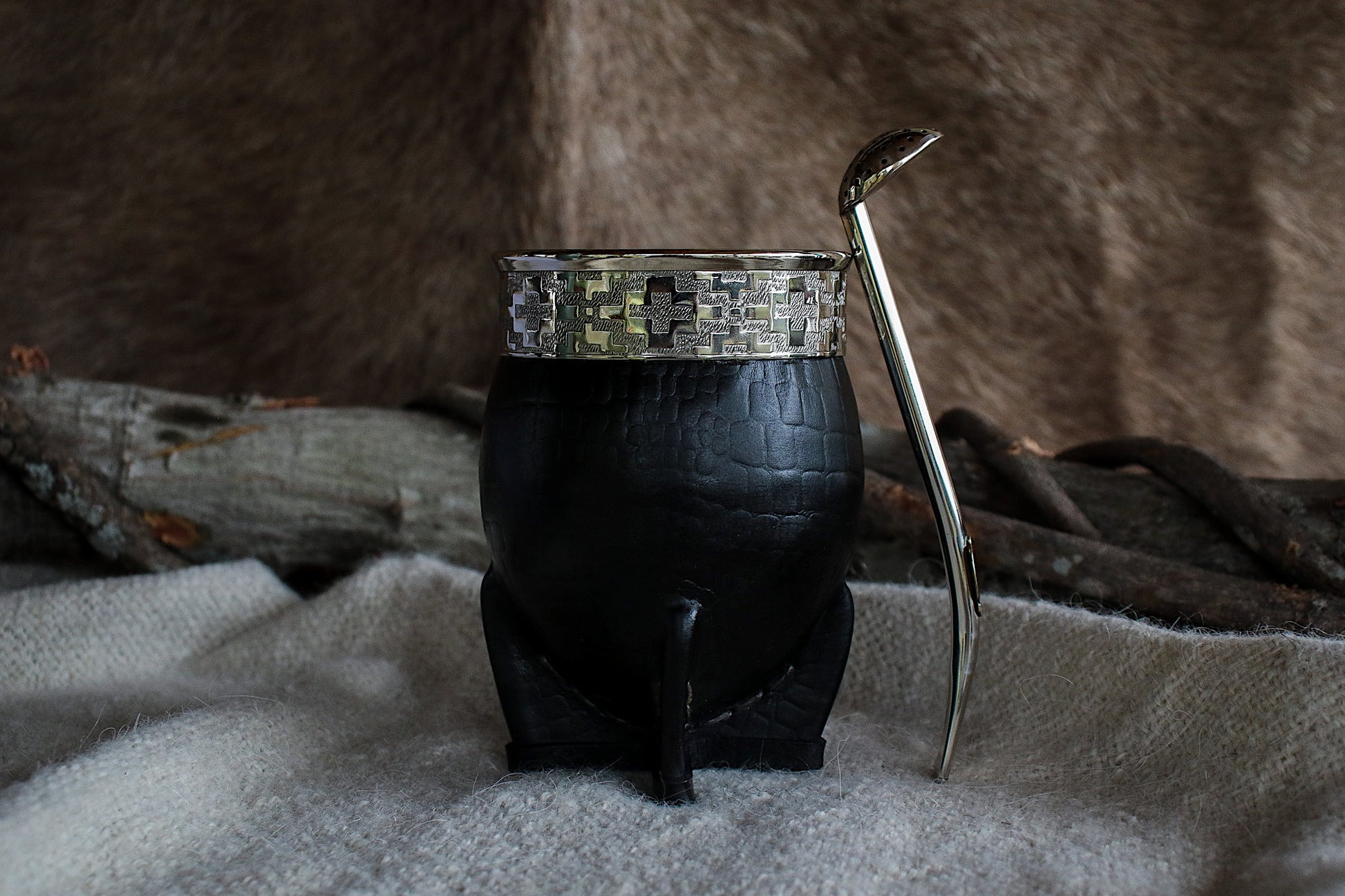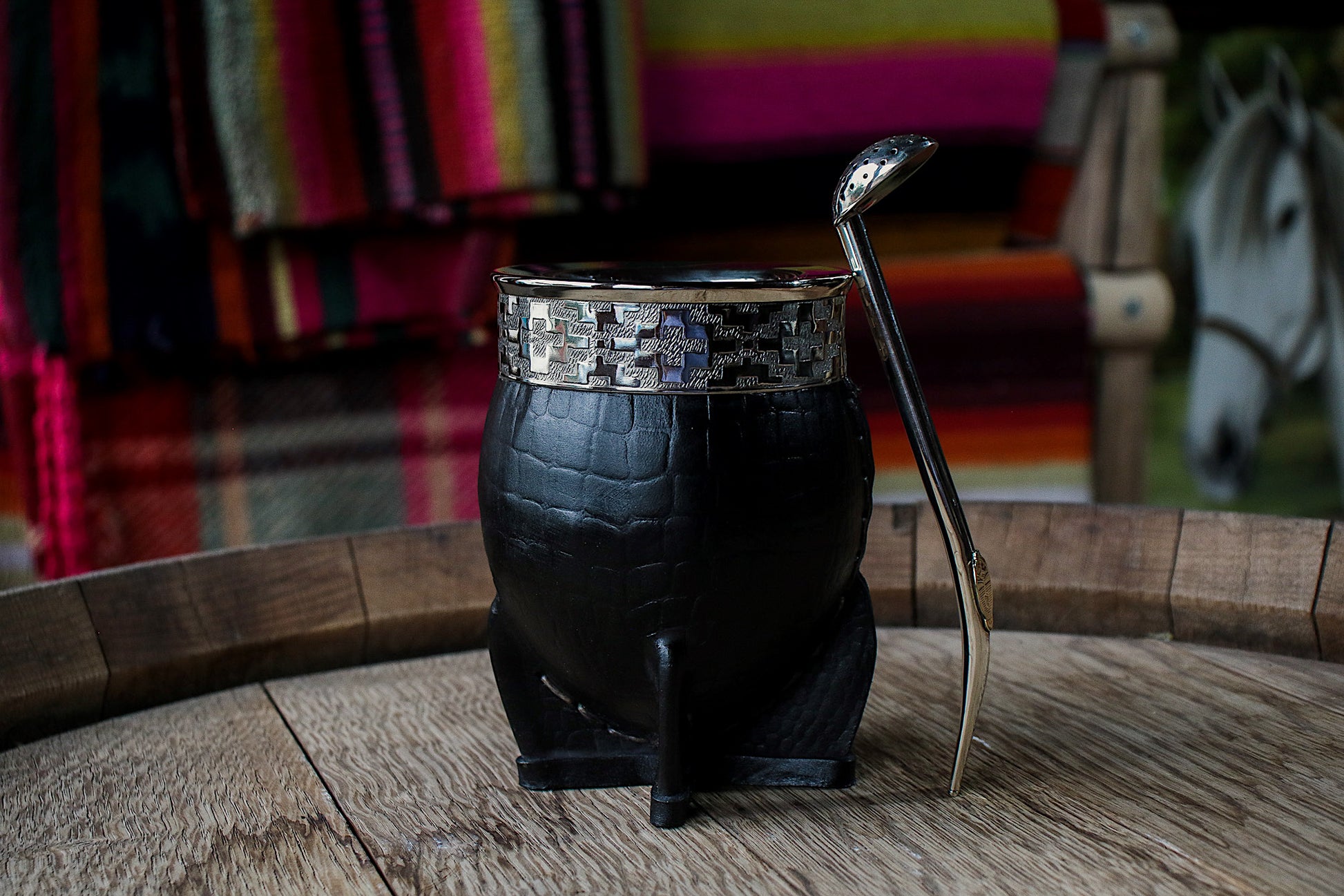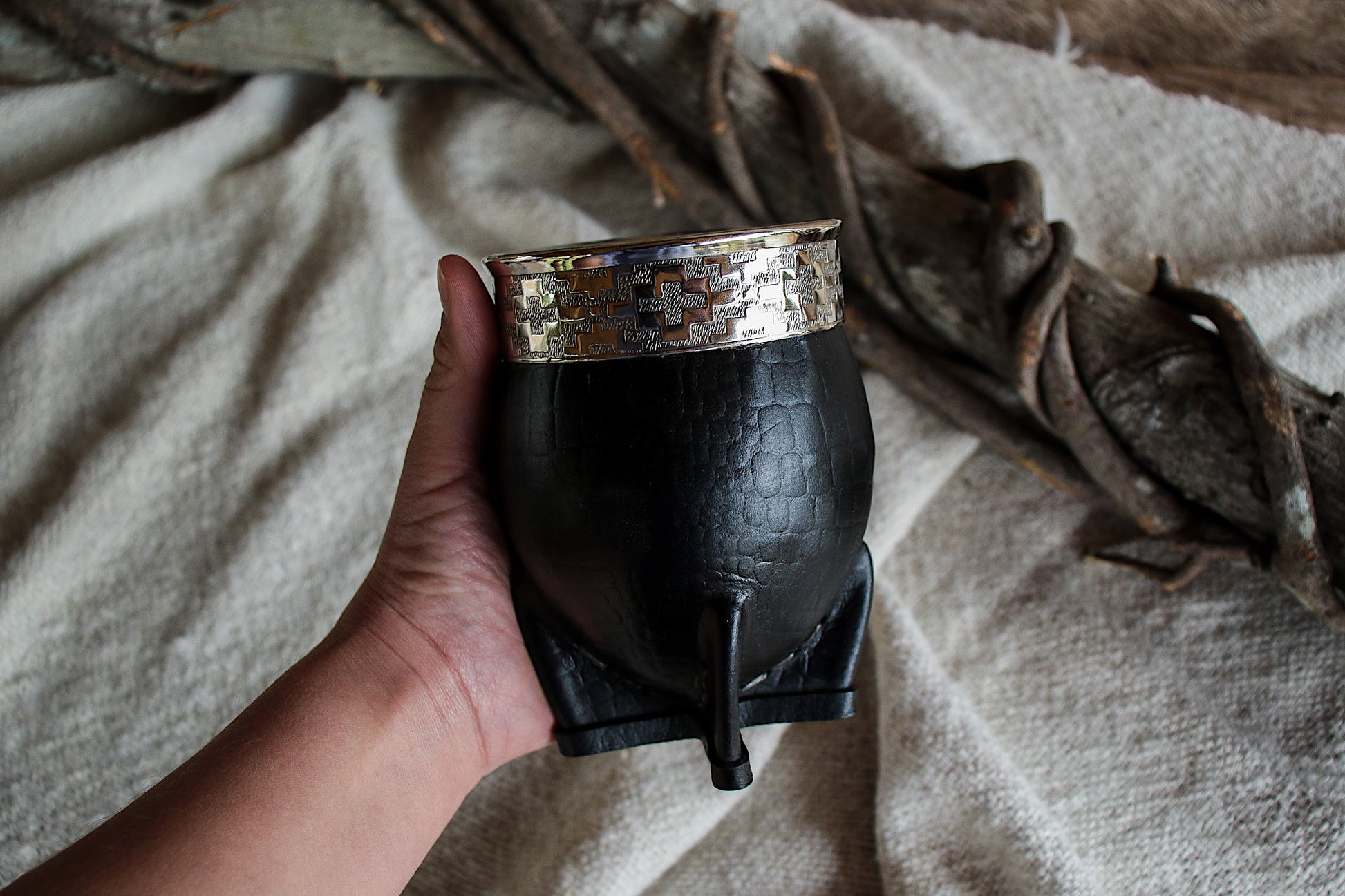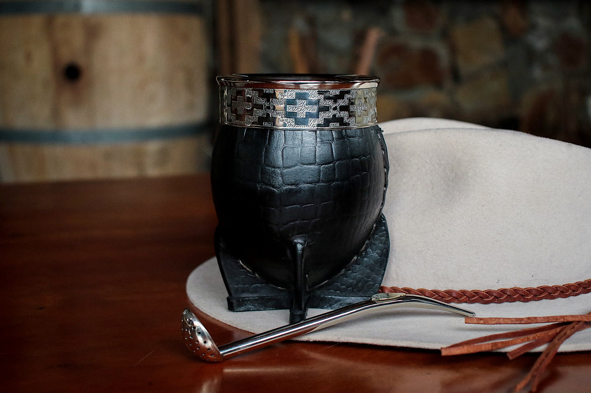 Mate imperial de porongo forrado artesanalmente en cuero natural.