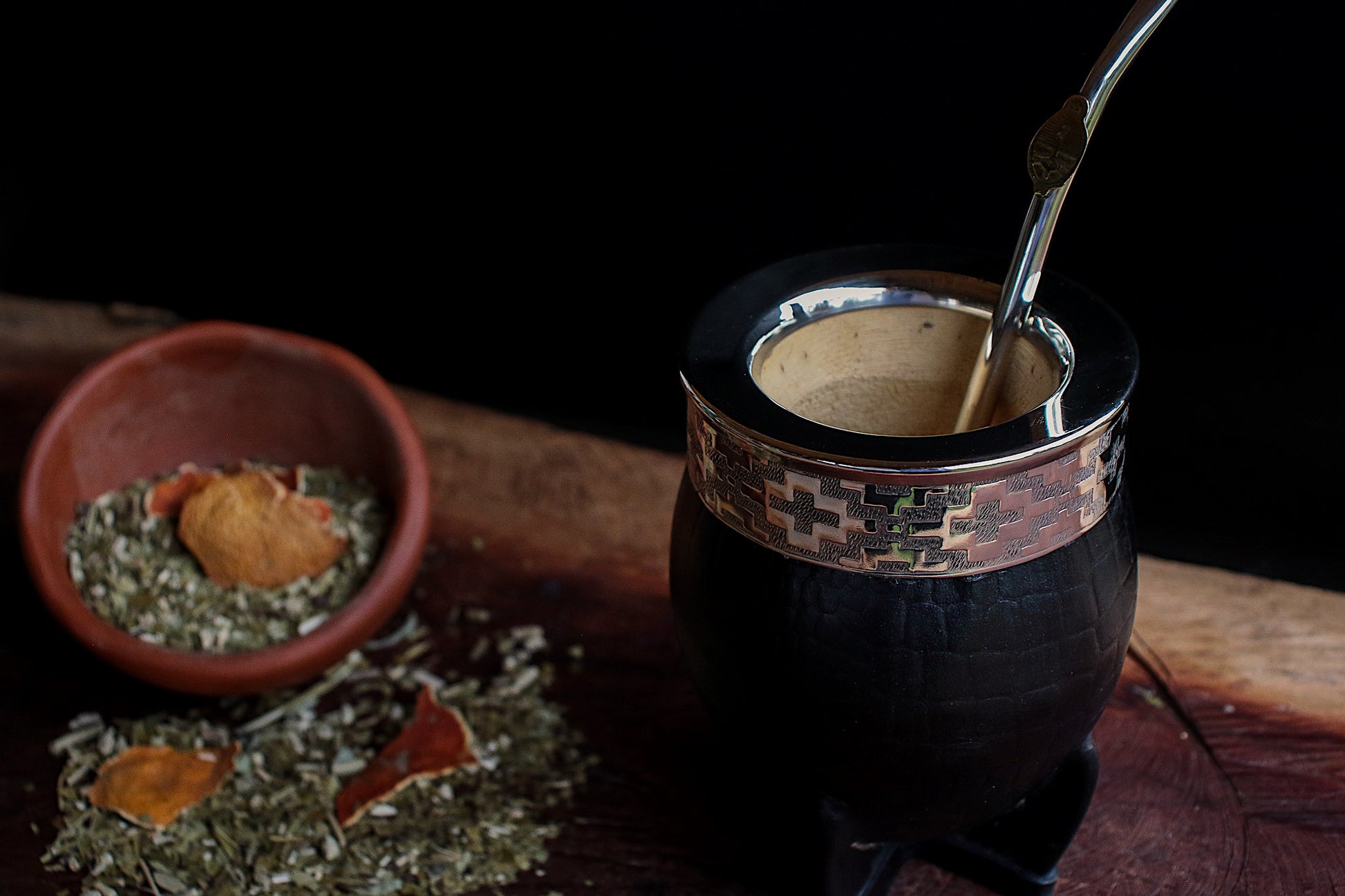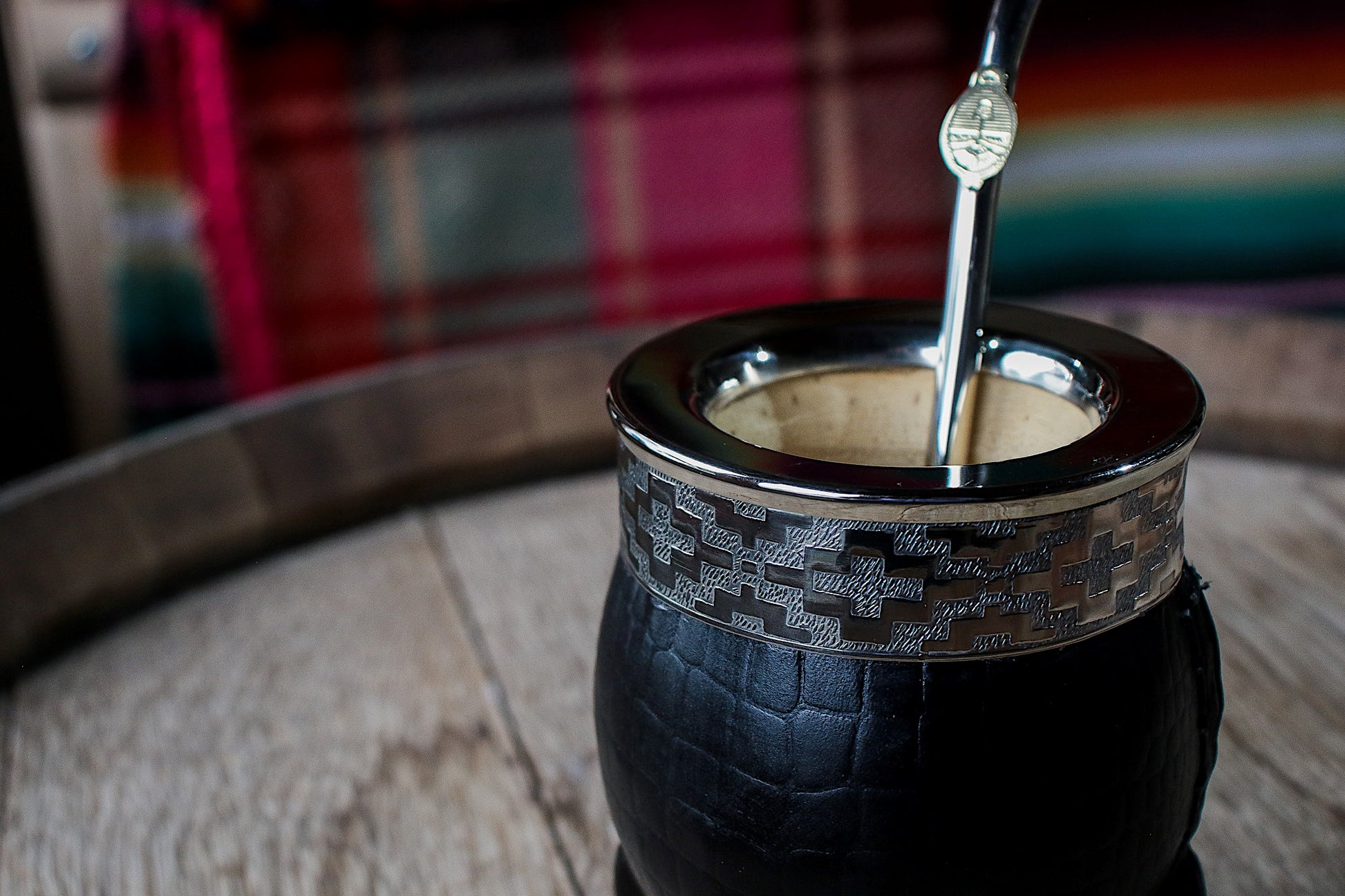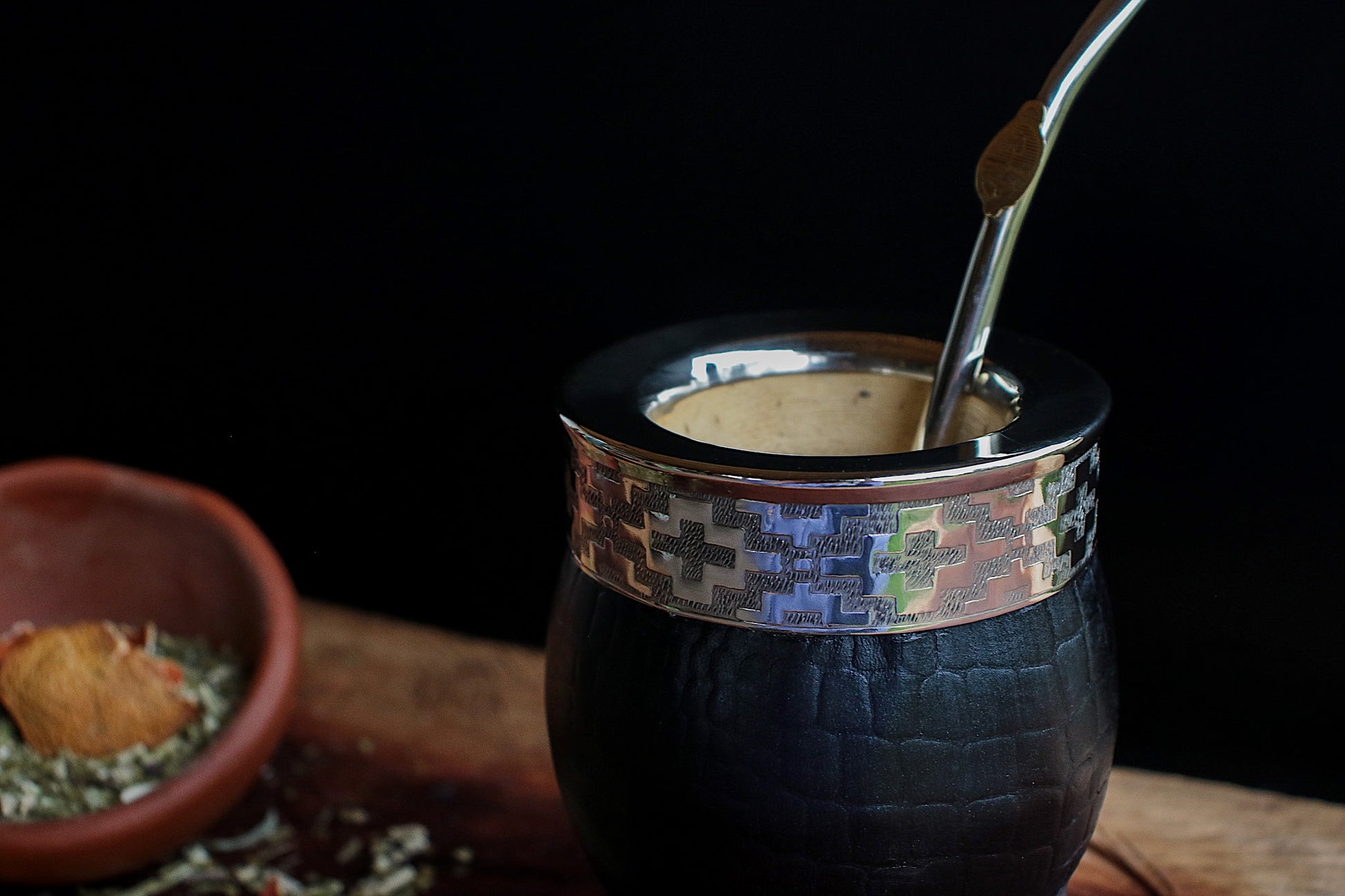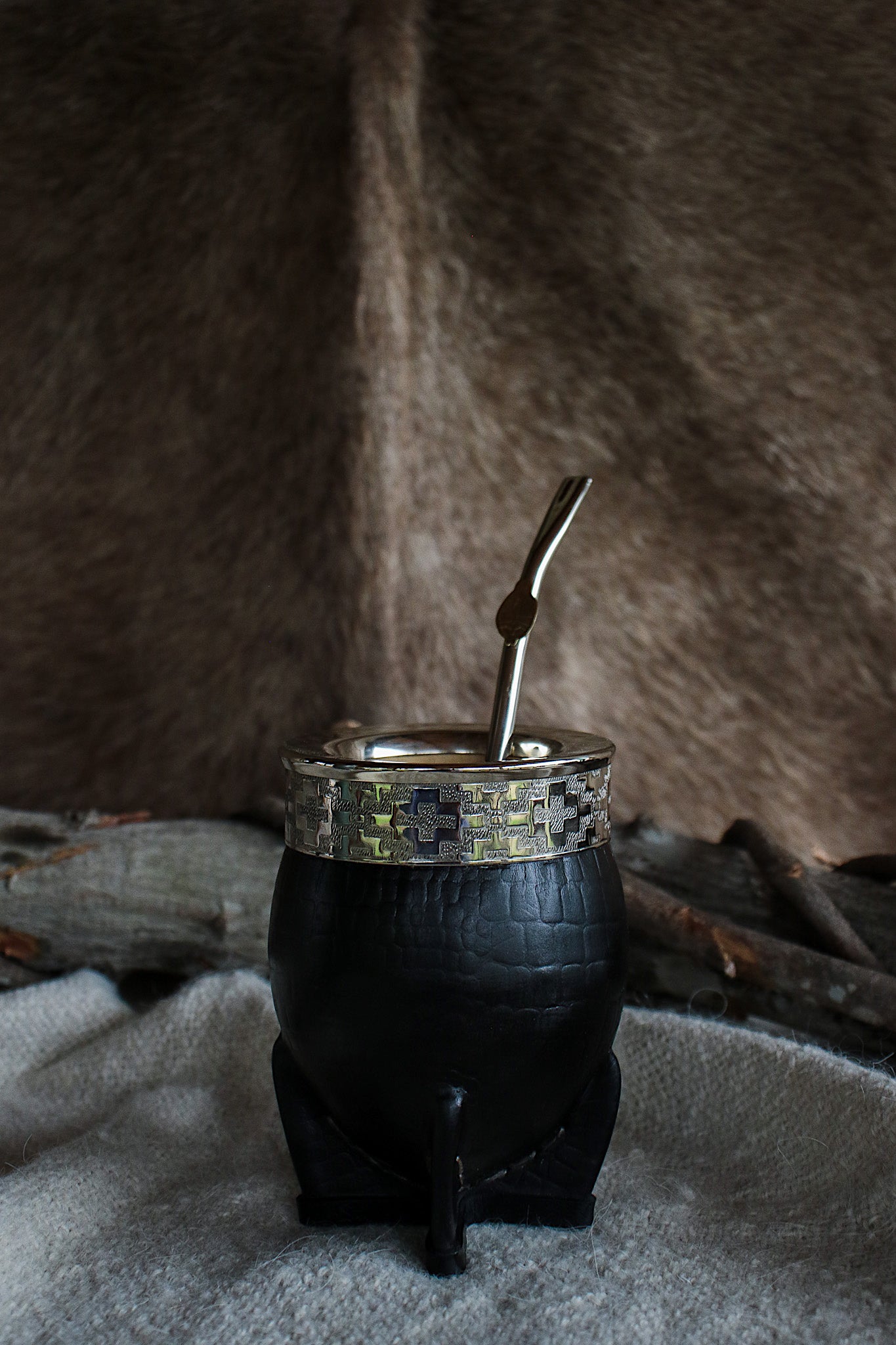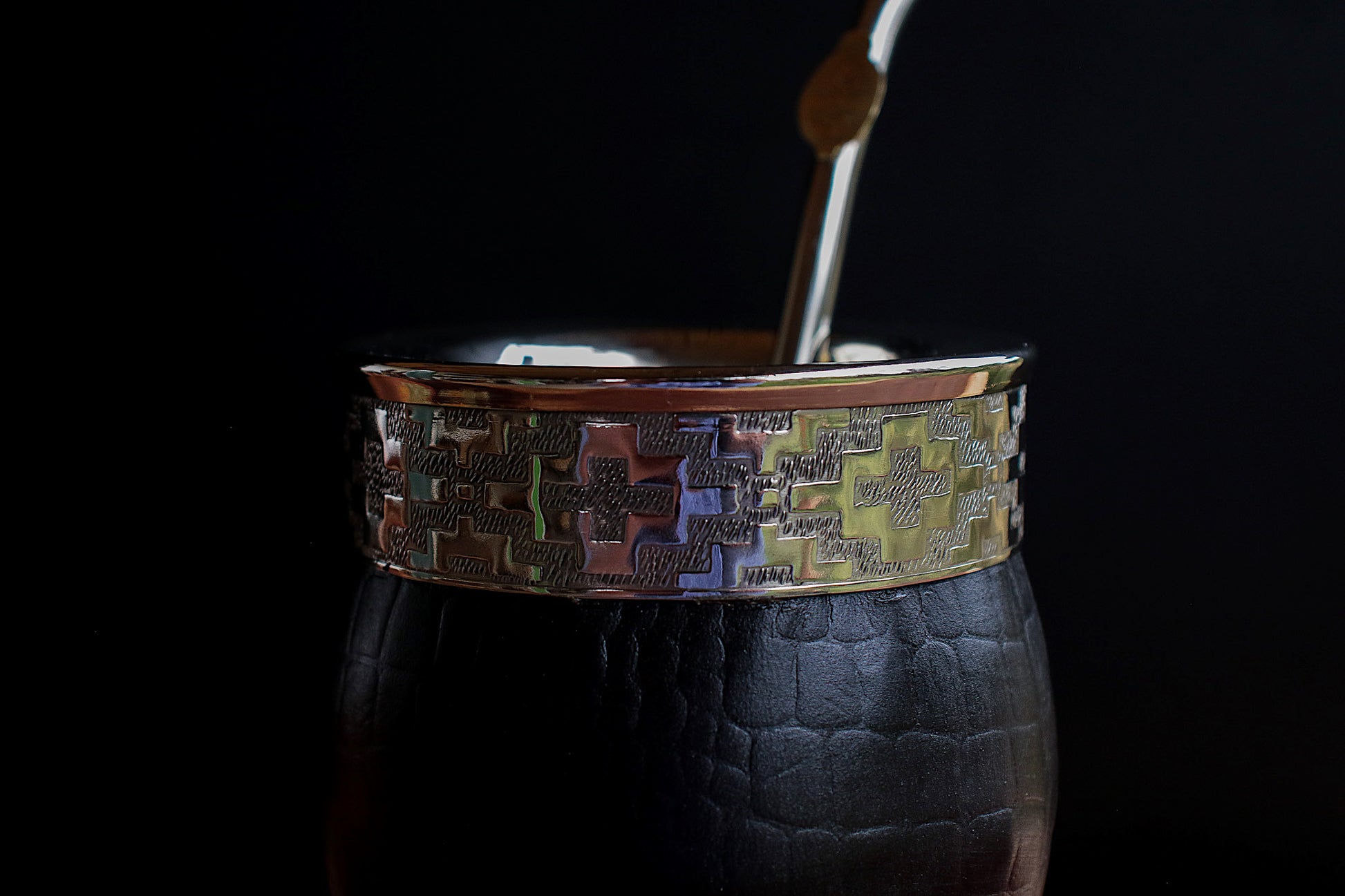 Mate imperial de porongo forrado artesanalmente en cuero natural.