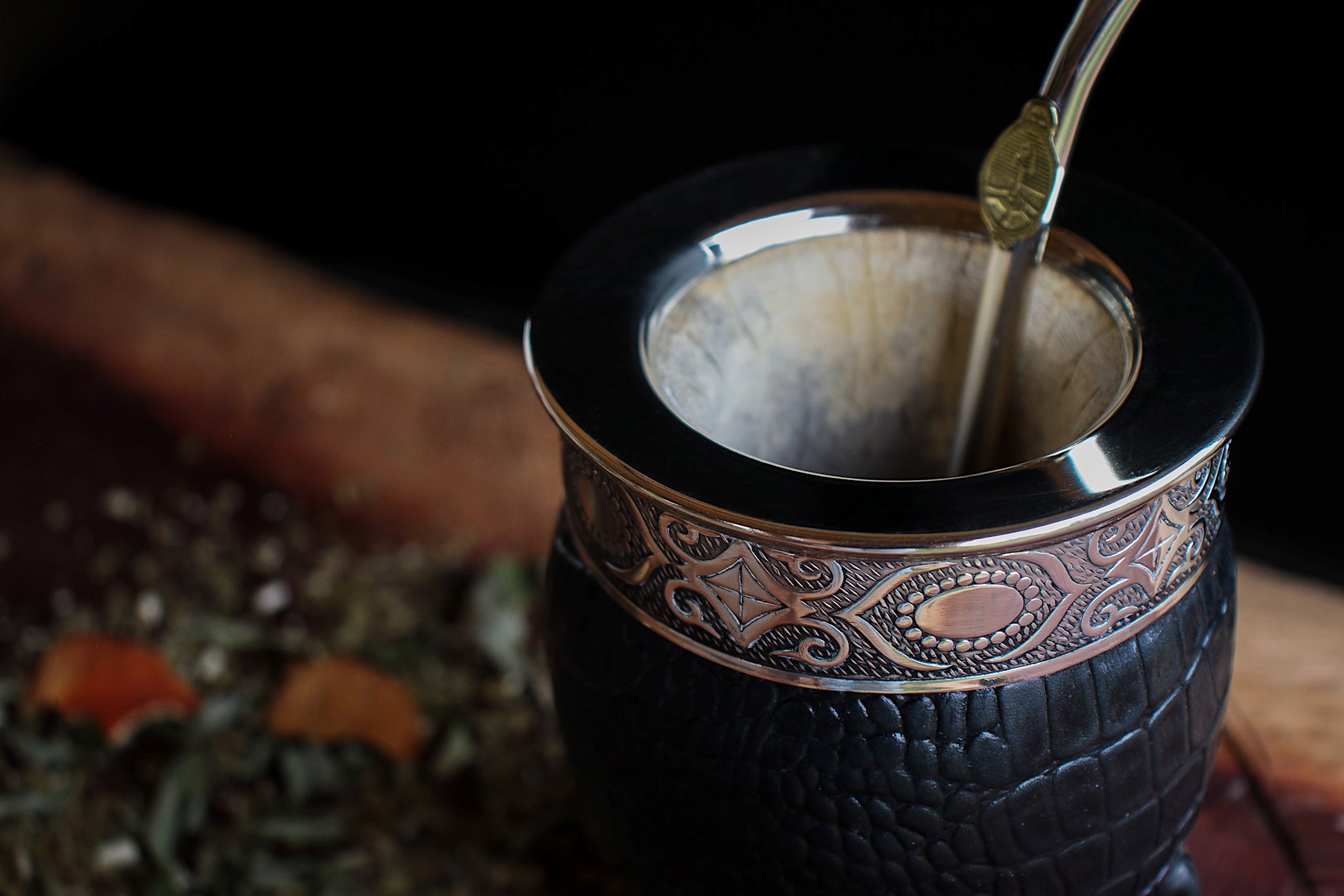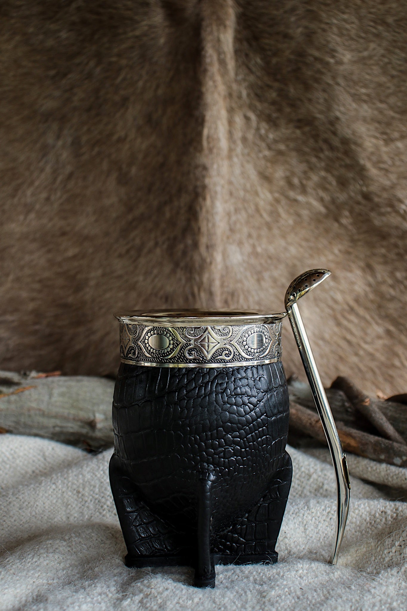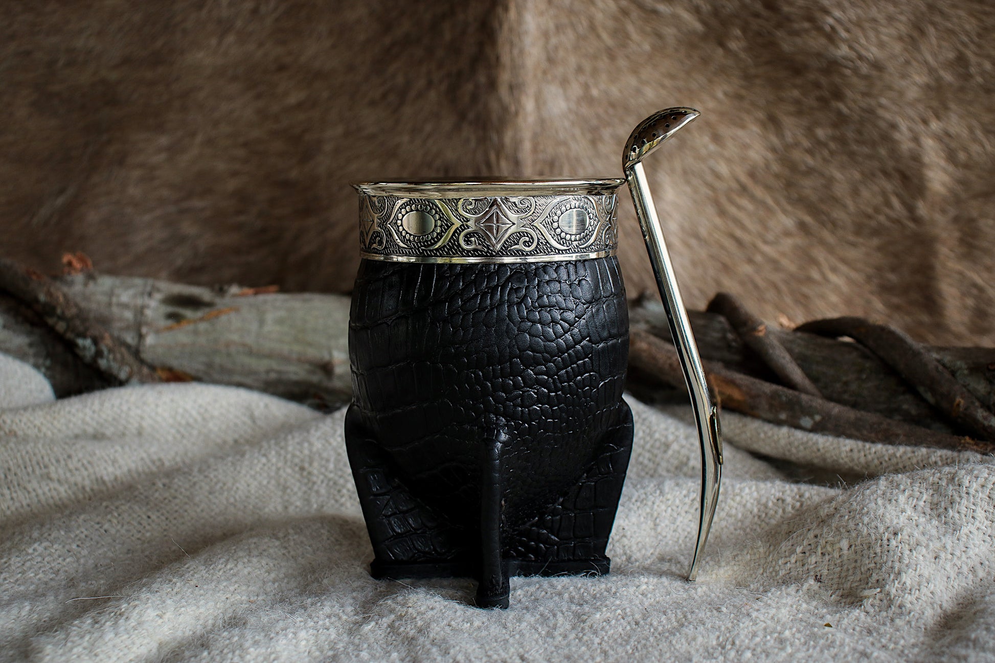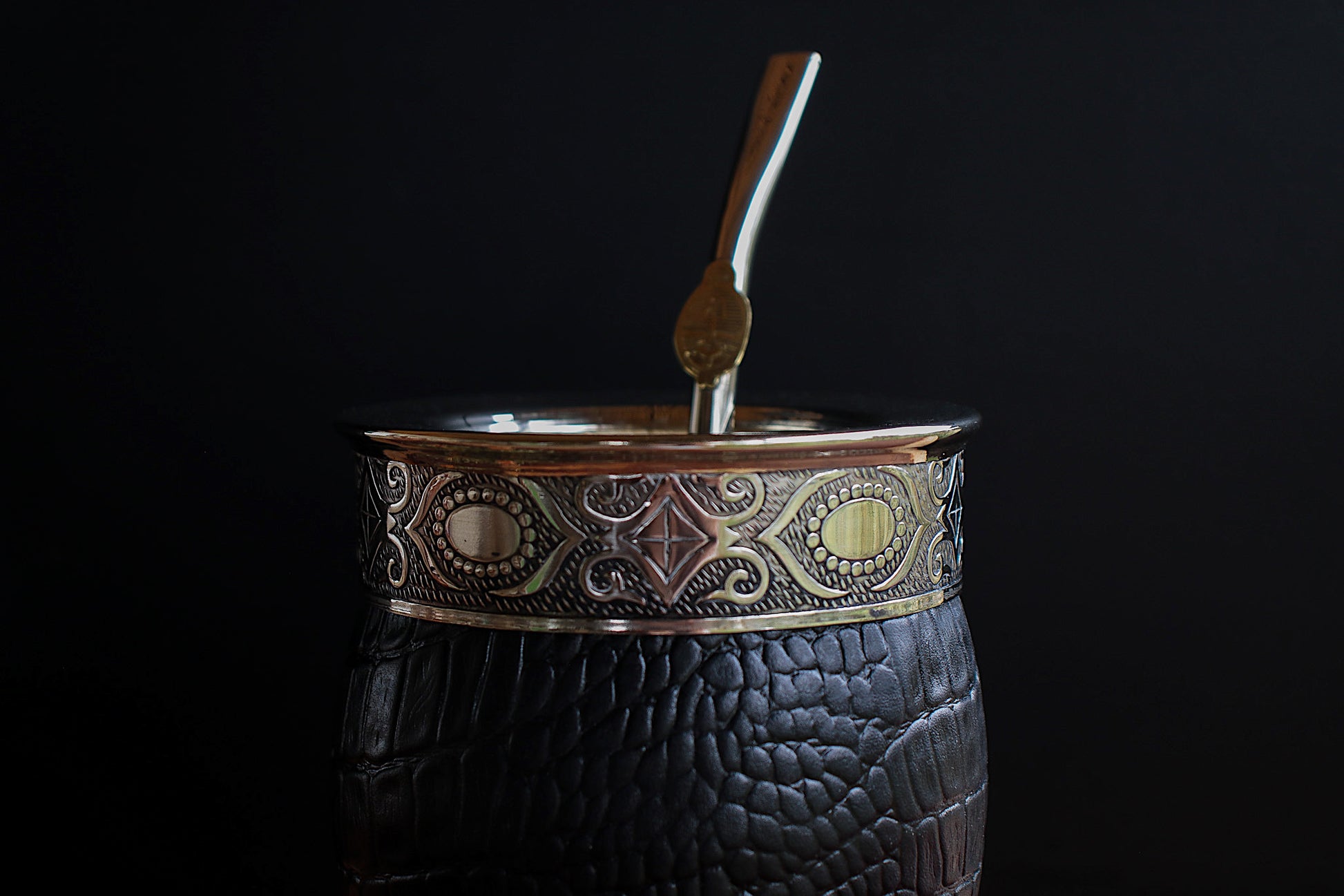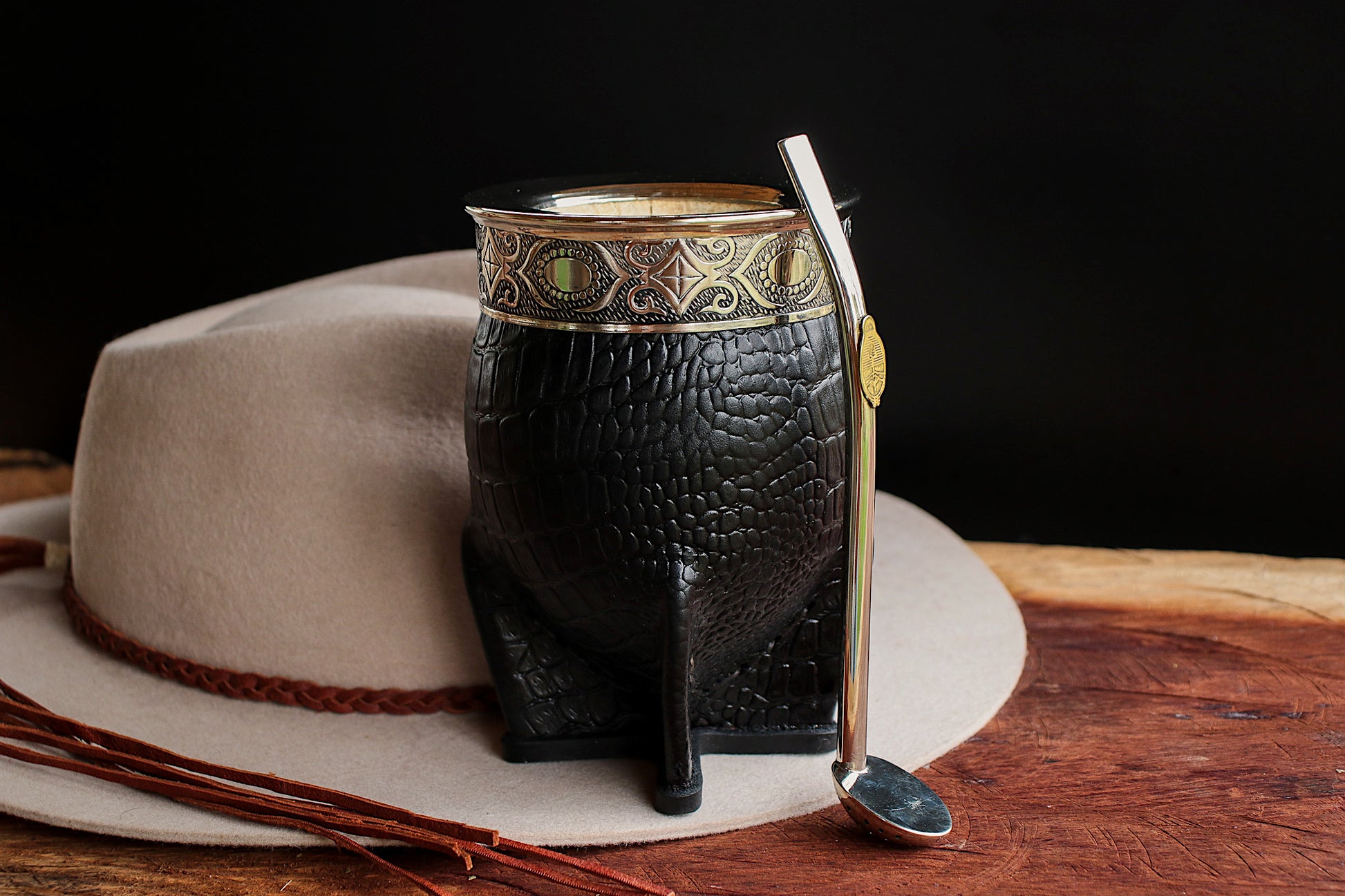 Mate imperial de porongo forrado artesanalmente en cuero natural.