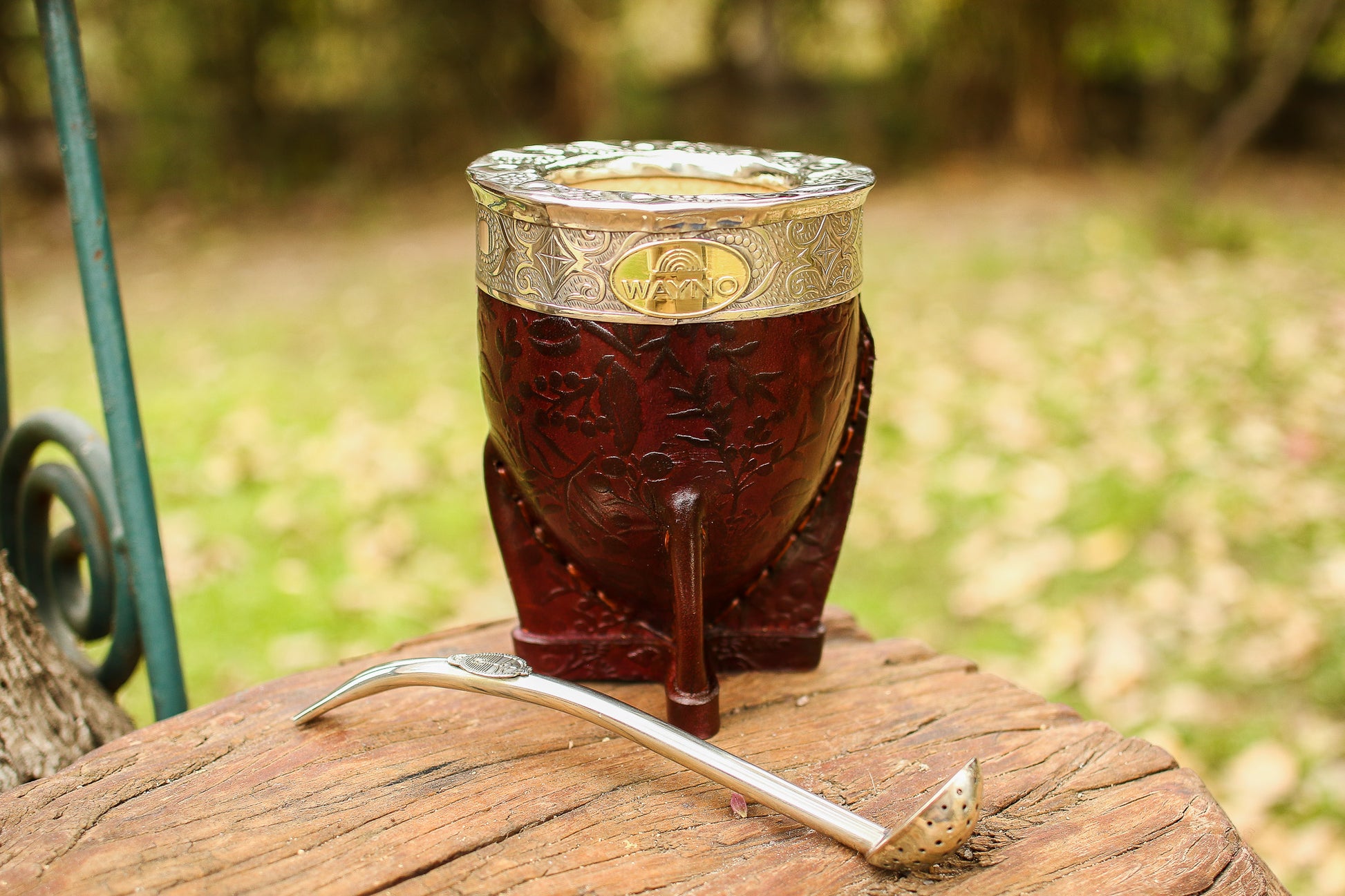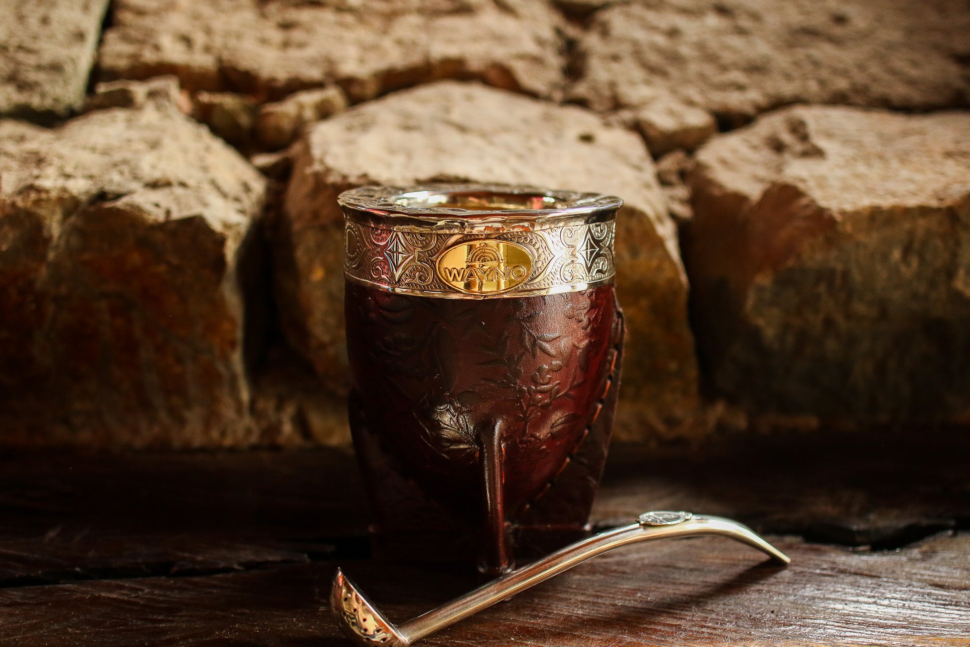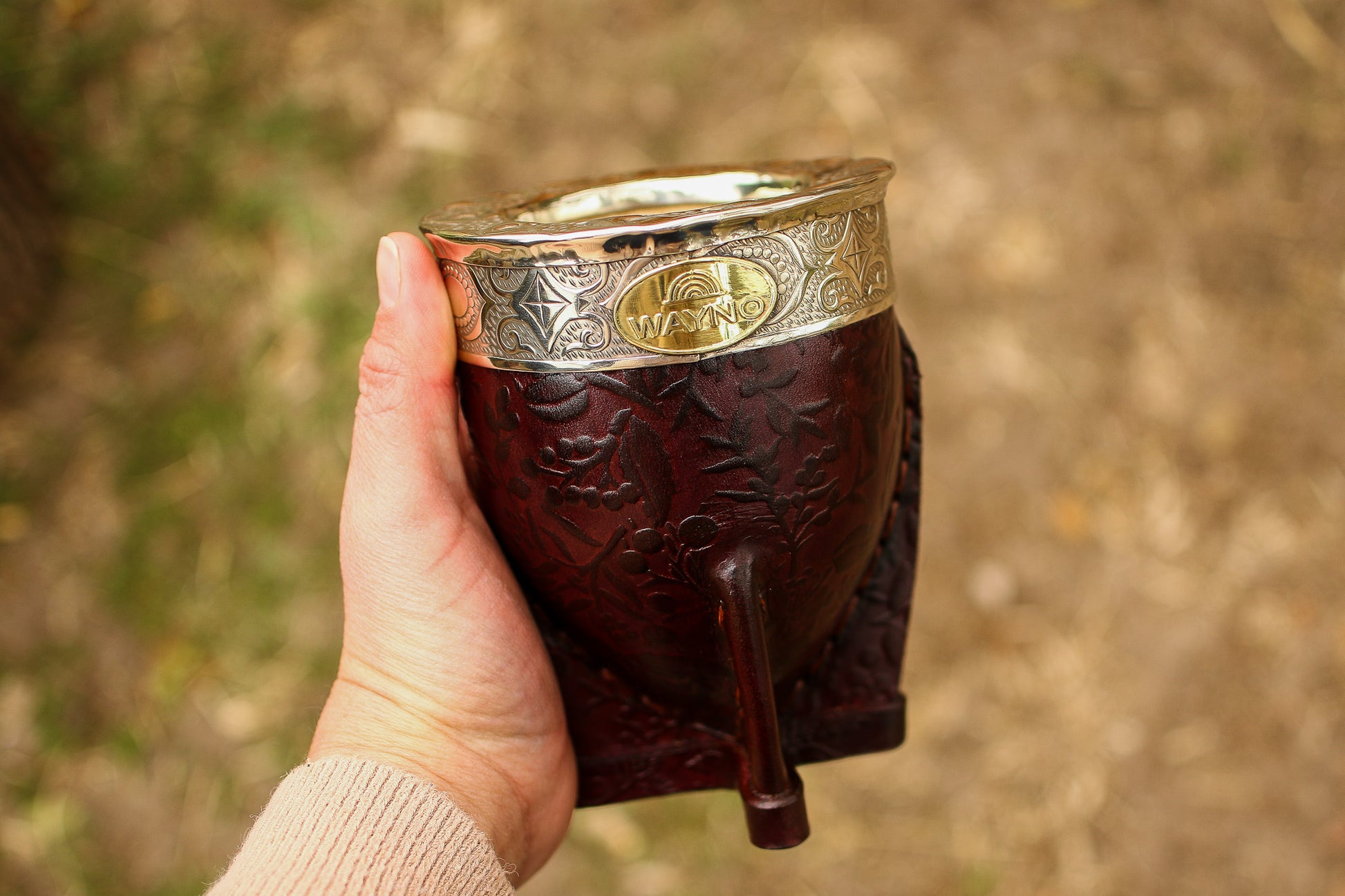 Mate imperial de porongo forrado artesanalmente en cuero natural.