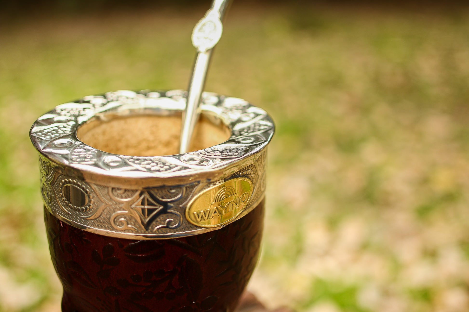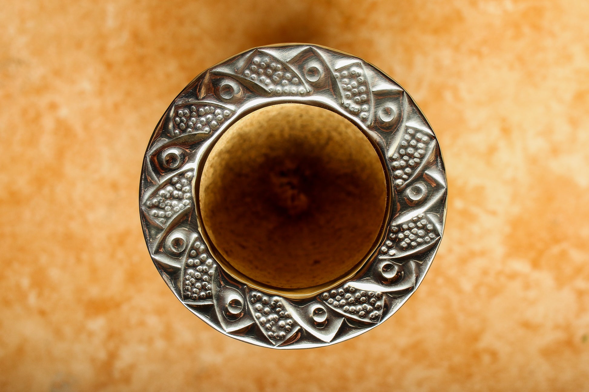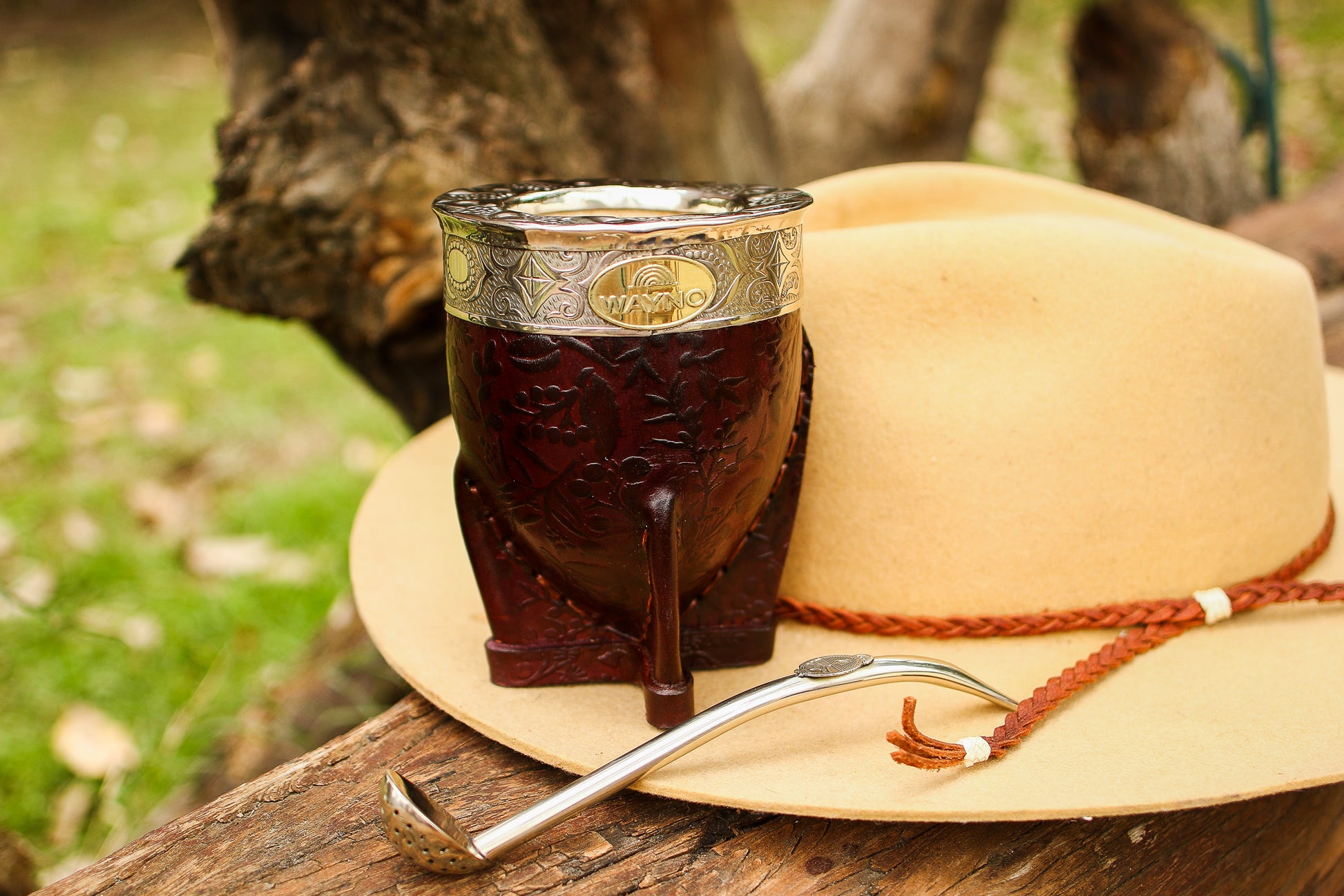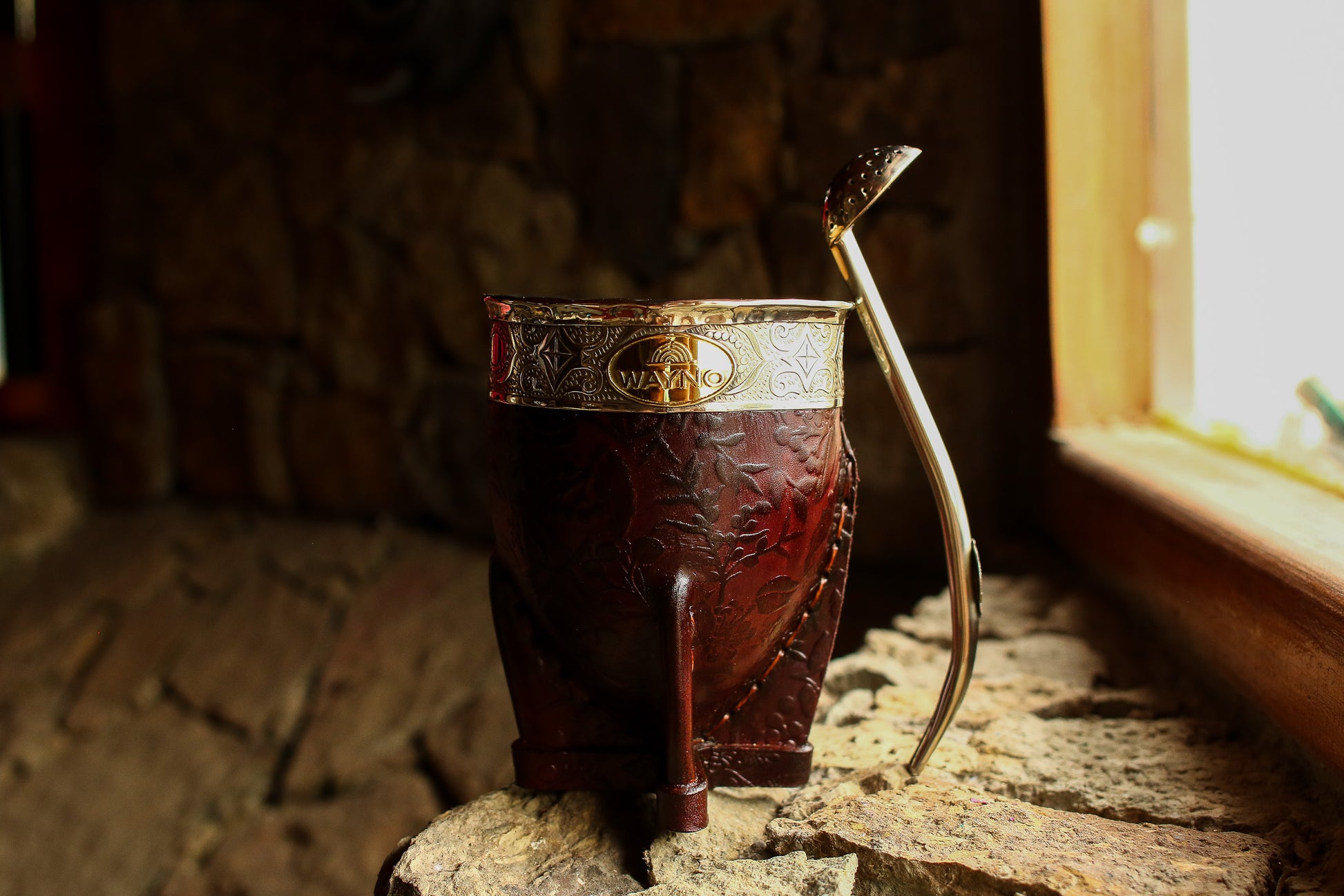 Mate imperial de porongo forrado artesanalmente en cuero natural.