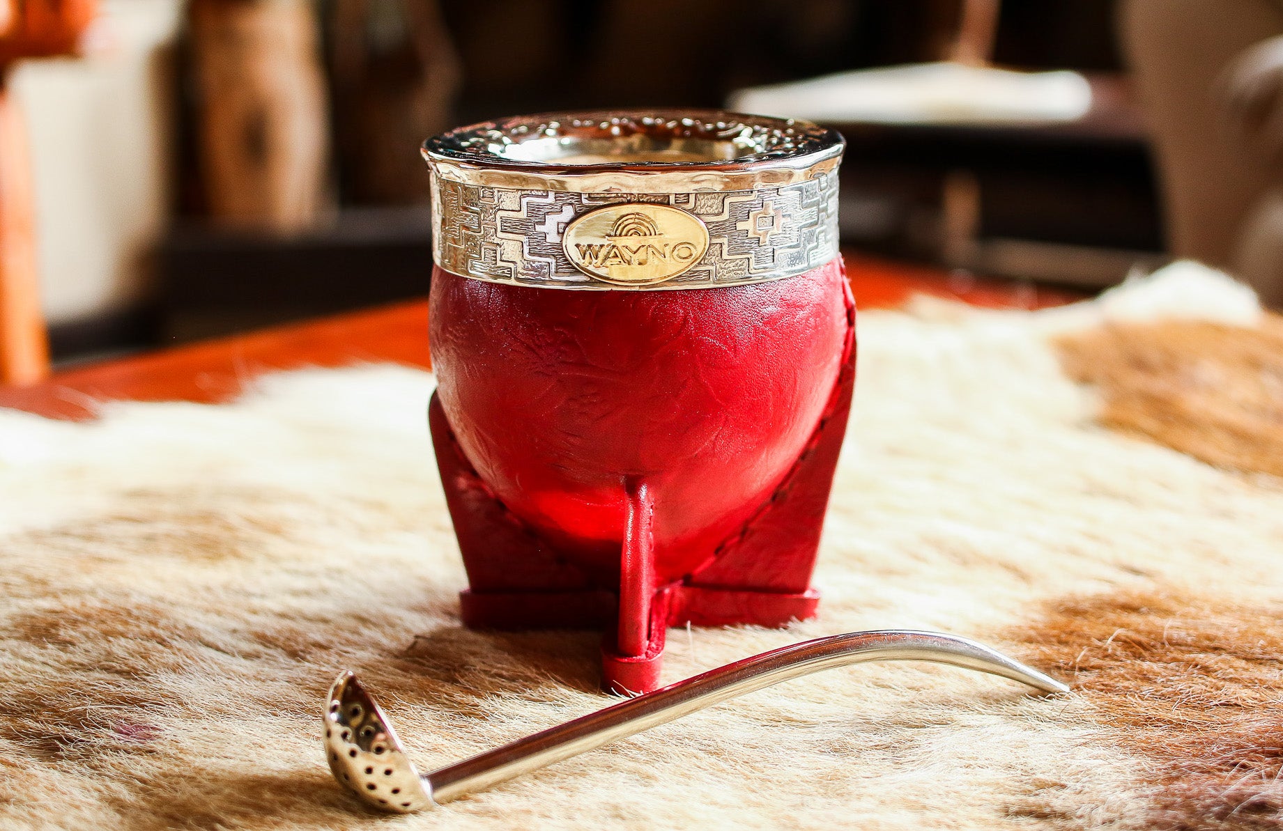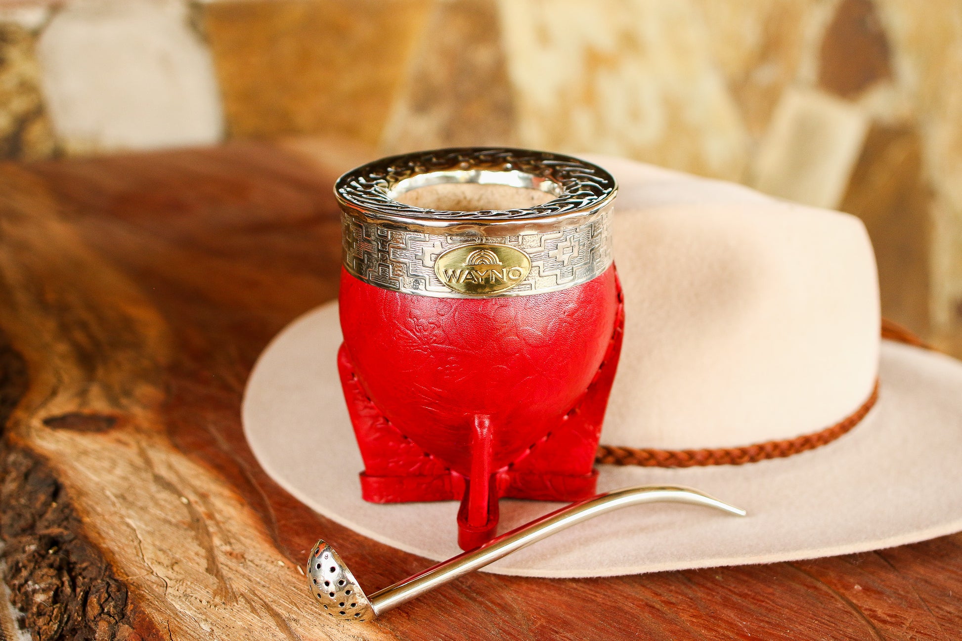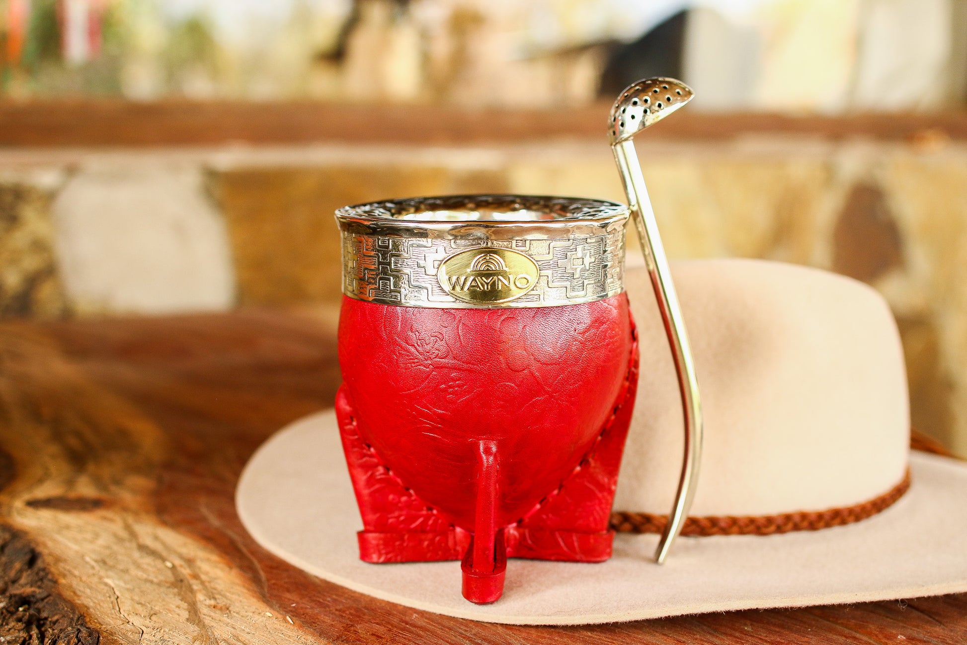 Mate imperial de porongo forrado artesanalmente en cuero natural.