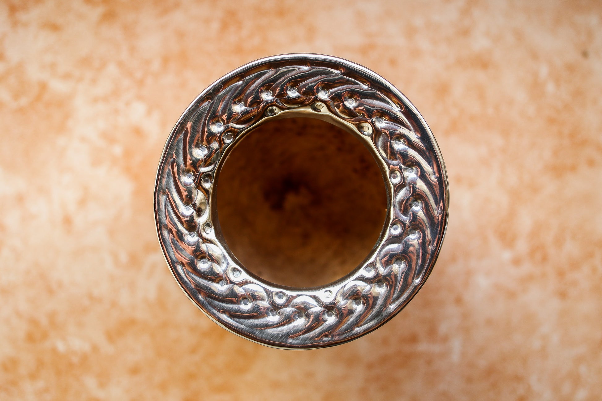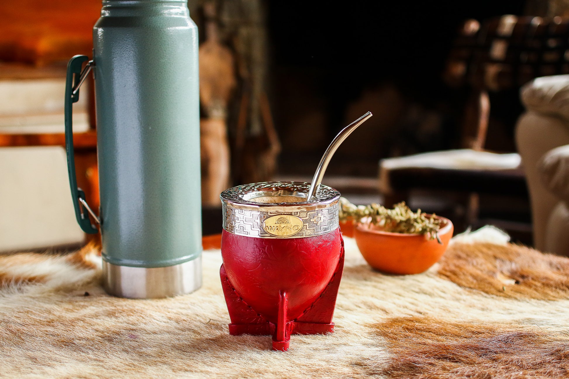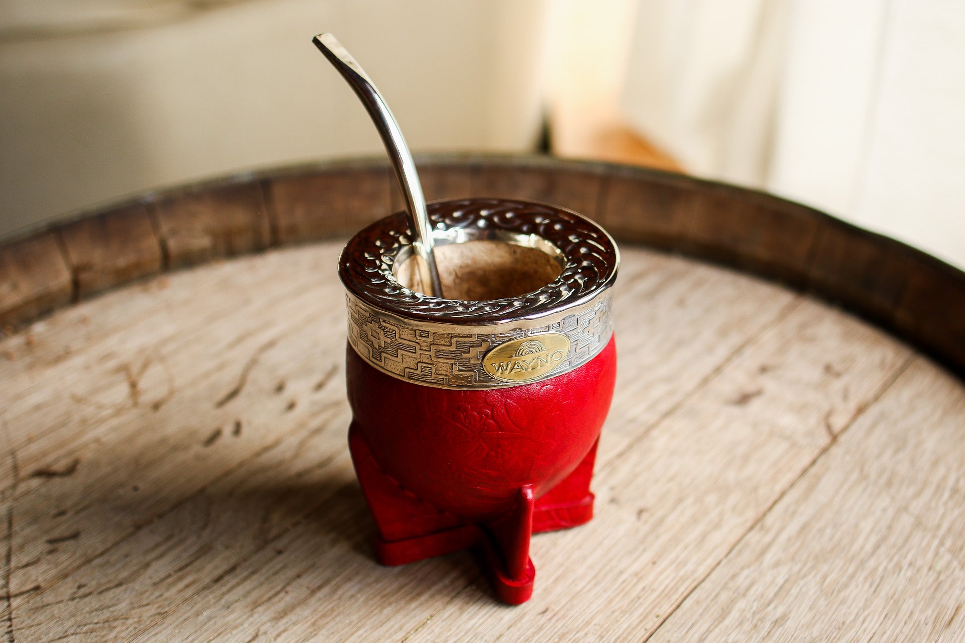 Mate imperial de porongo forrado artesanalmente en cuero natural.