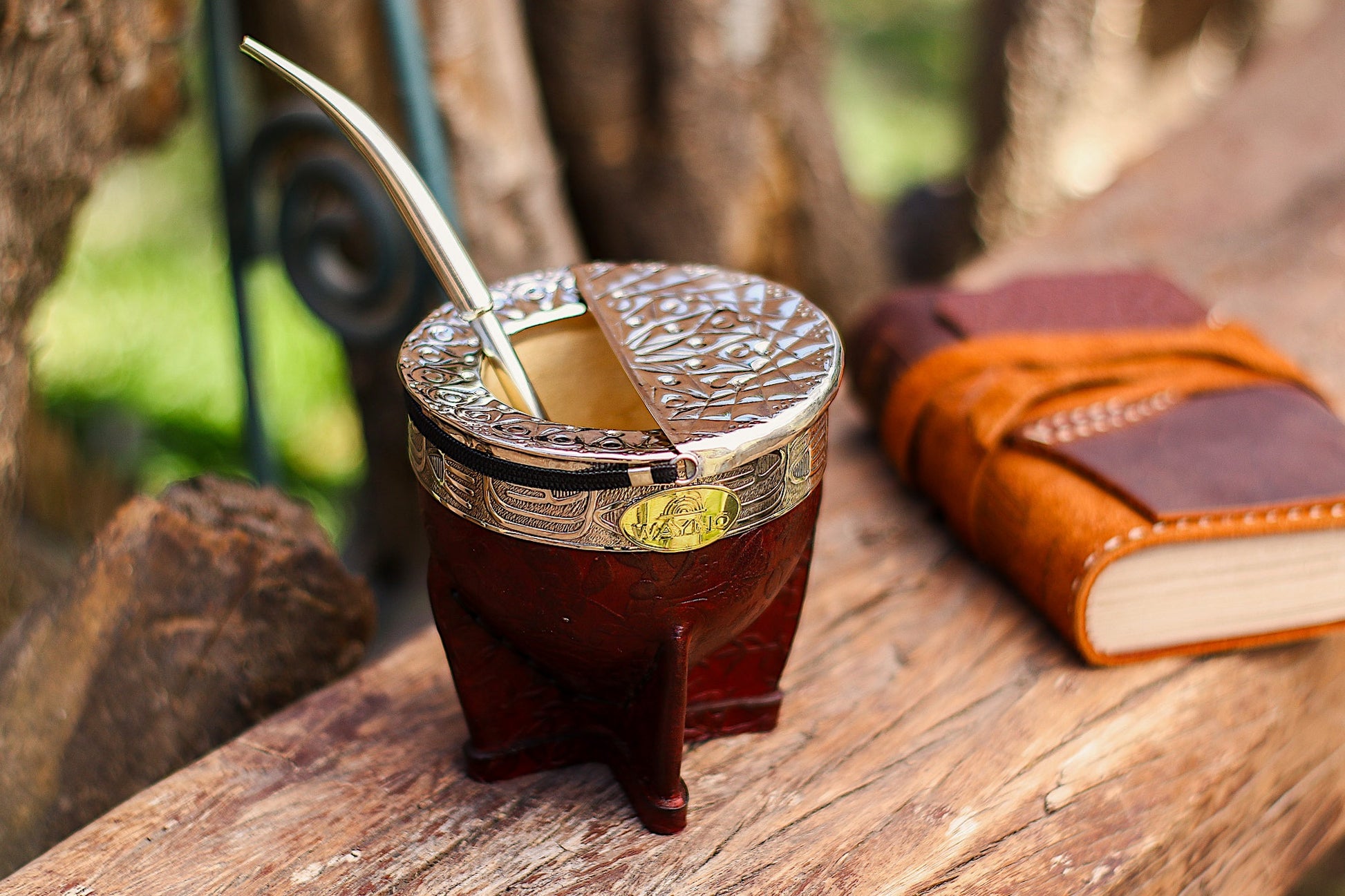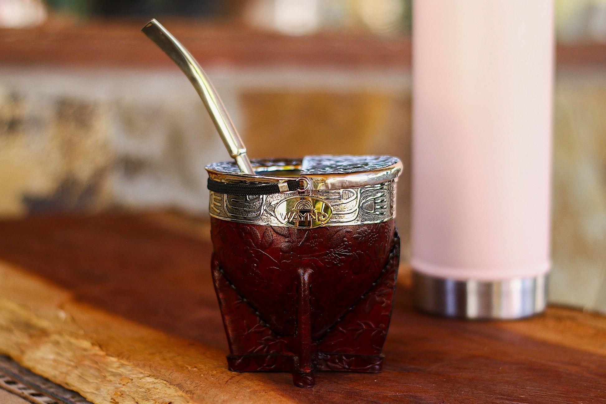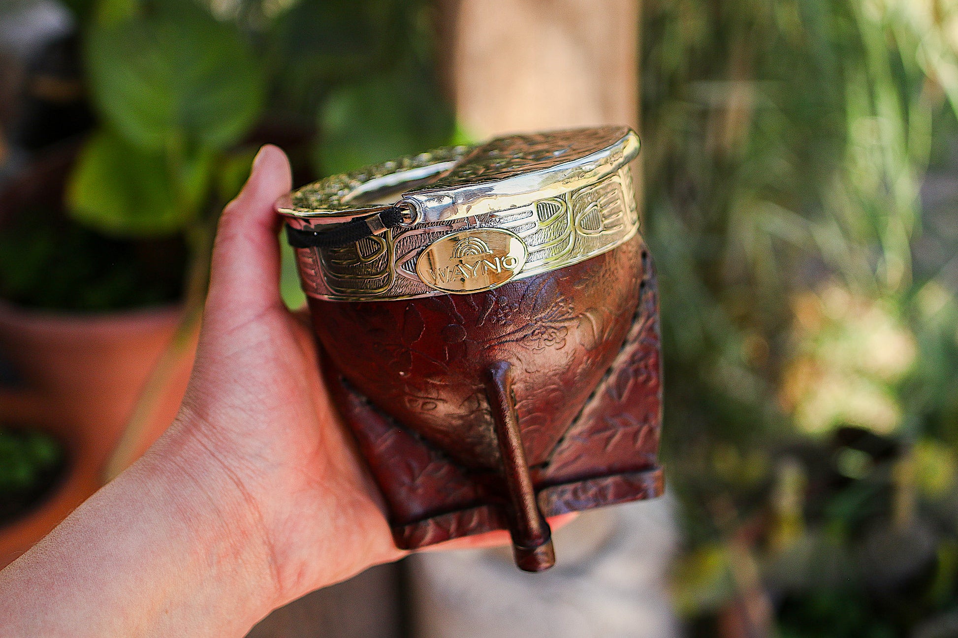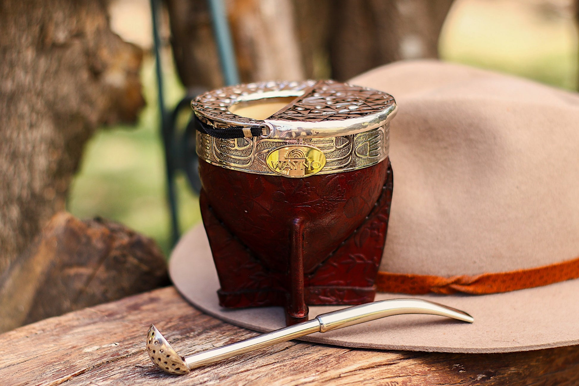 Mate imperial de porongo forrado artesanalmente en cuero natural.
