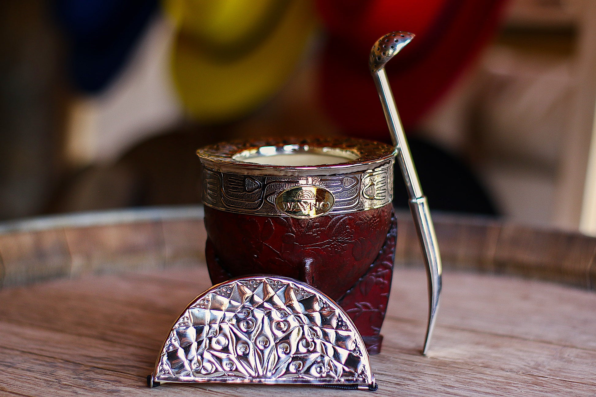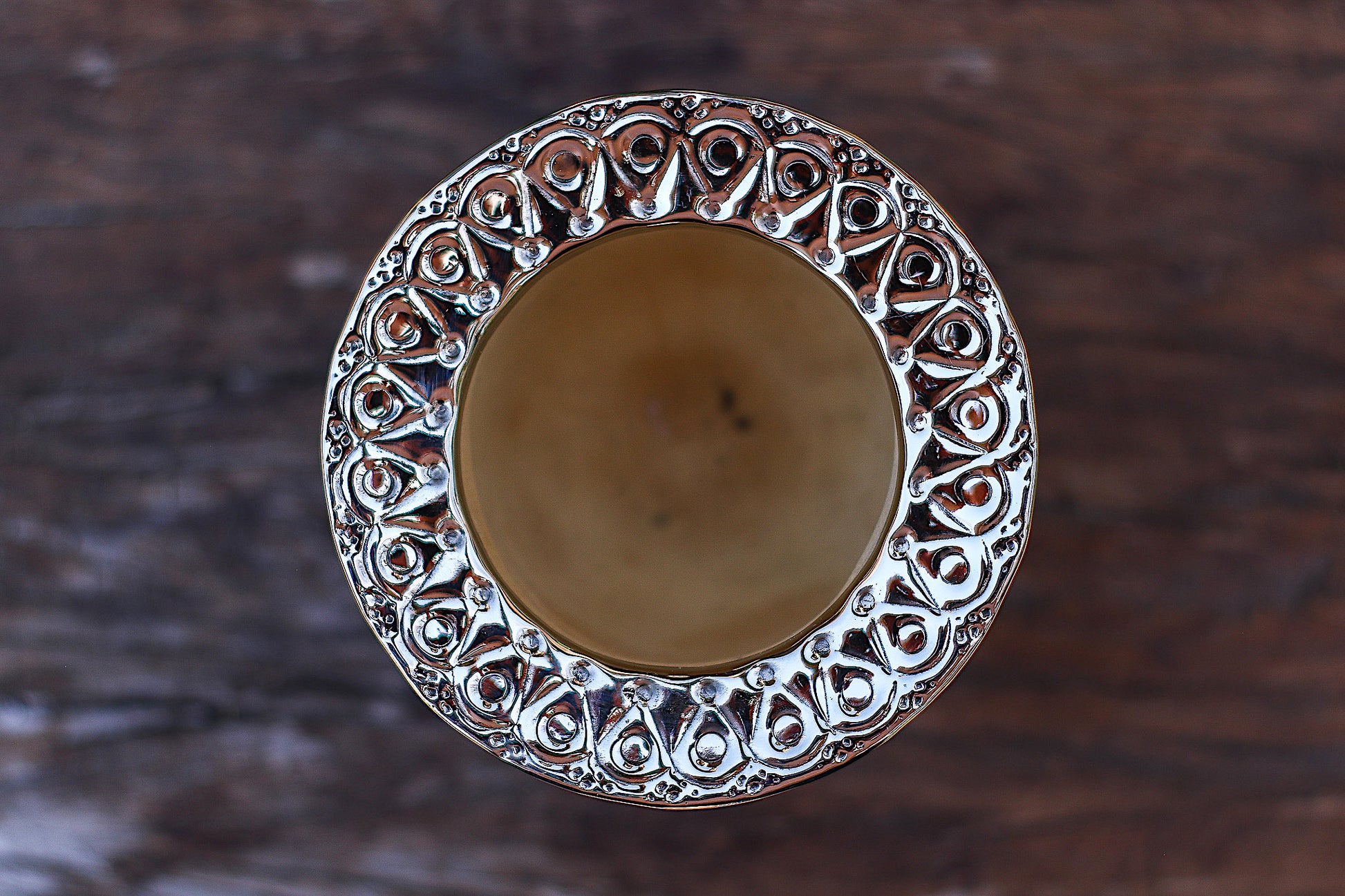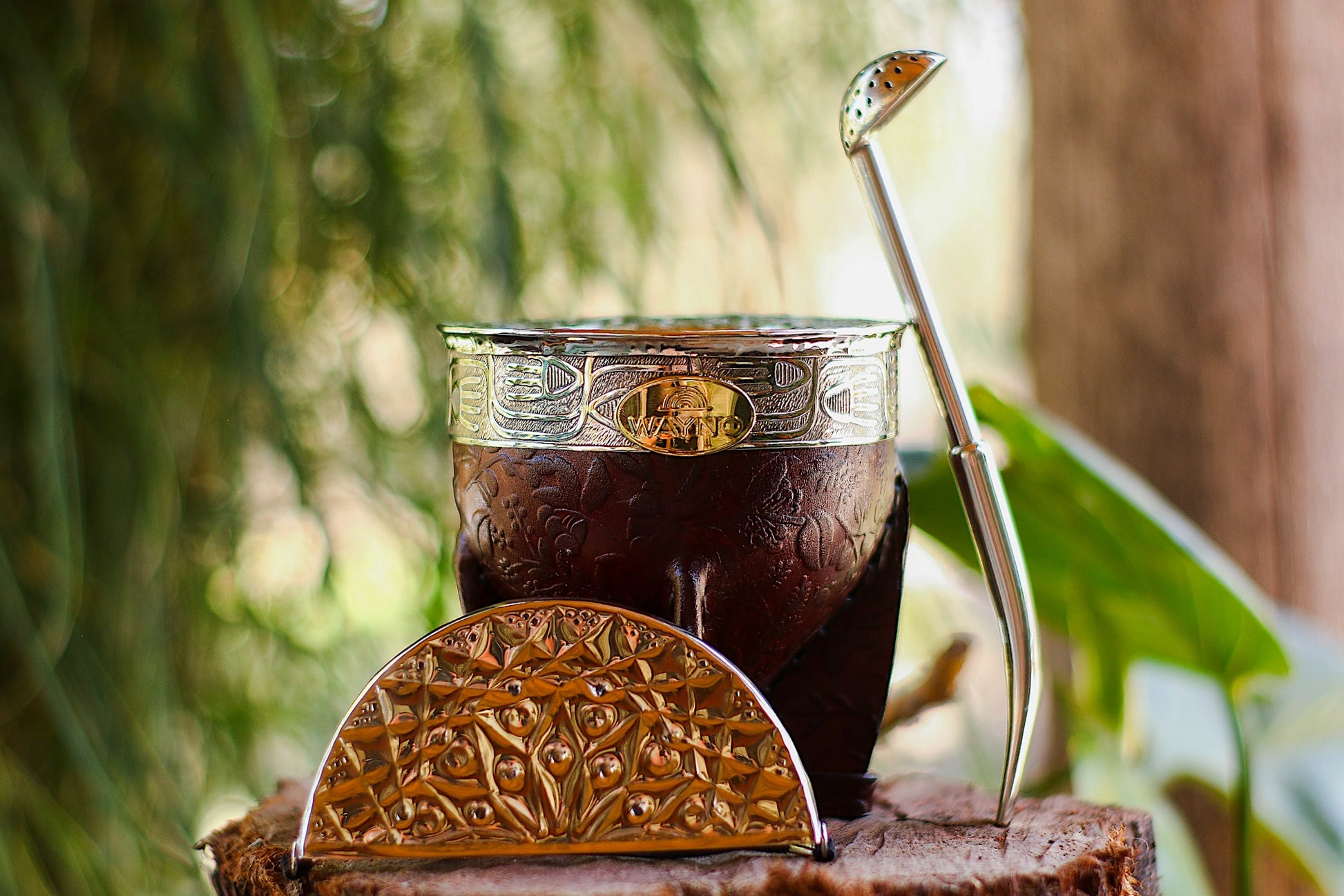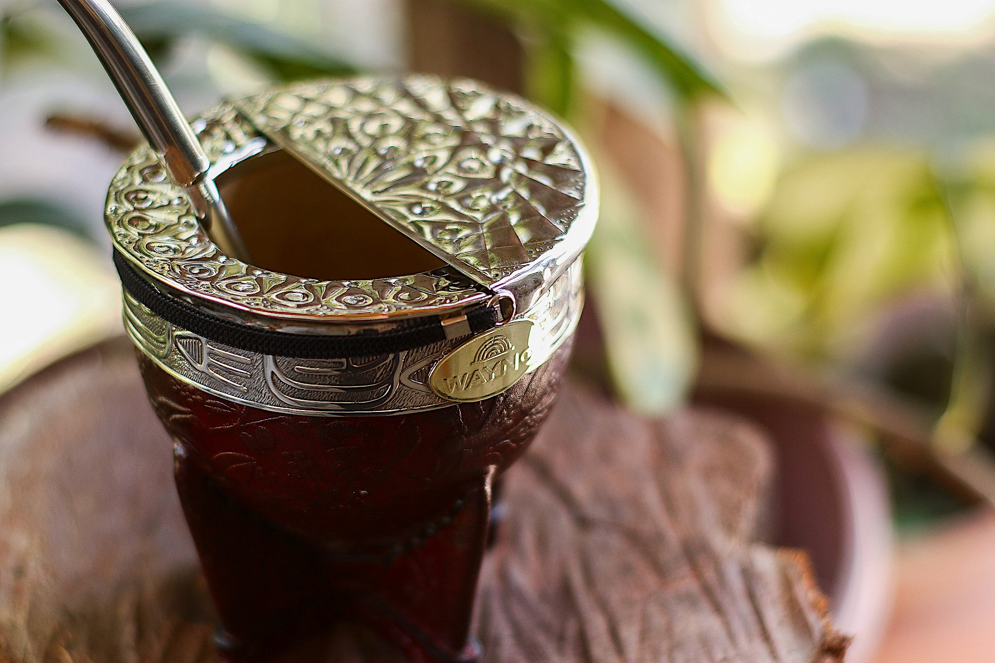 Mate imperial de porongo forrado artesanalmente en cuero natural.
