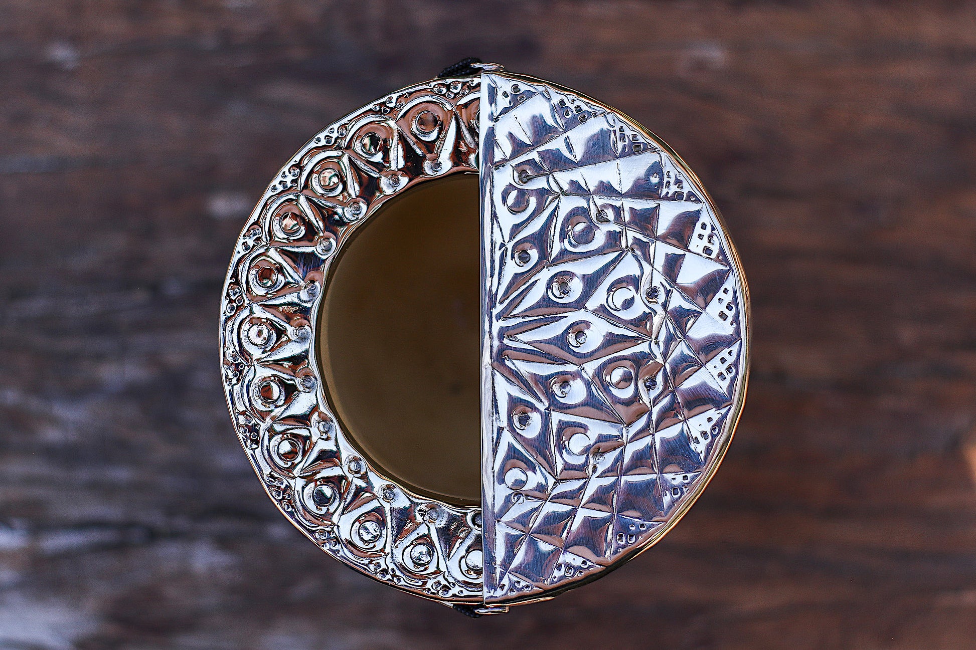 El cincelado en virola es a mano con alpaca y el logo de Wayno es de bronce soldado con plata