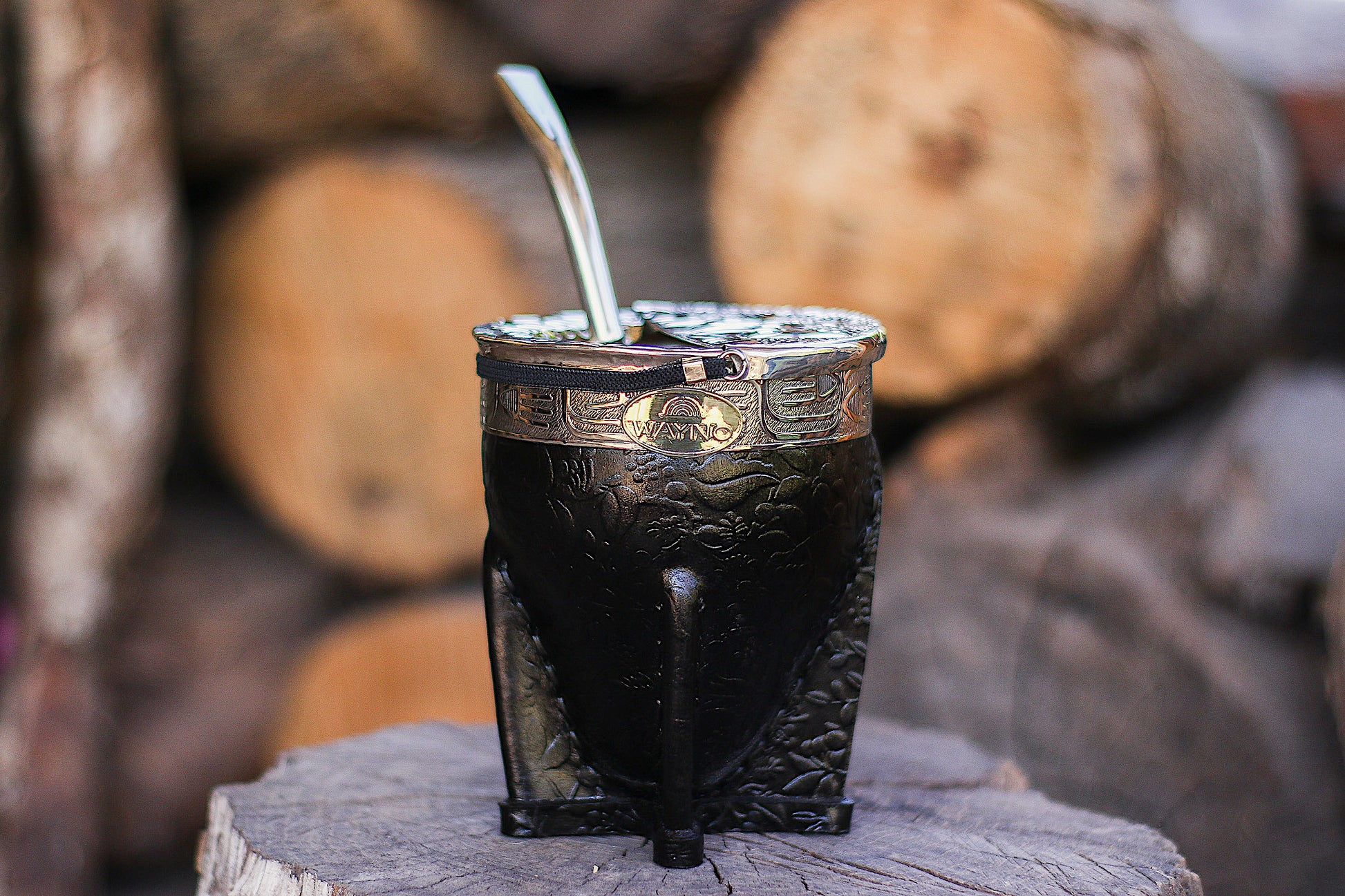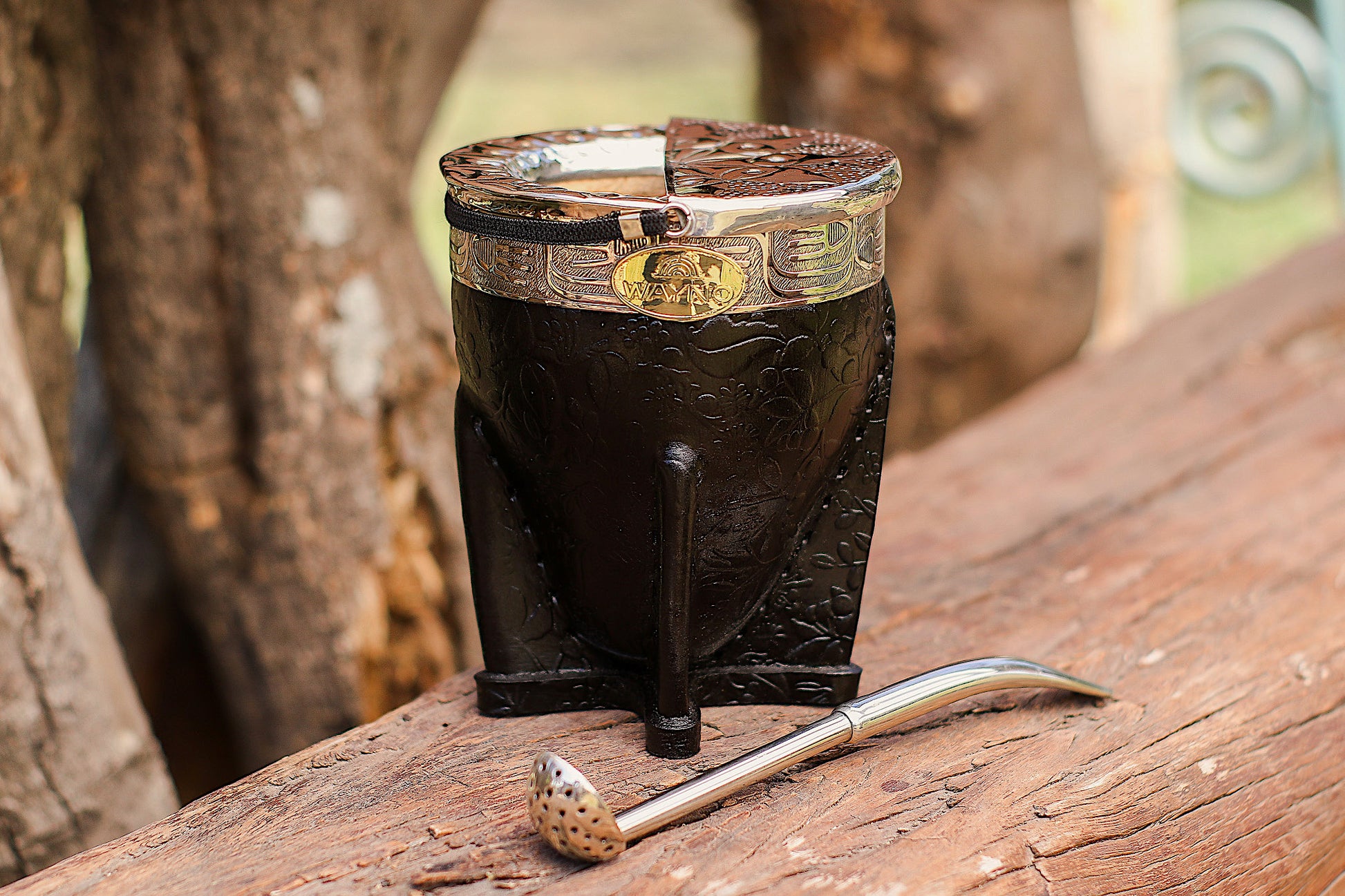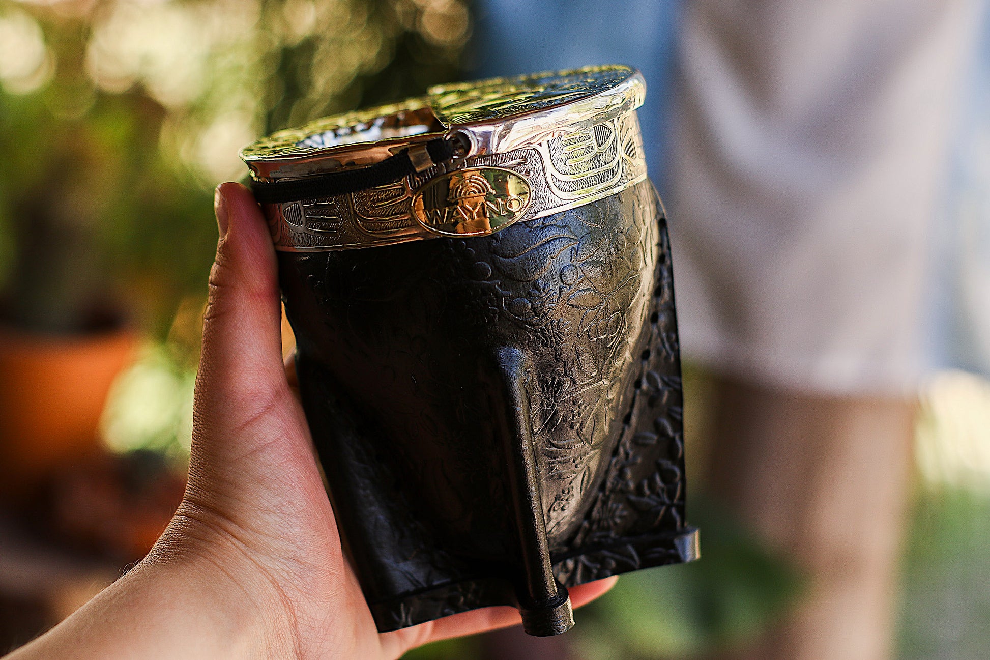 Mate imperial de porongo forrado artesanalmente en cuero natural.
