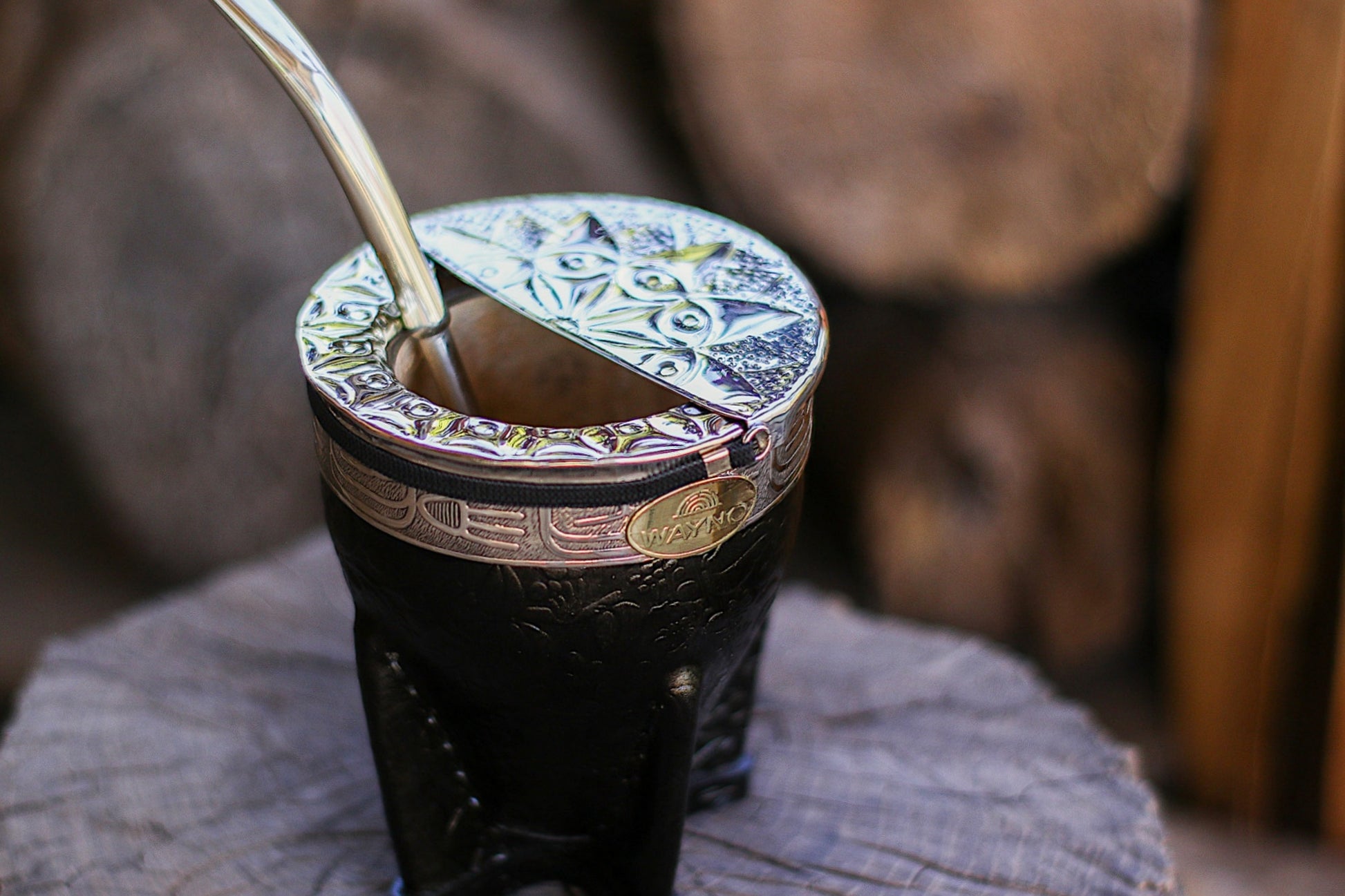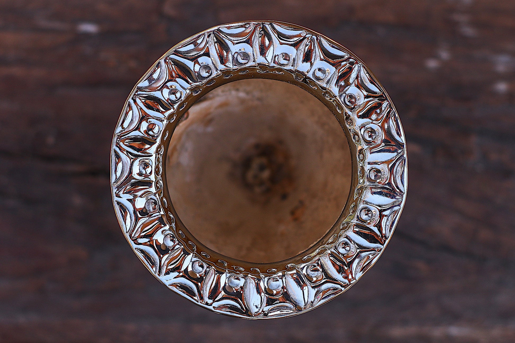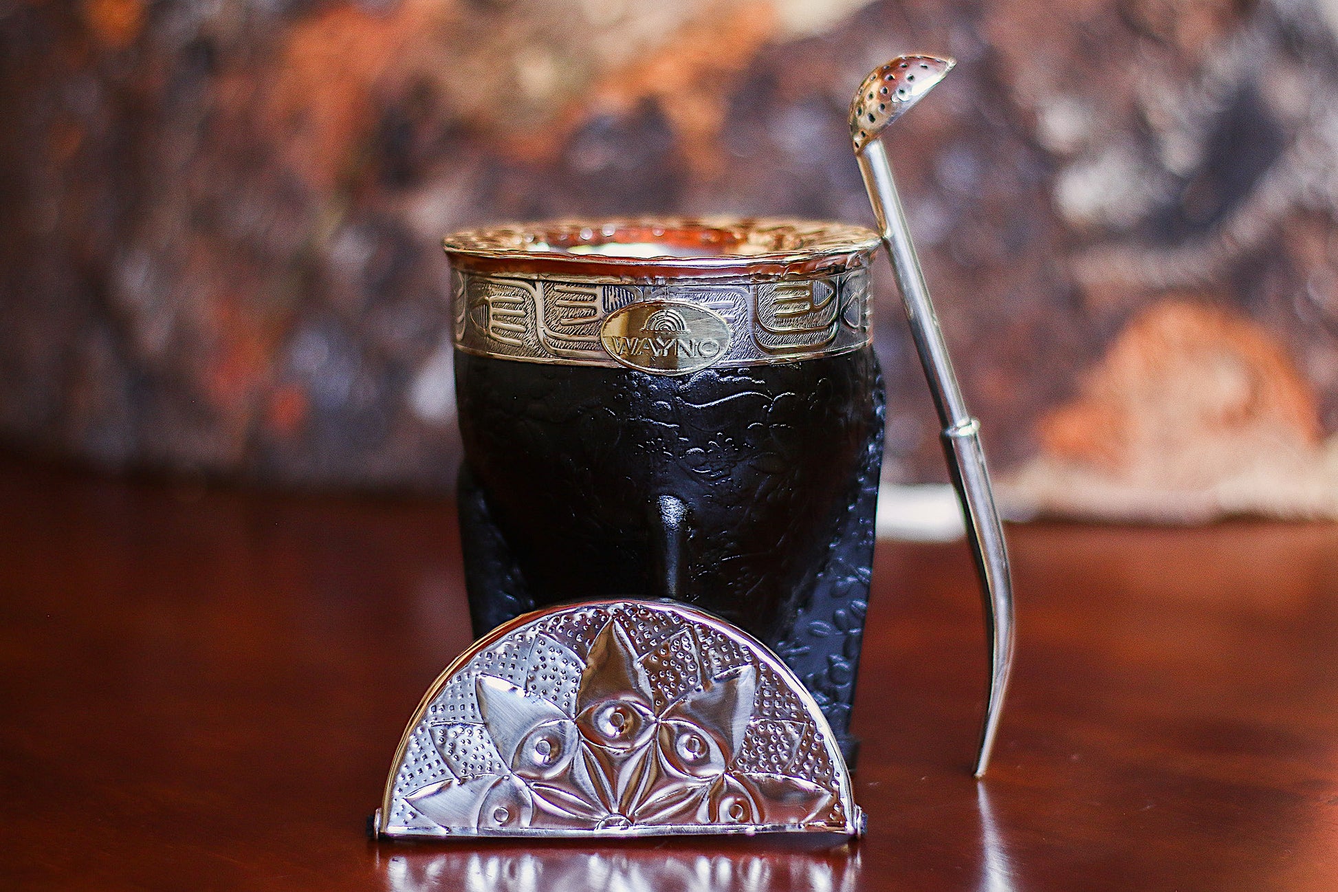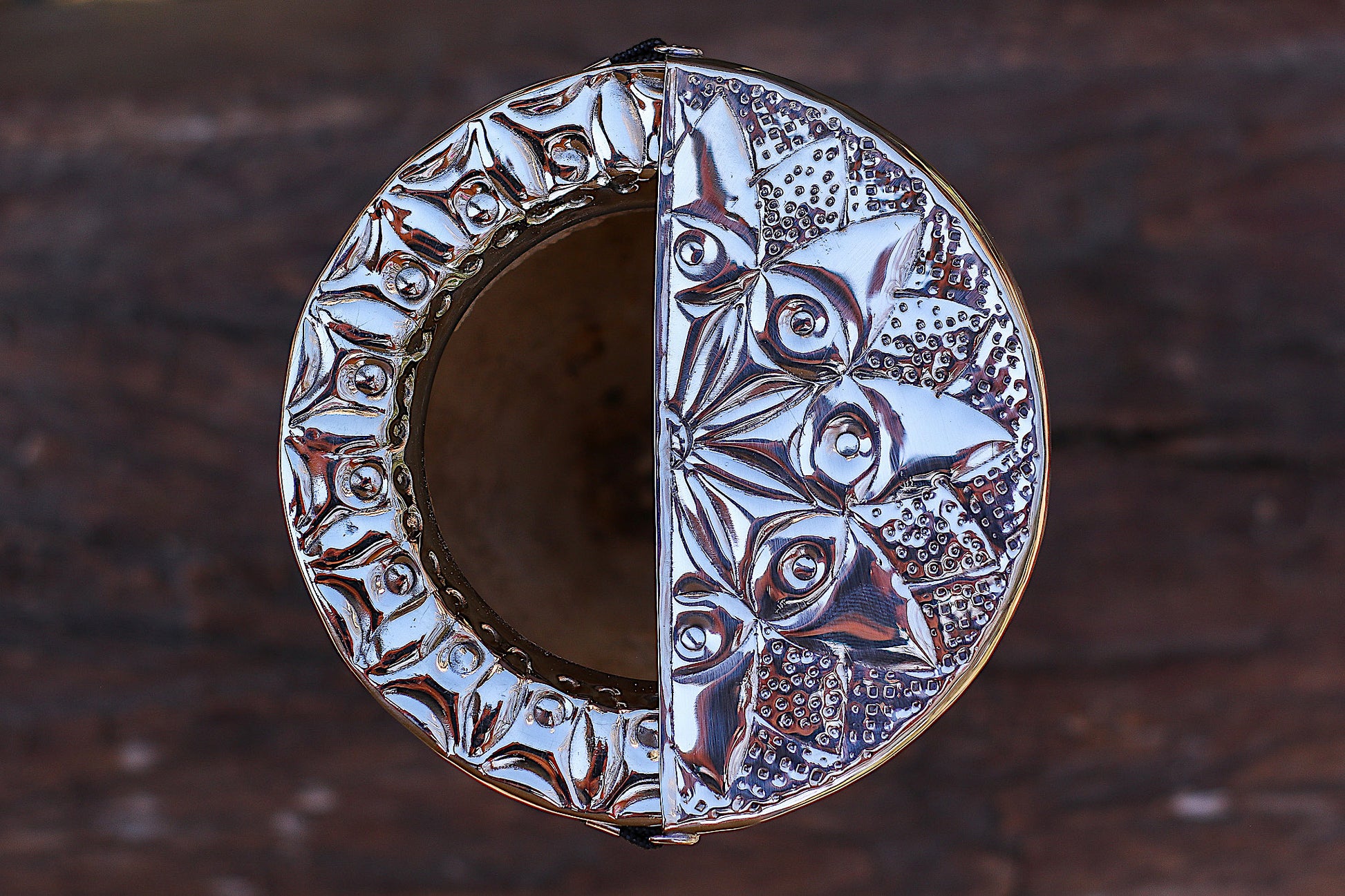 Mate imperial de porongo forrado artesanalmente en cuero natural.