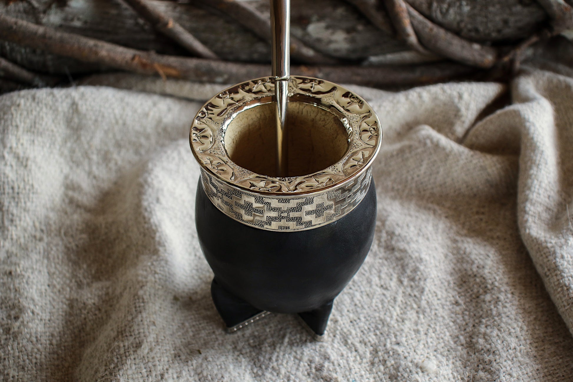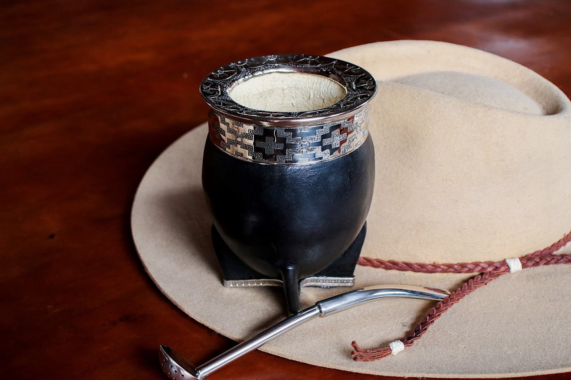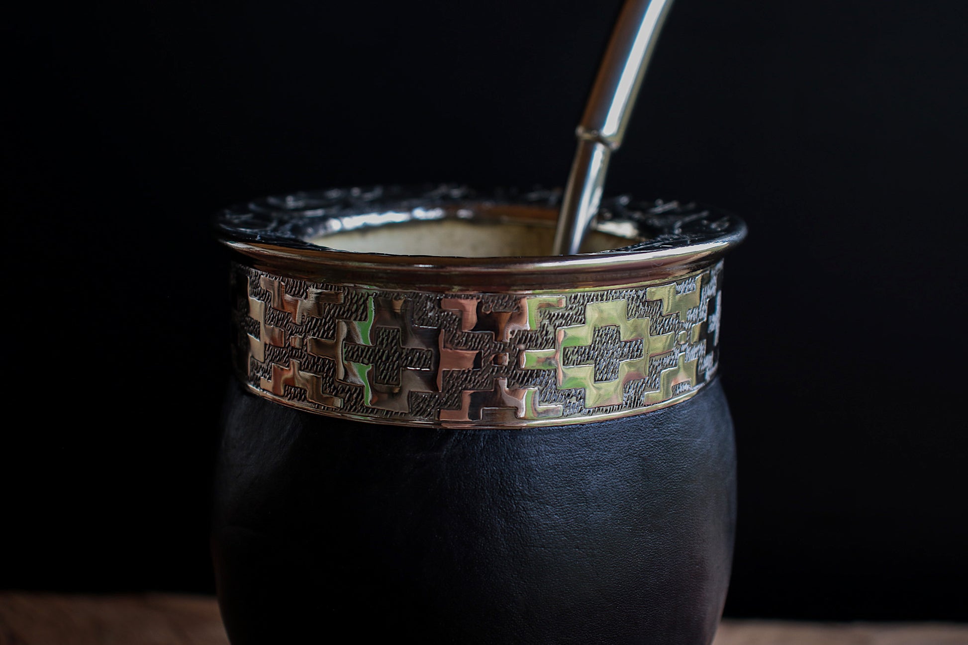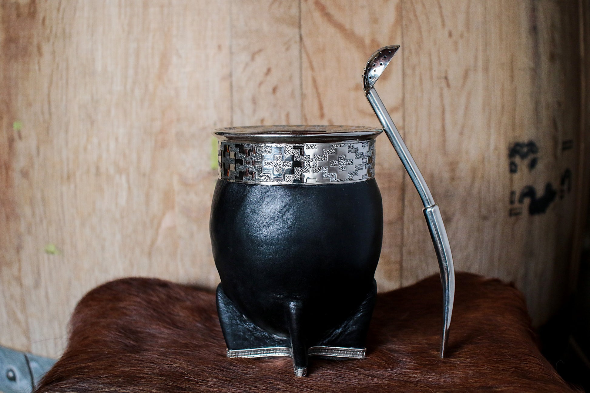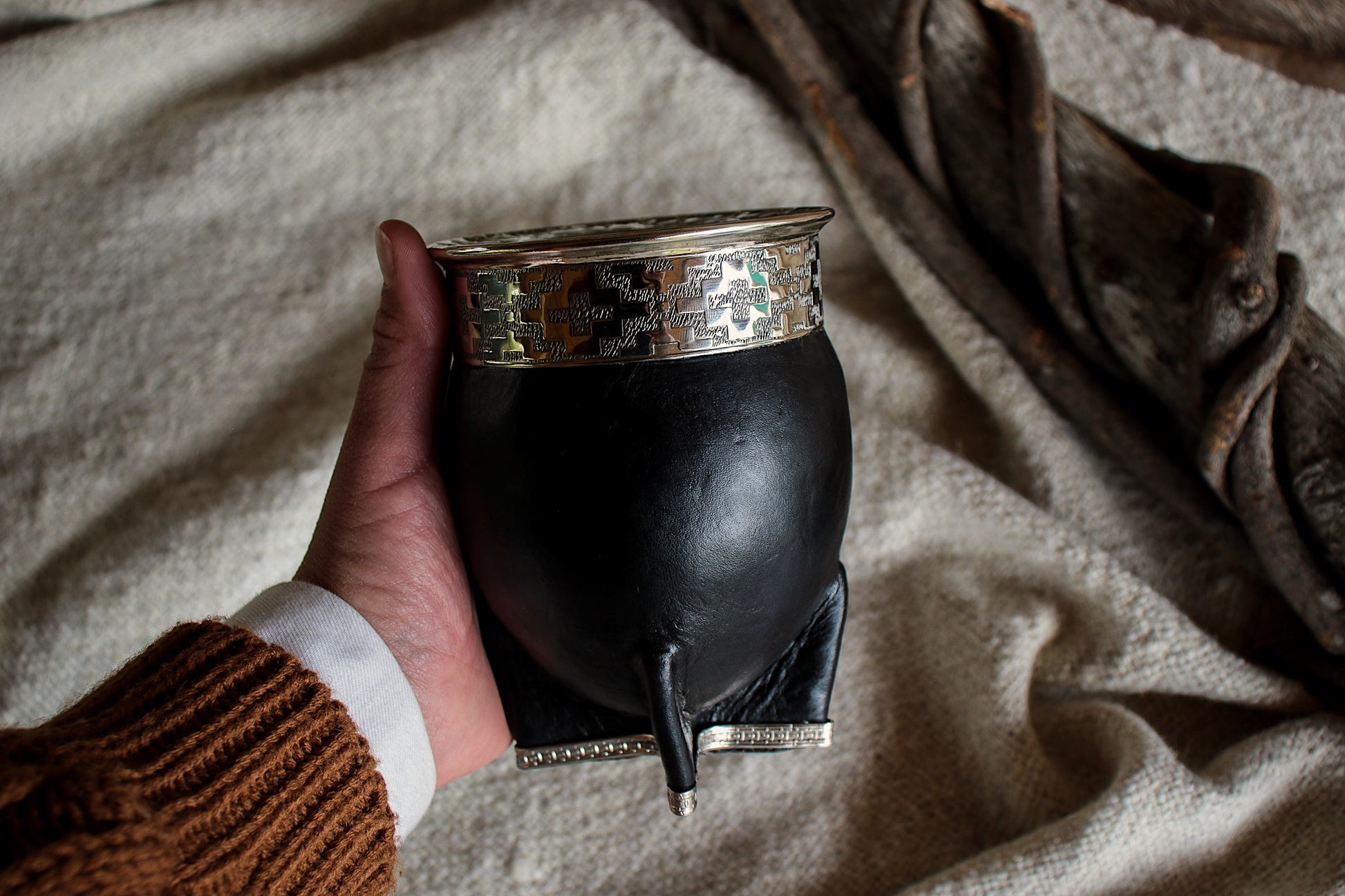 Mate imperial de porongo forrado artesanalmente en cuero natural.