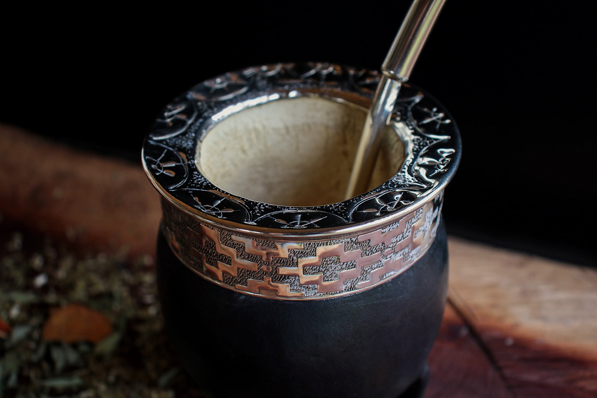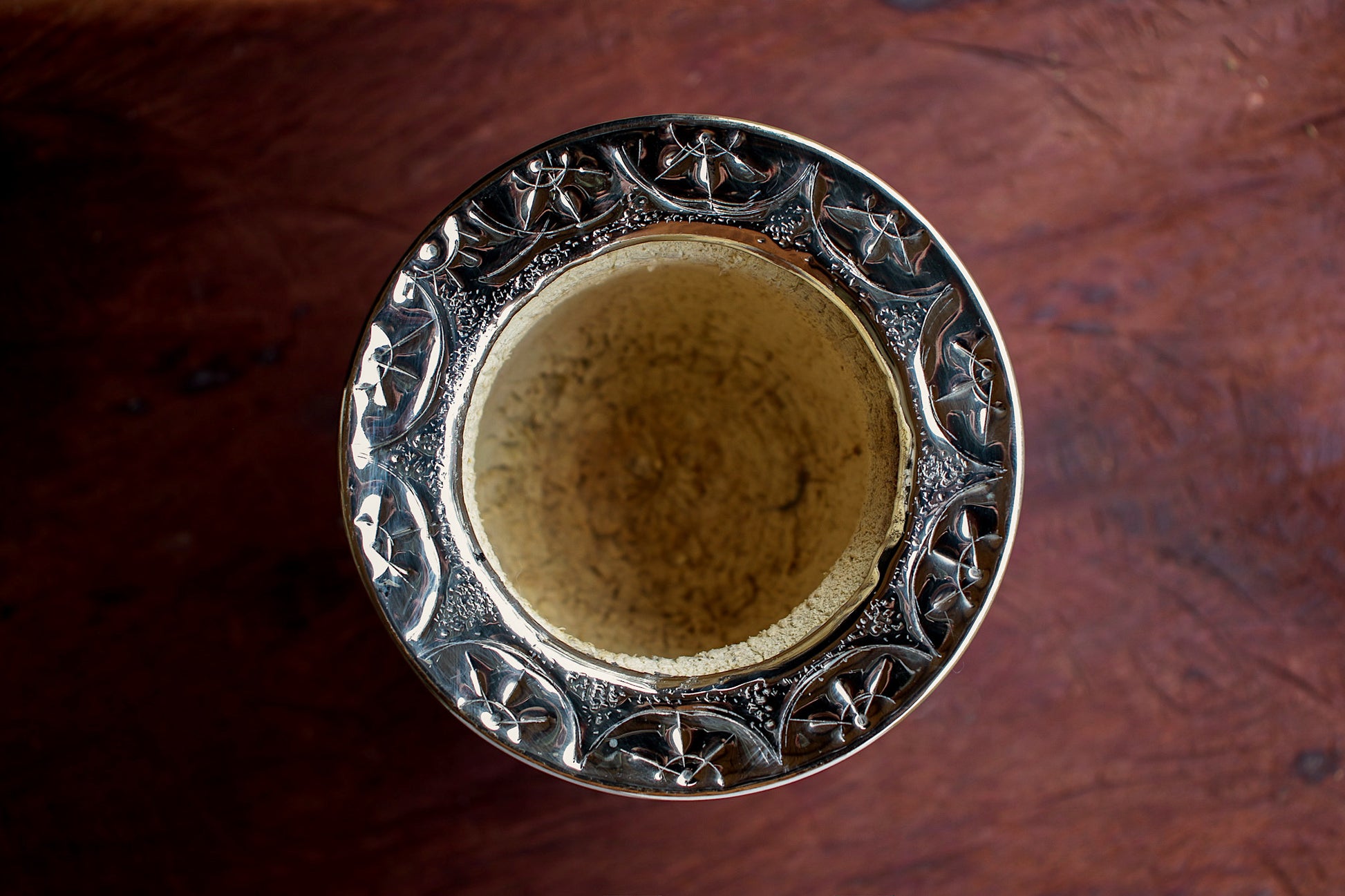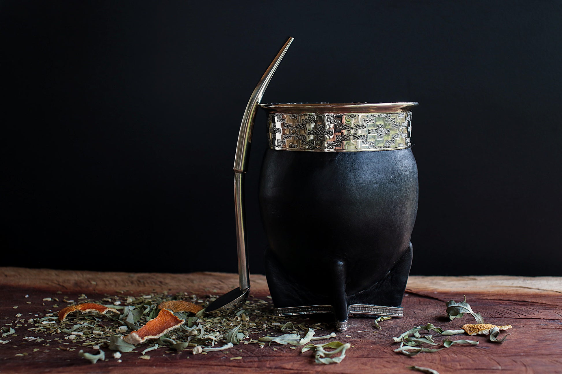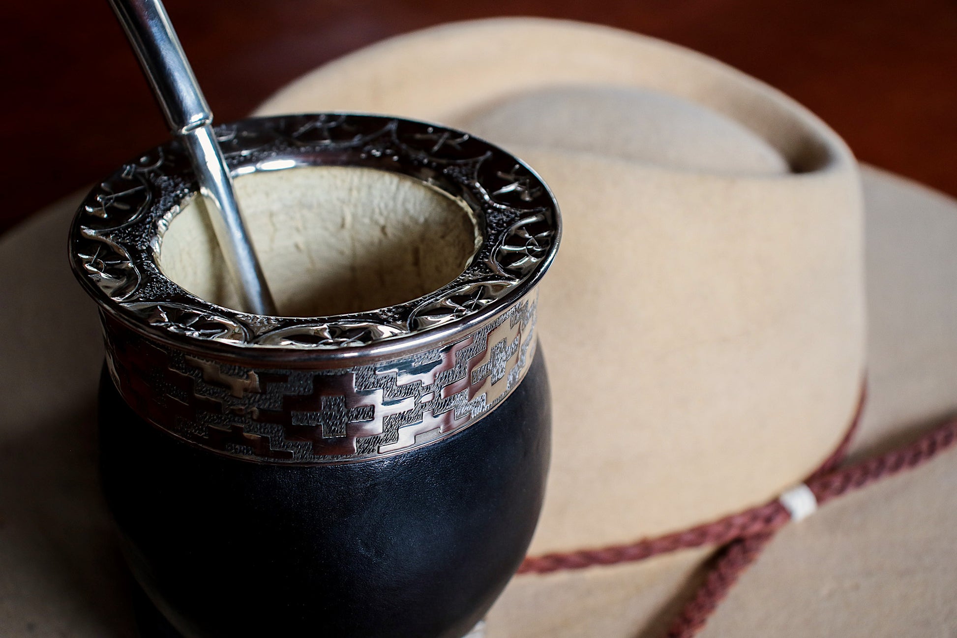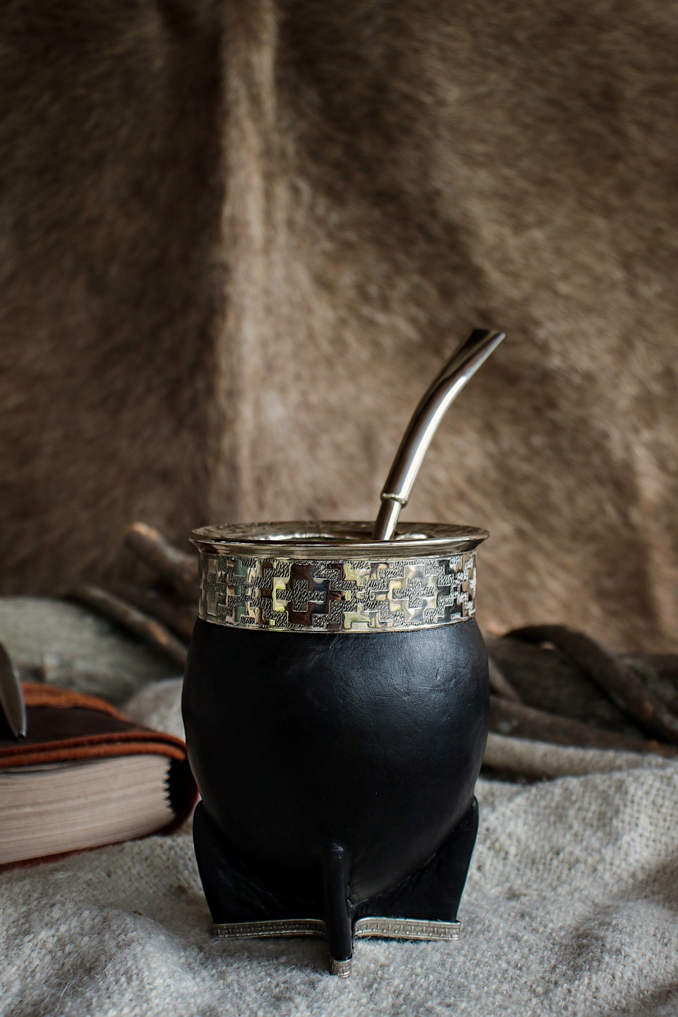 Mate imperial de porongo forrado artesanalmente en cuero natural.