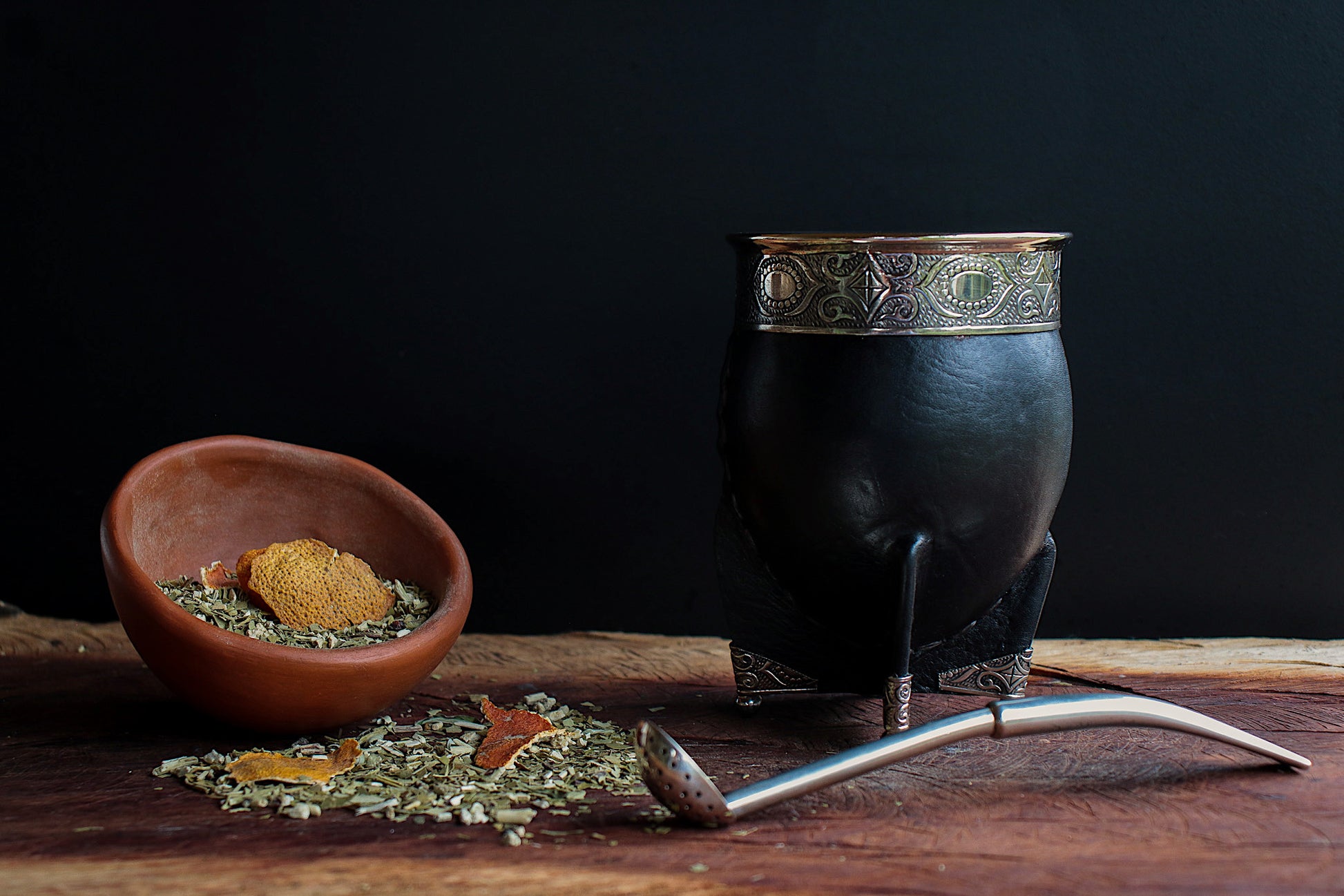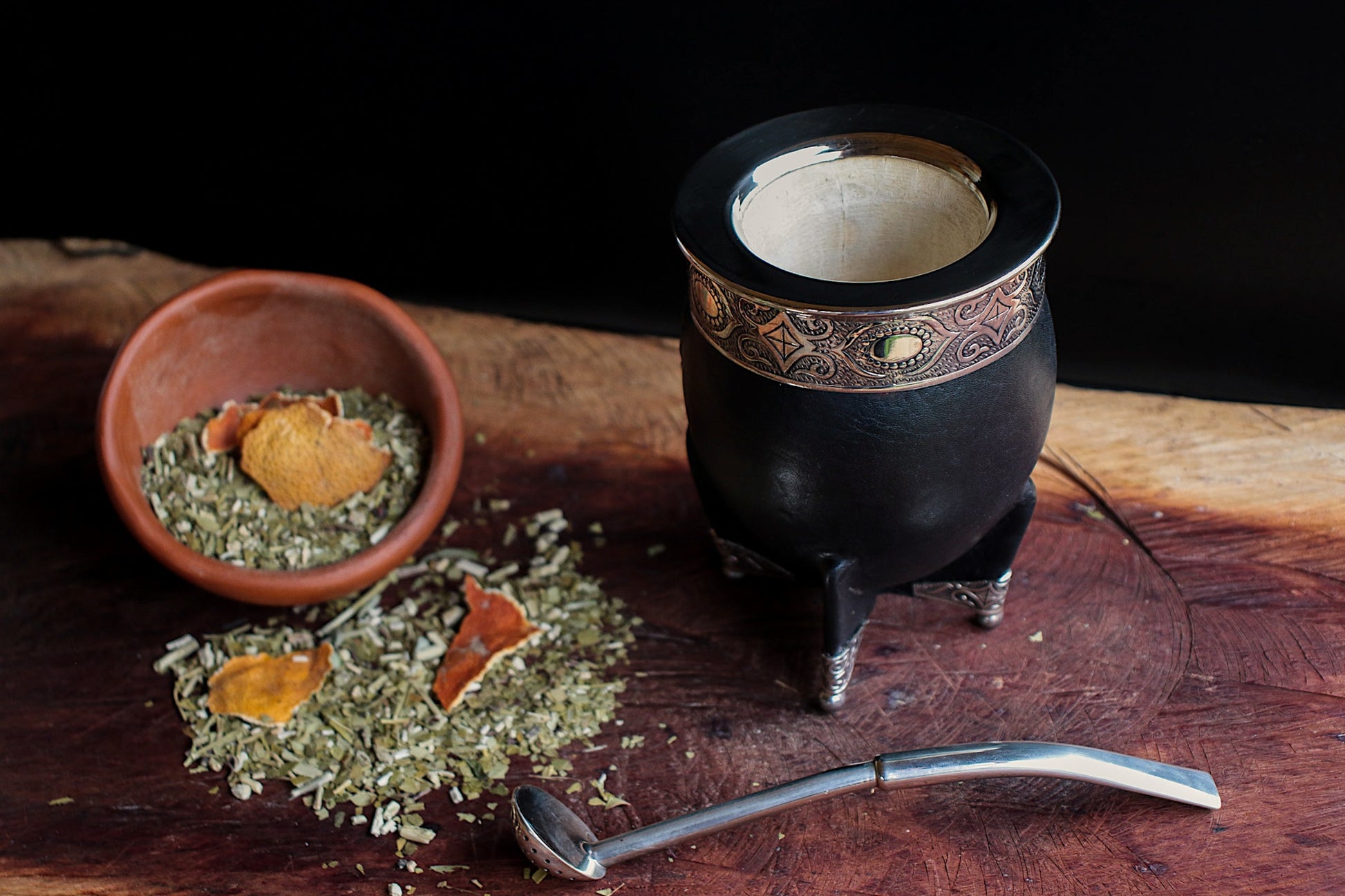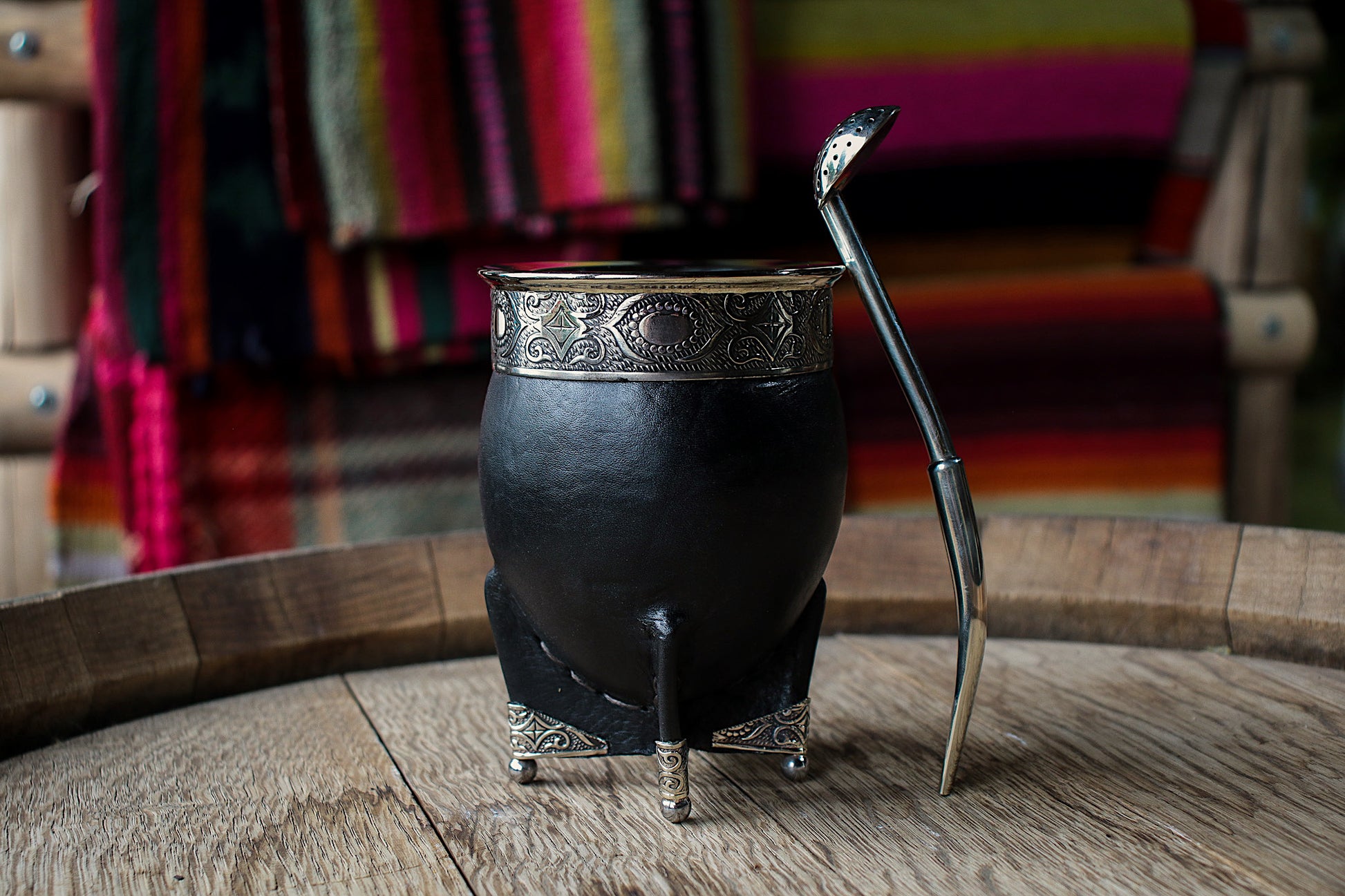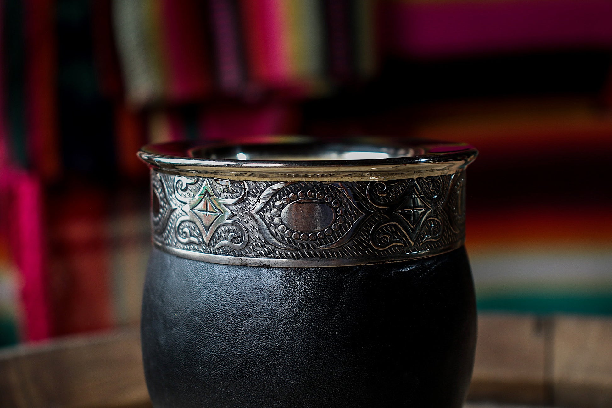 Mate imperial de porongo forrado artesanalmente en cuero natural.