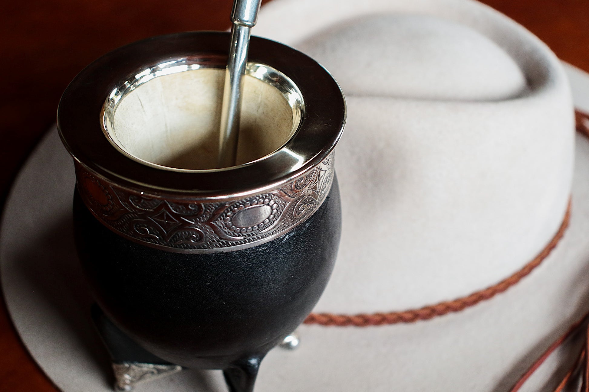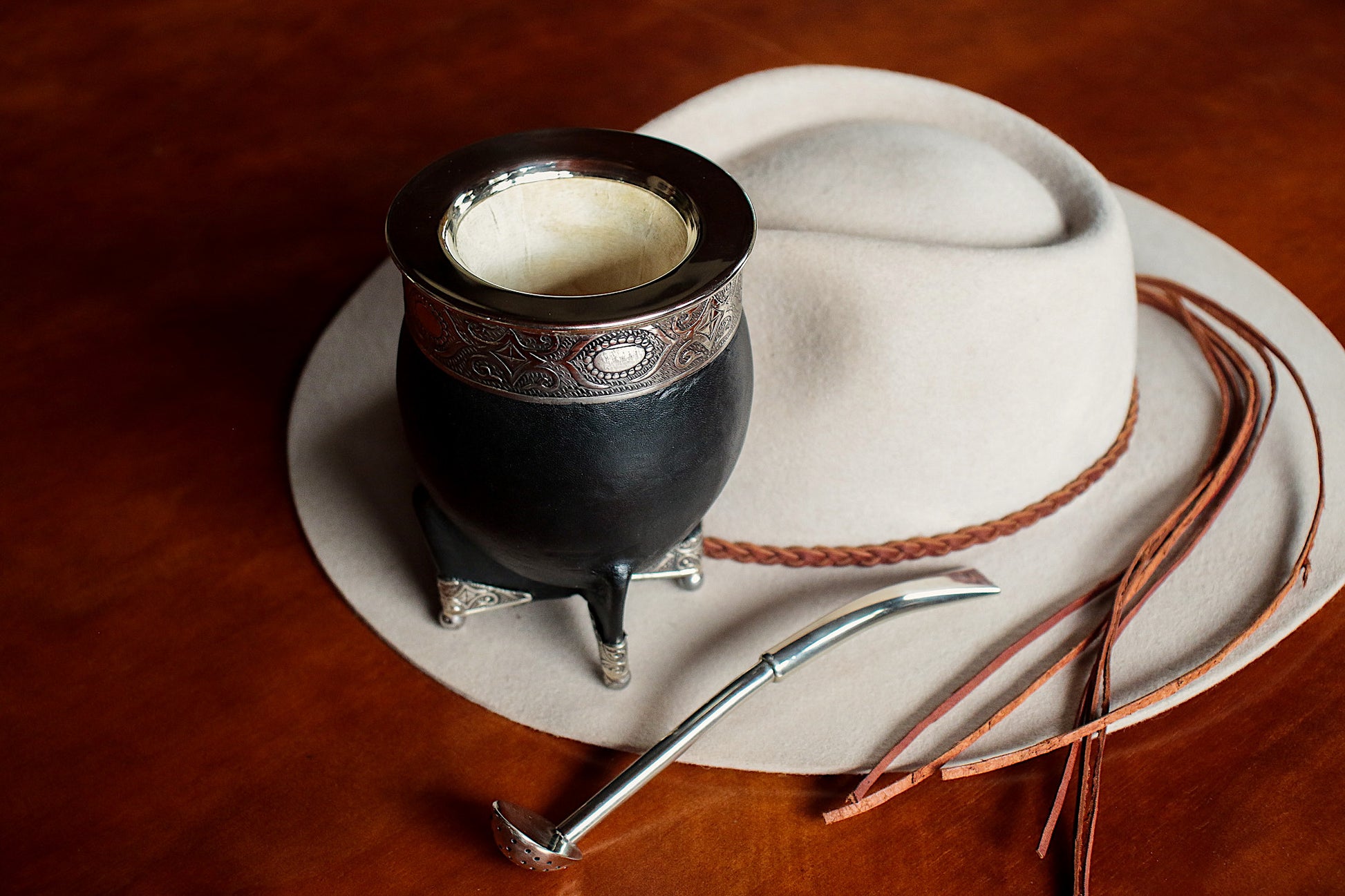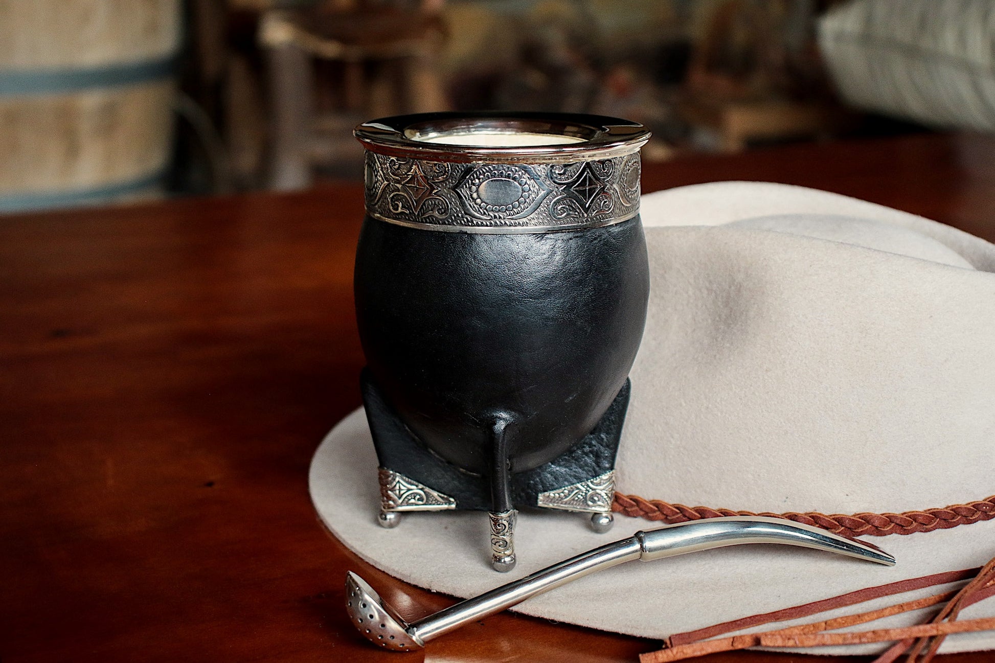 Imperial Cuero y Base de Alpaca con Bombilla