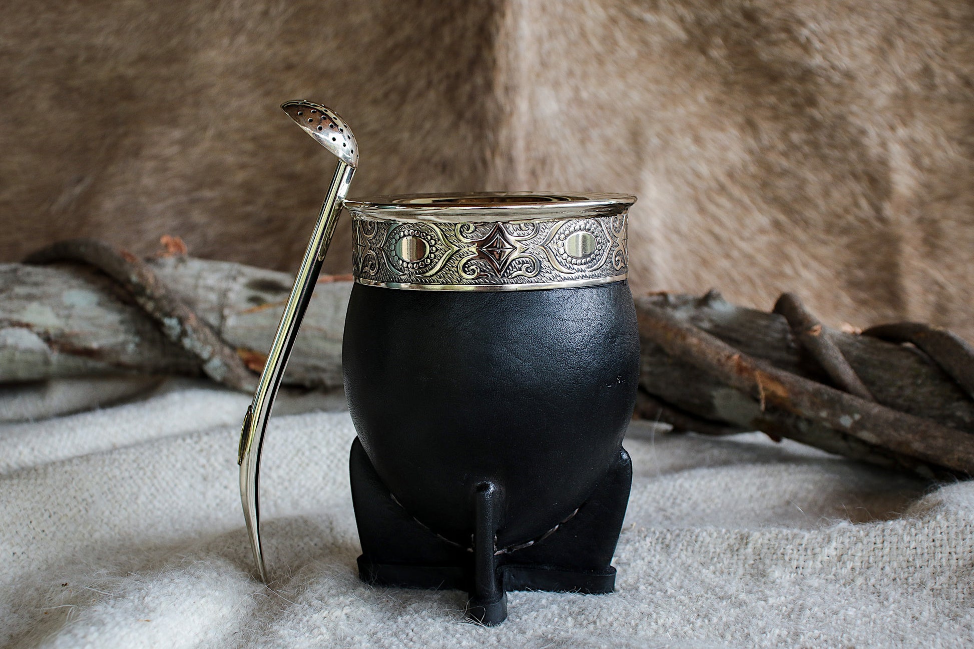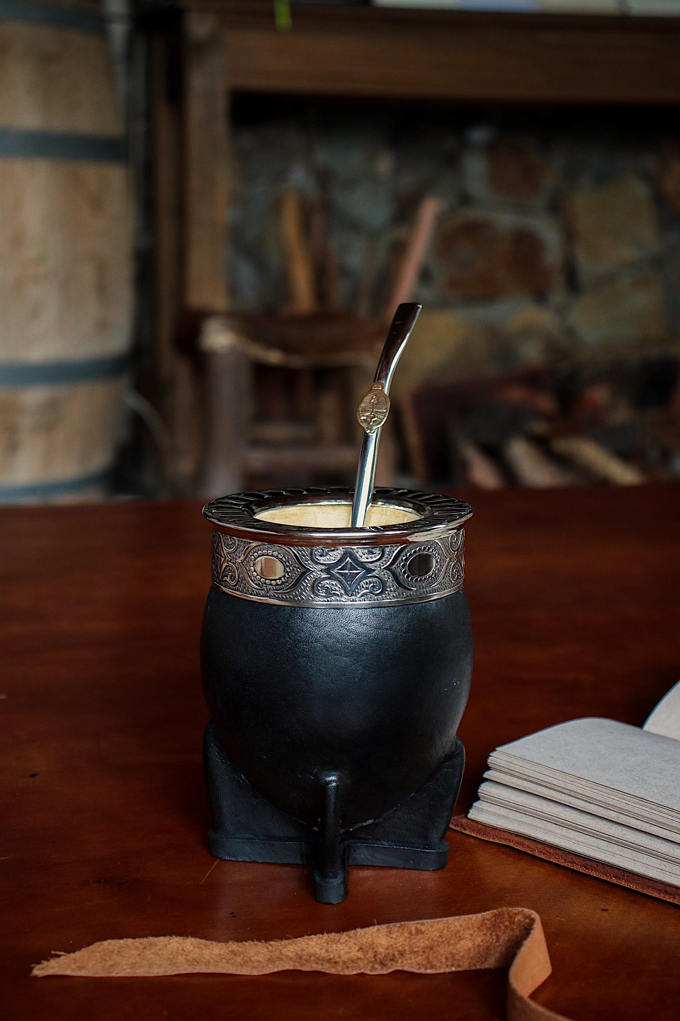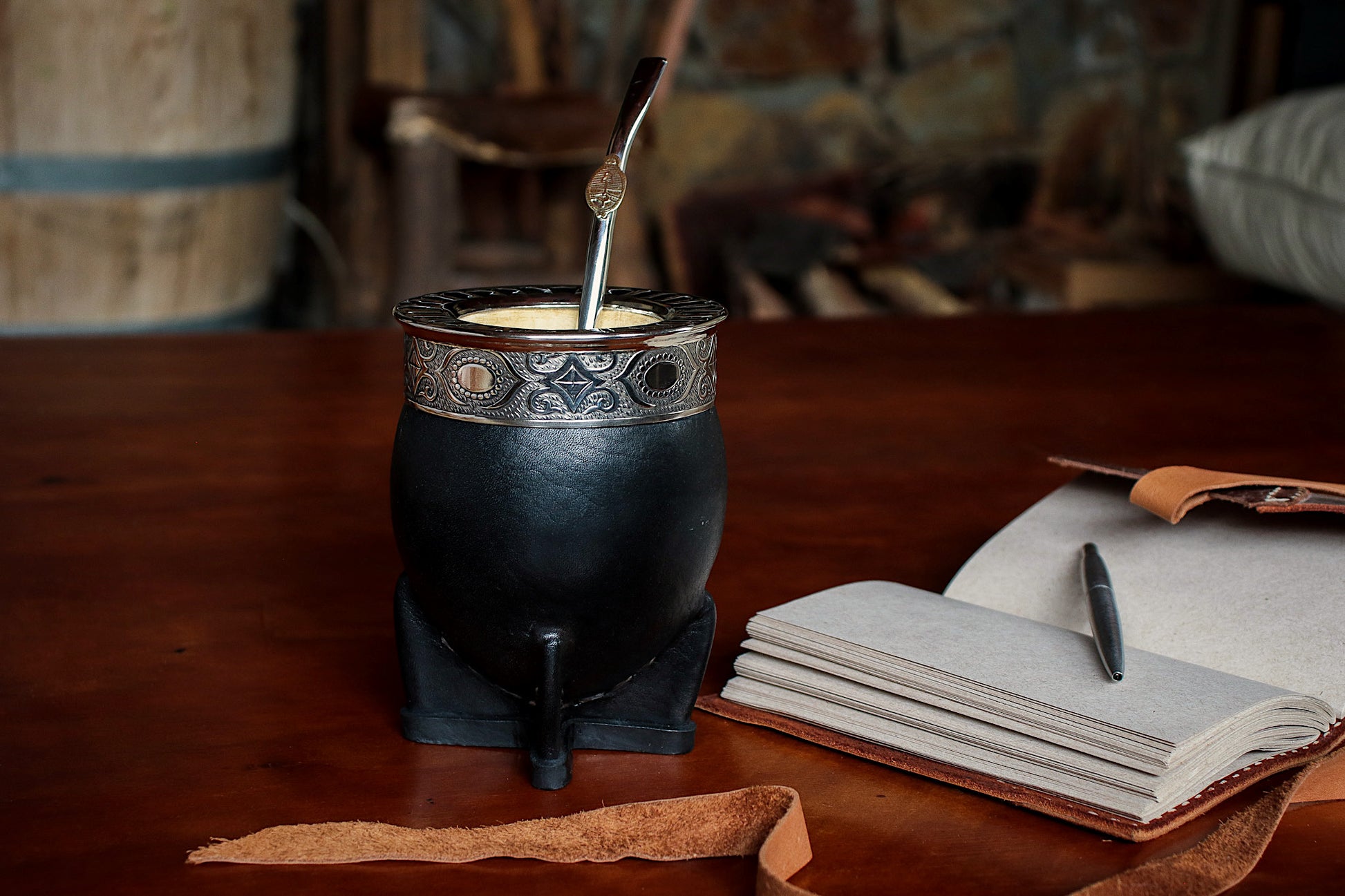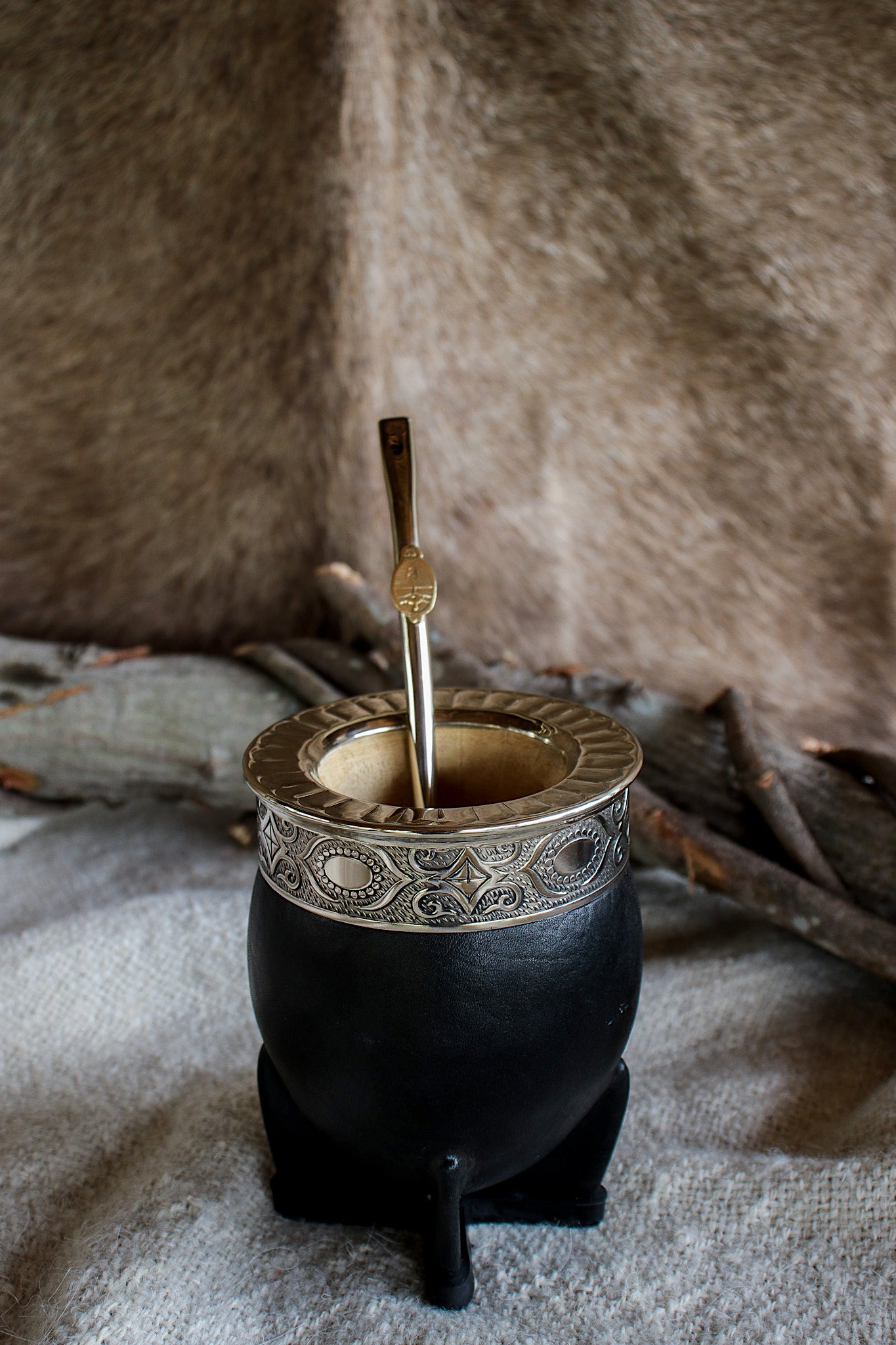 Mate imperial de porongo forrado artesanalmente en cuero natural.