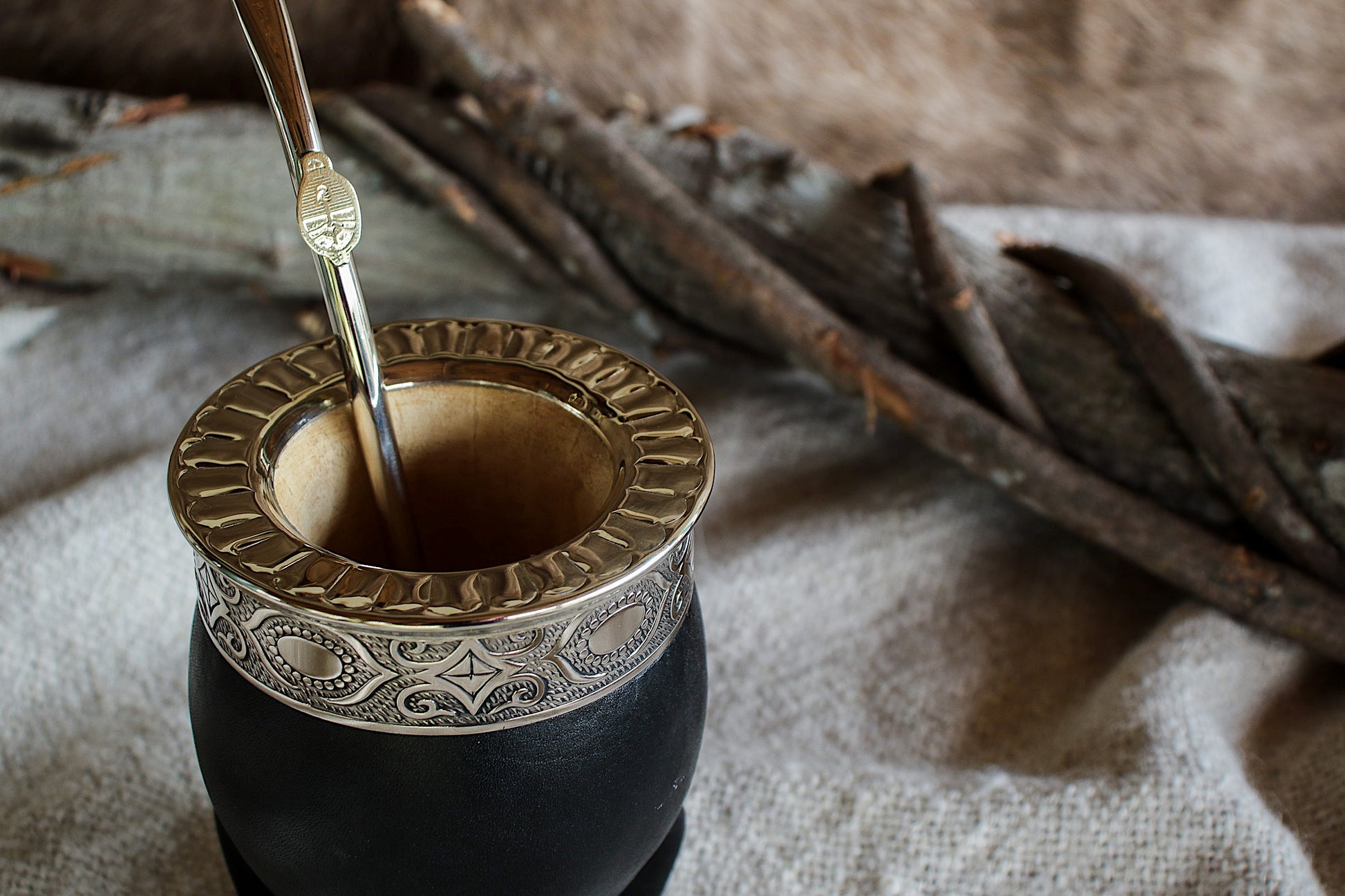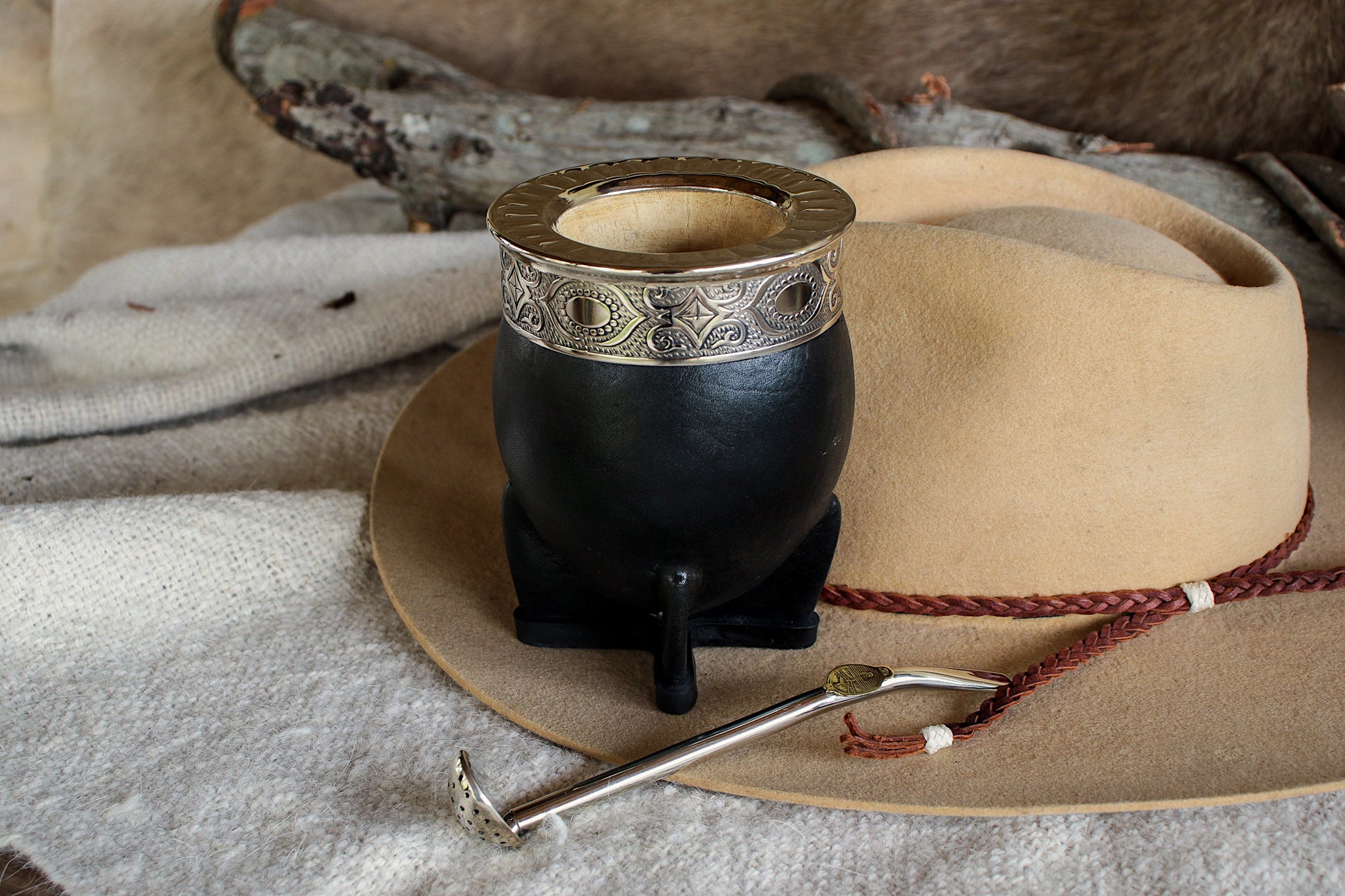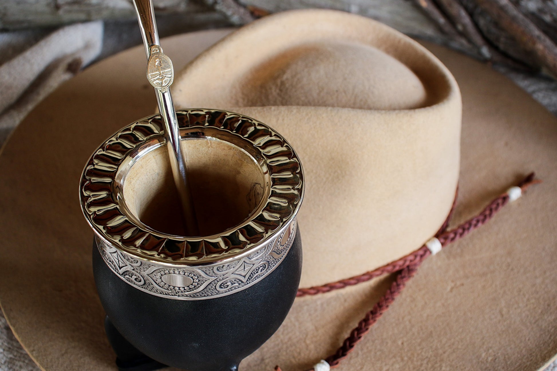 Mate imperial de porongo forrado artesanalmente en cuero natural.