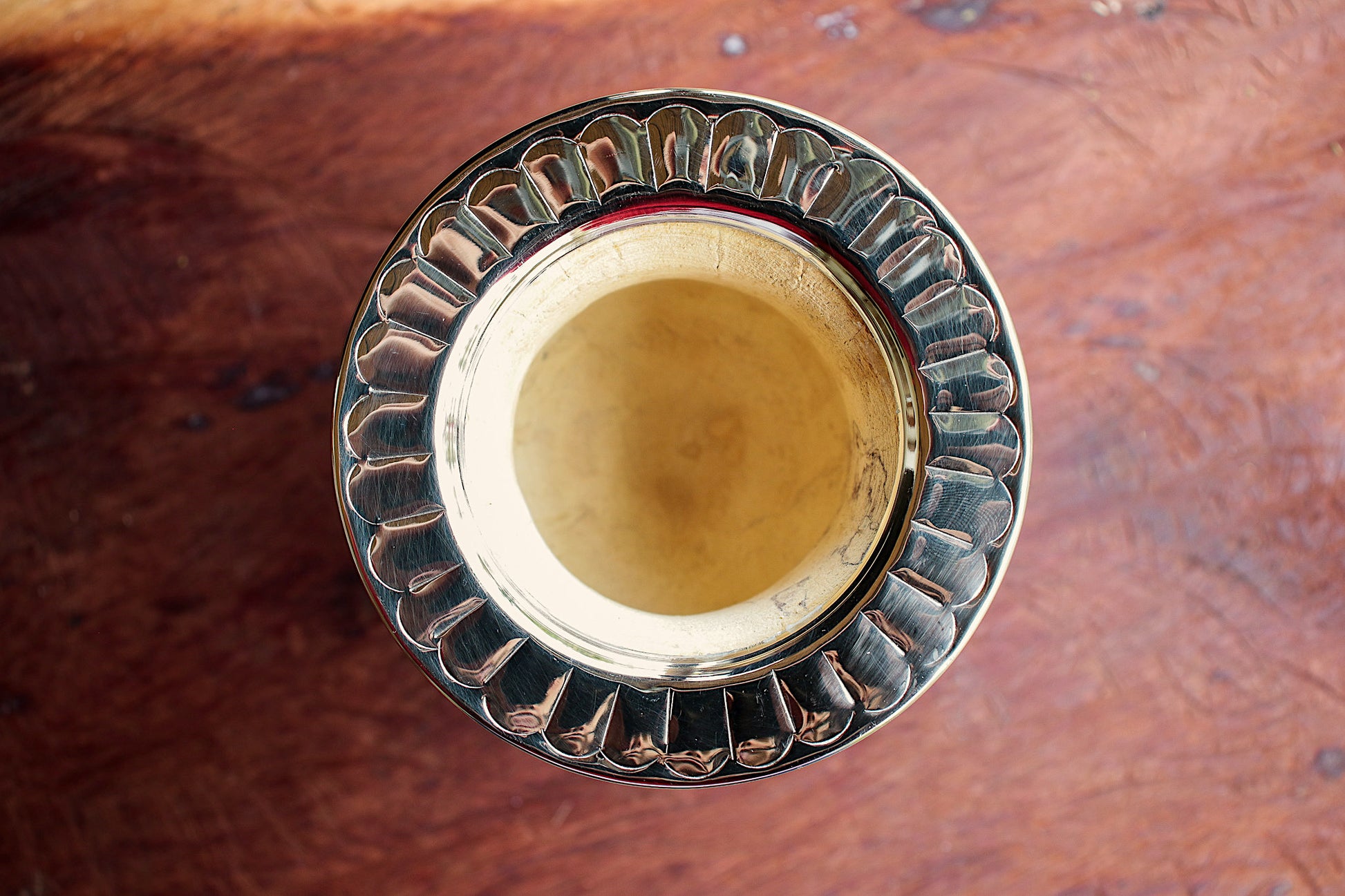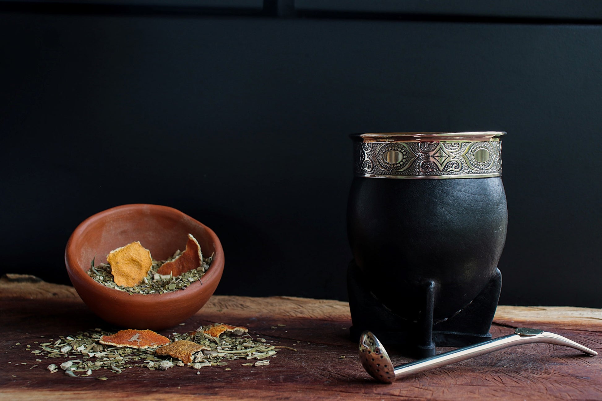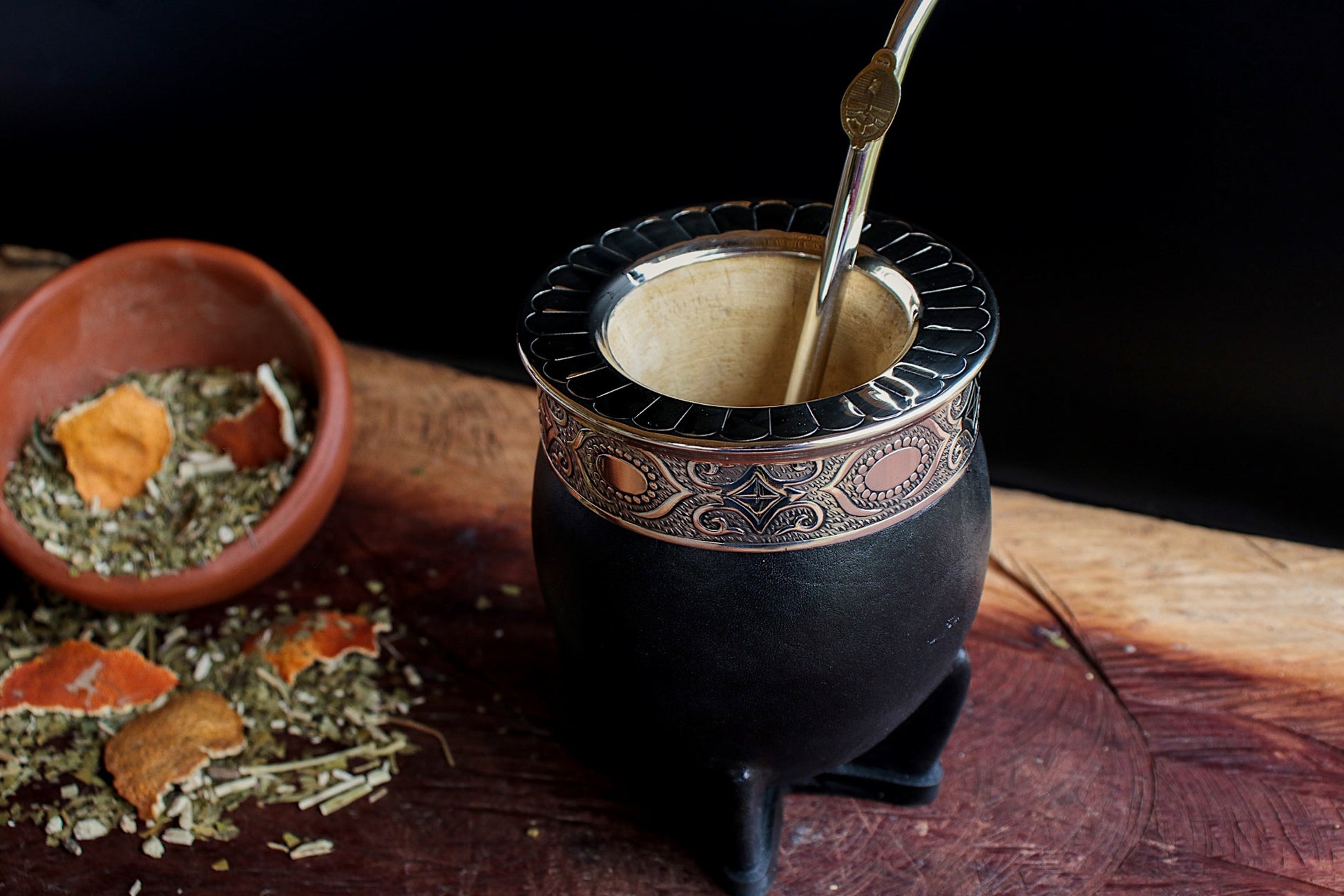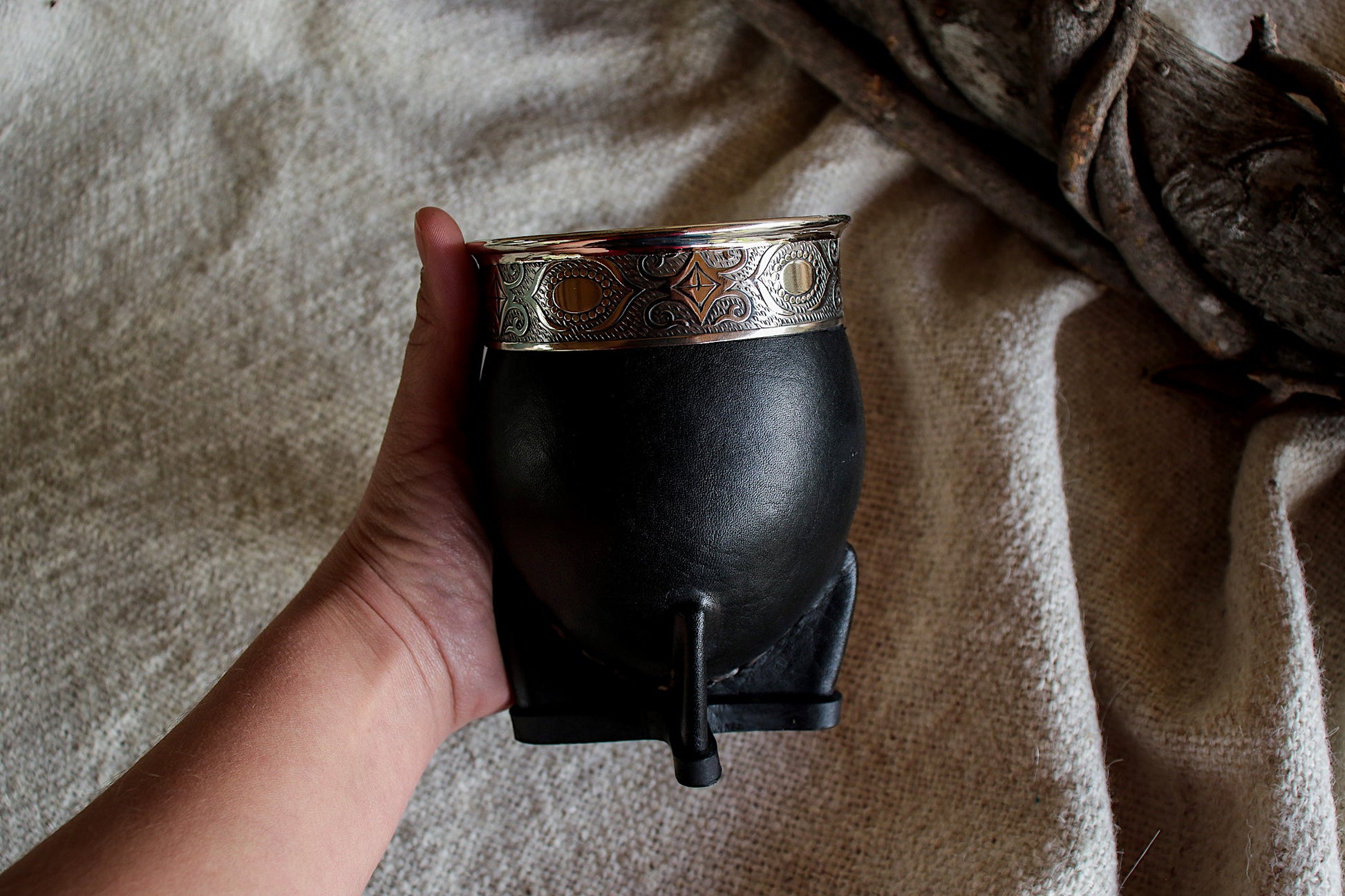 Mate imperial de porongo forrado artesanalmente en cuero natural.