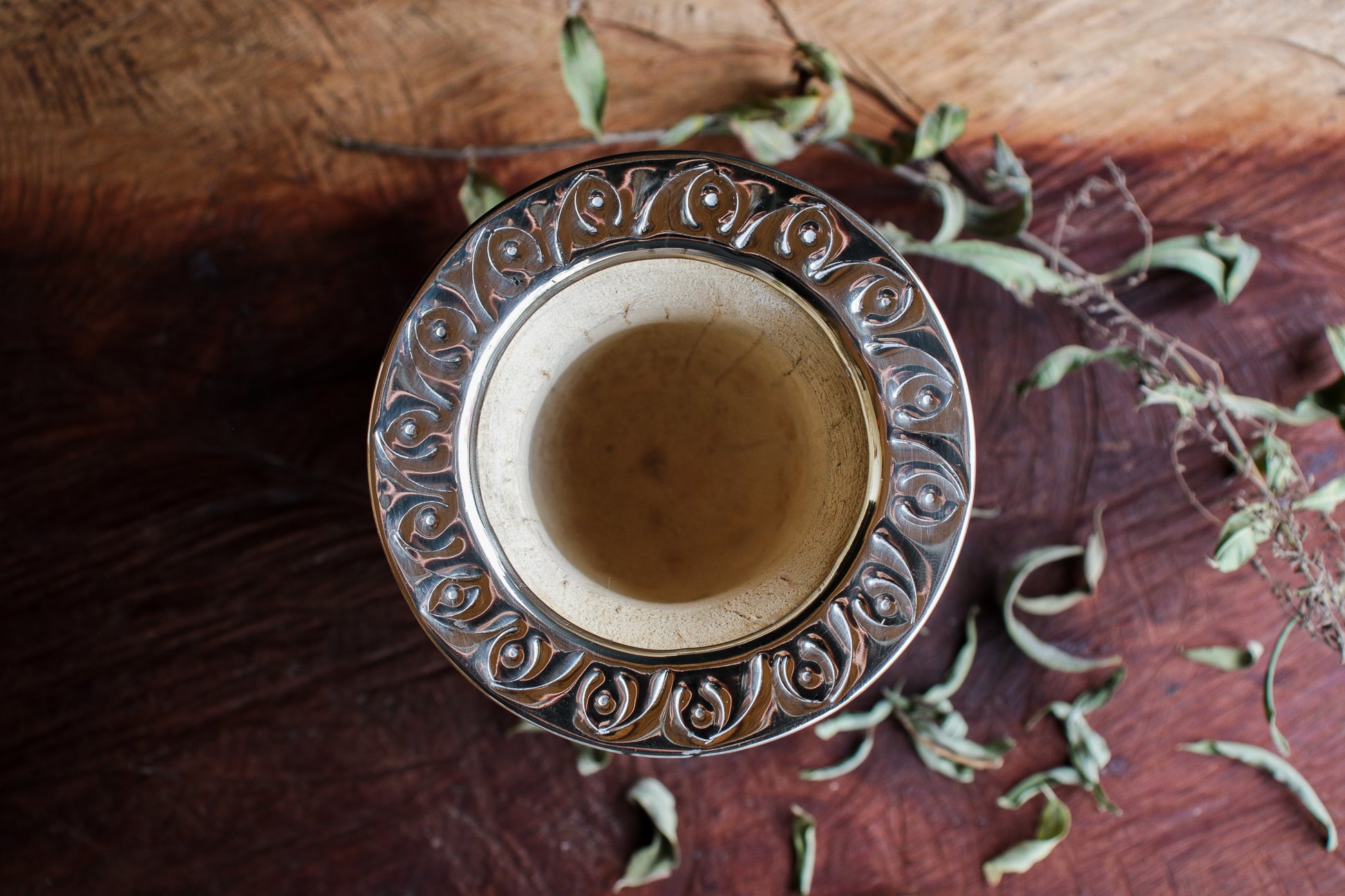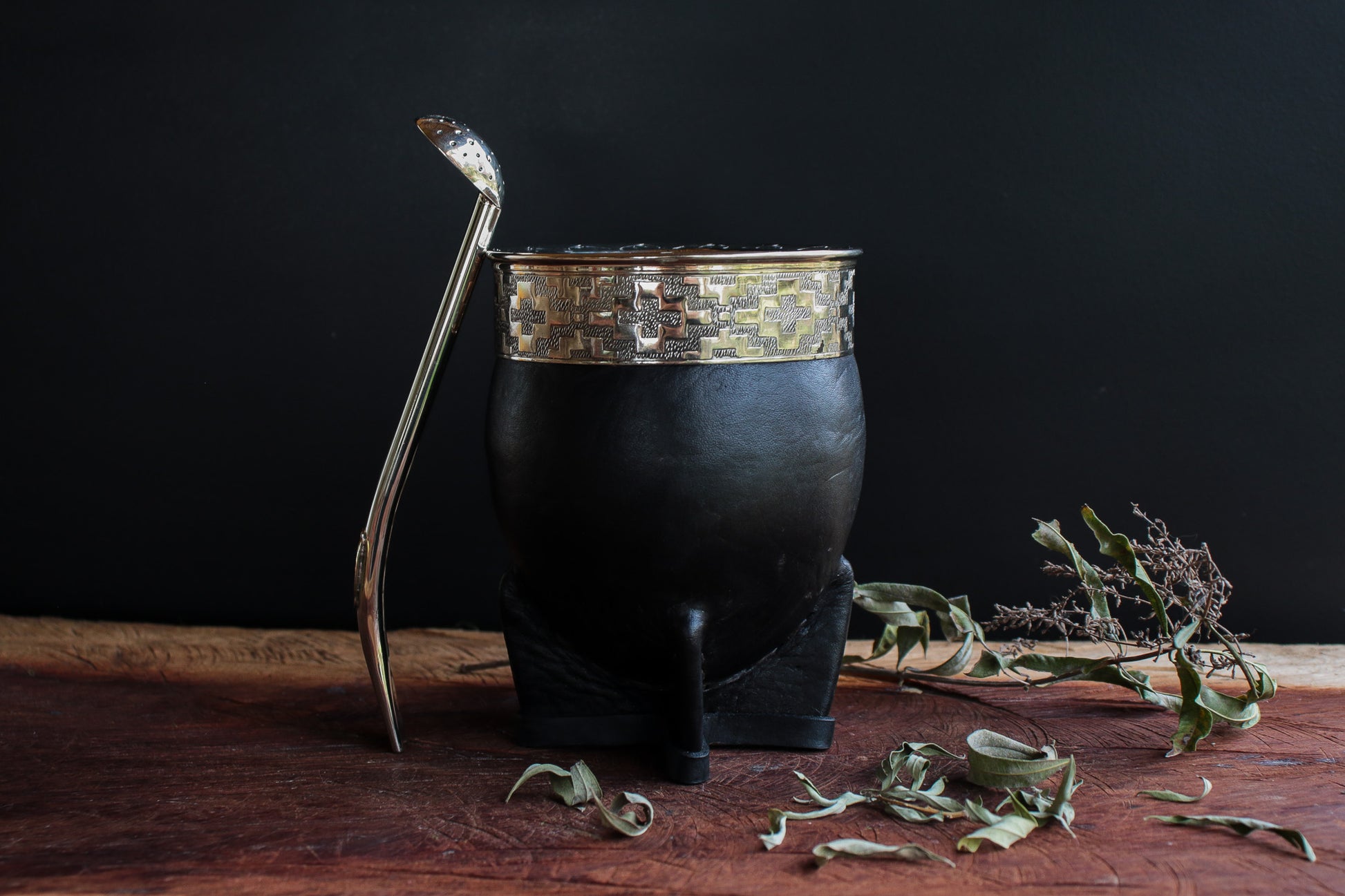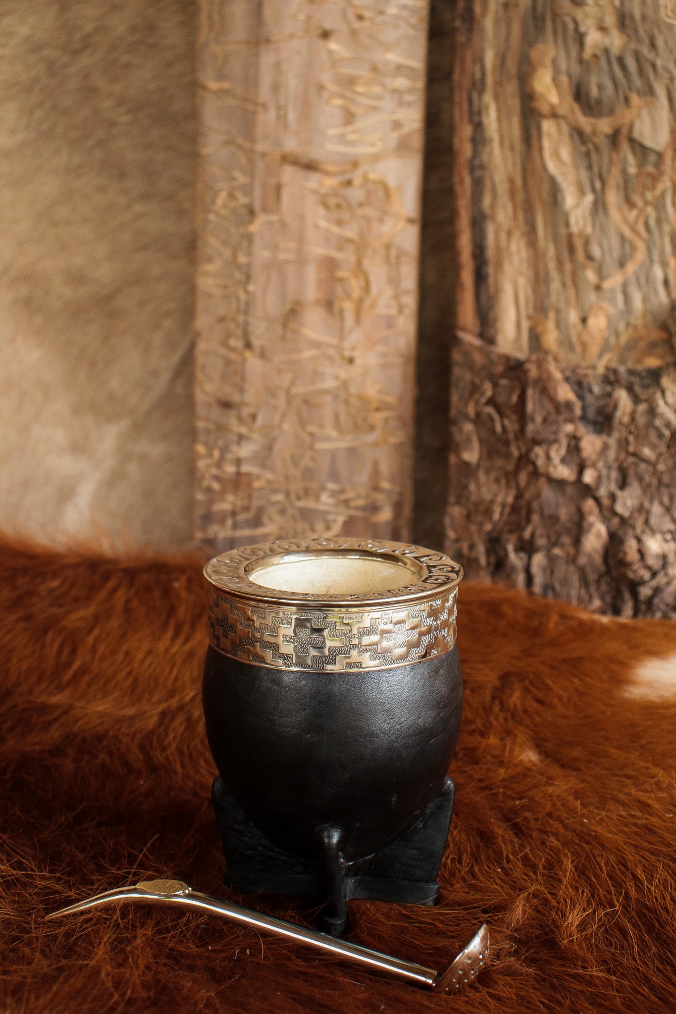 Mate imperial de porongo forrado artesanalmente en cuero natural.