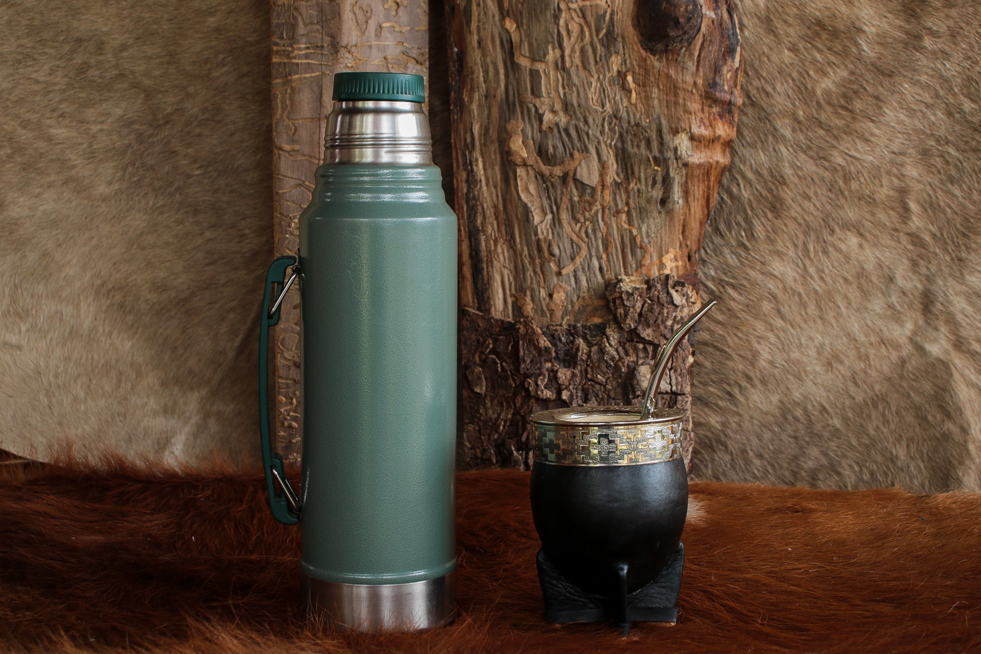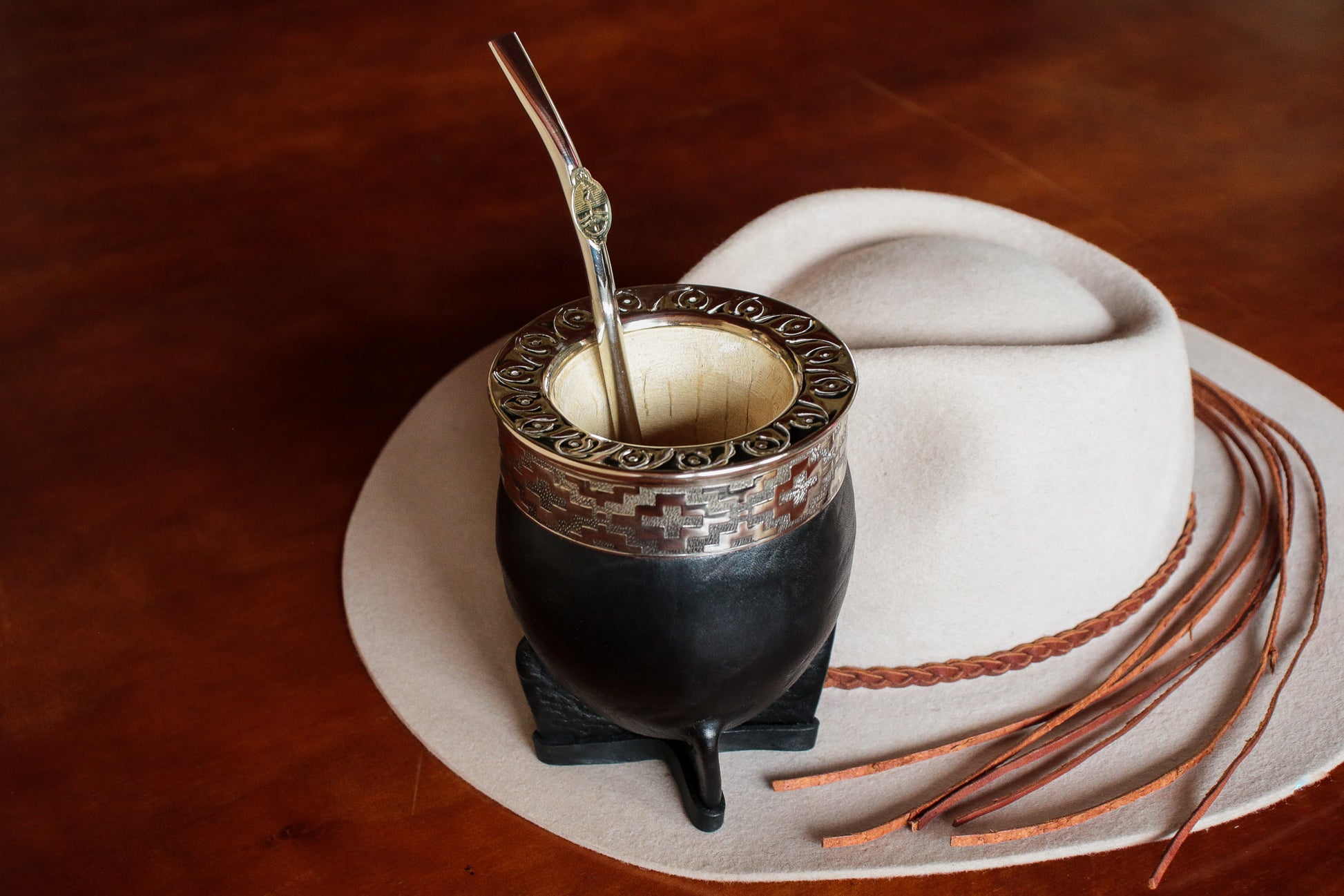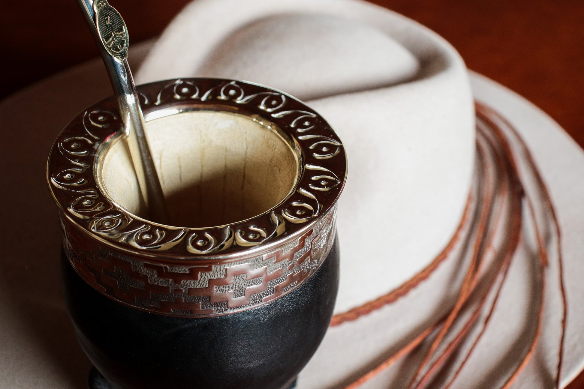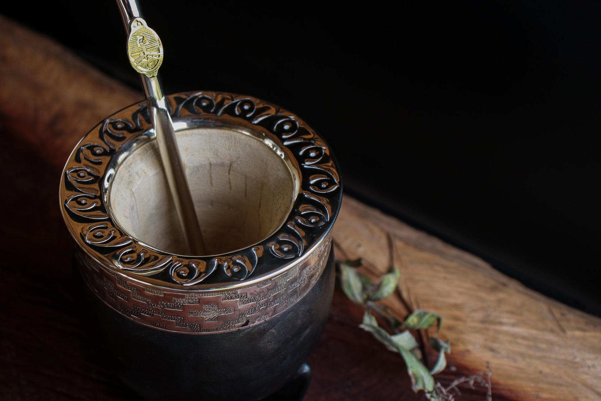 Mate imperial de porongo forrado artesanalmente en cuero natural.