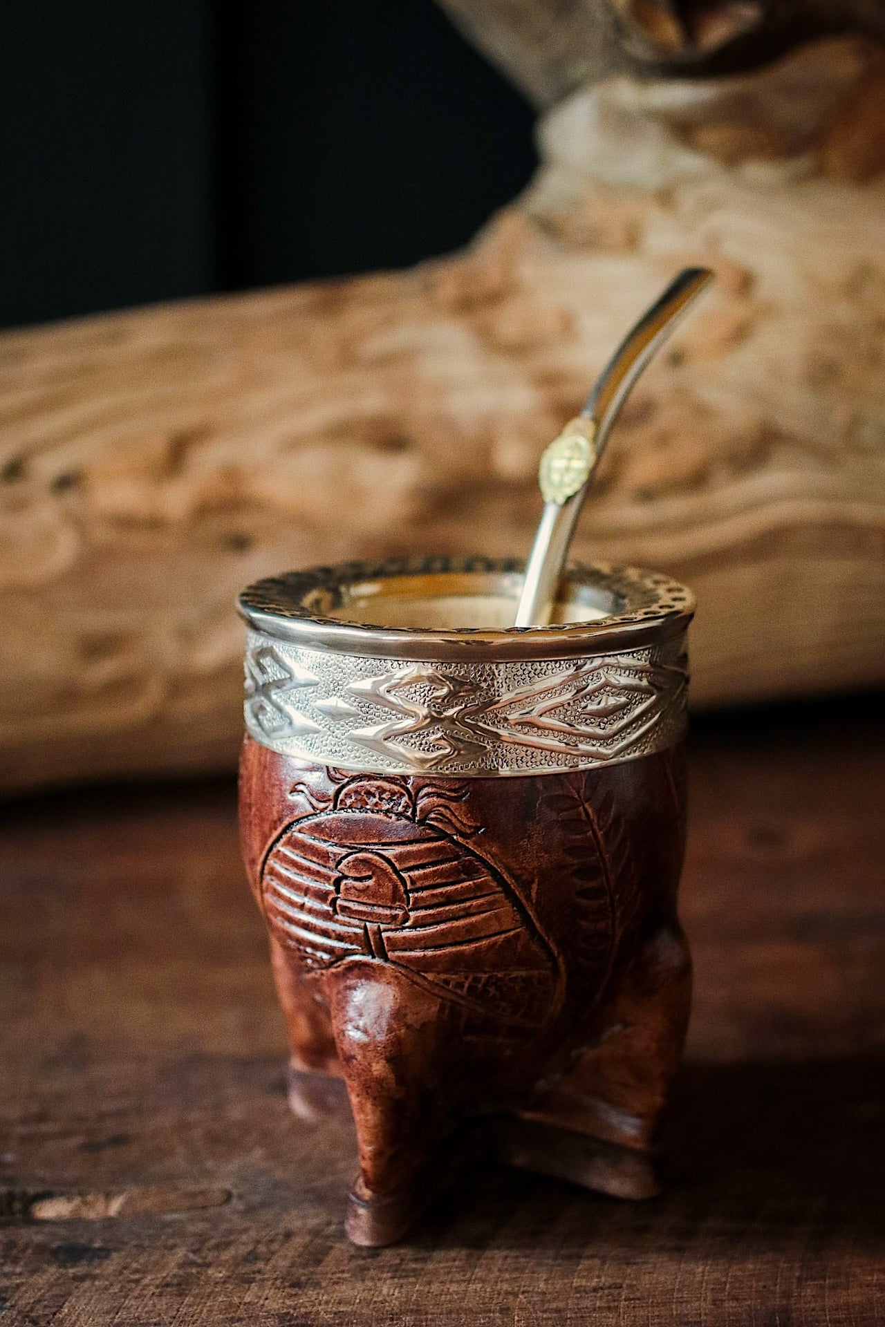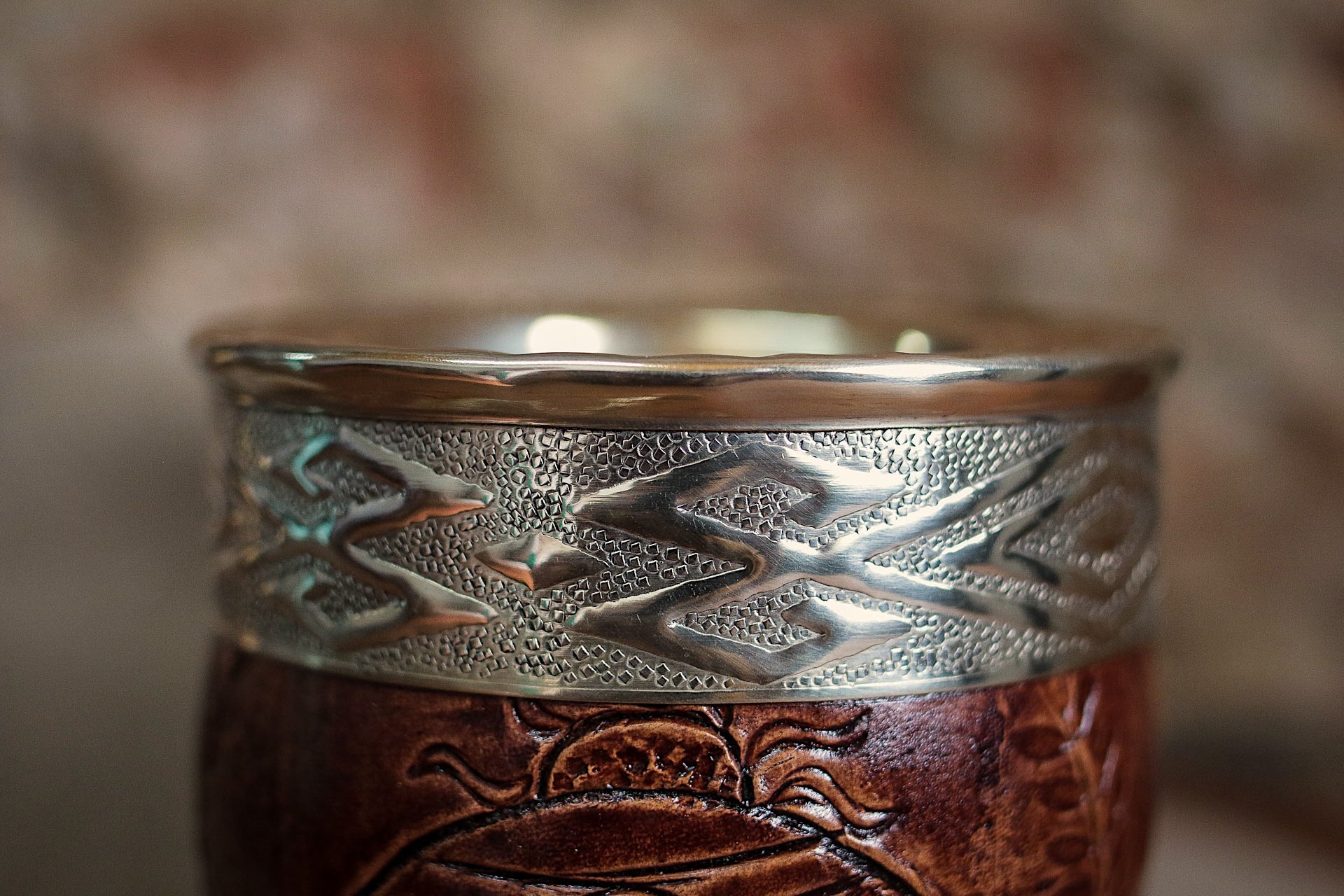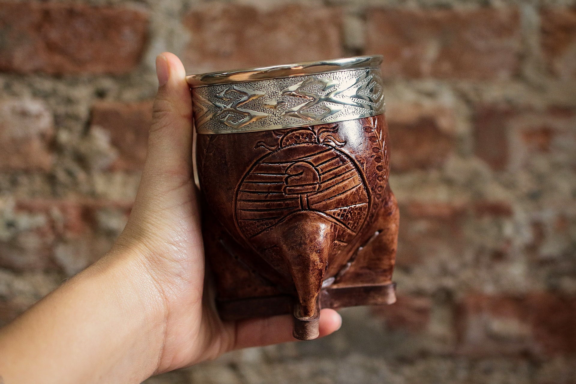 Mate imperial de porongo forrado artesanalmente en cuero natural