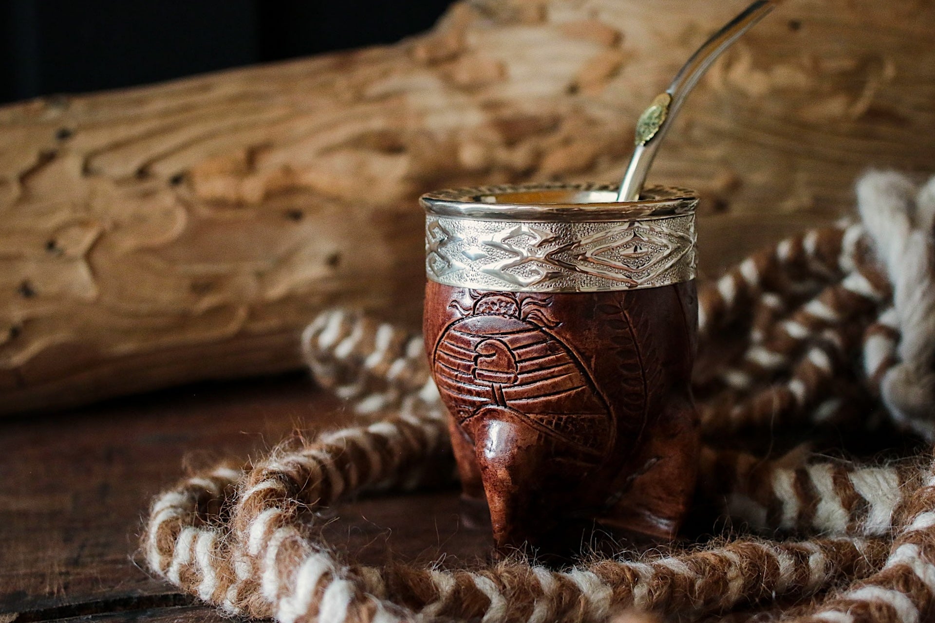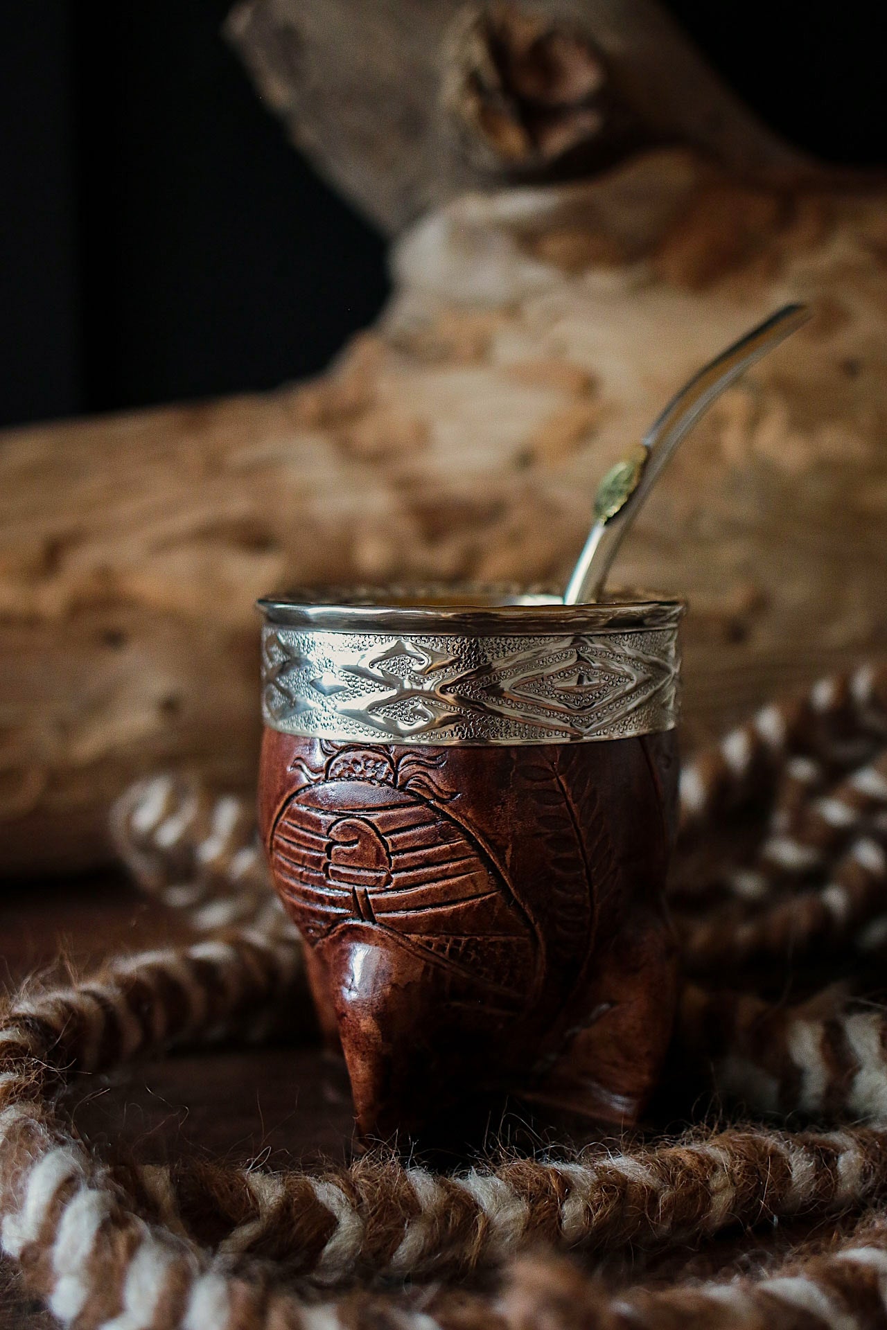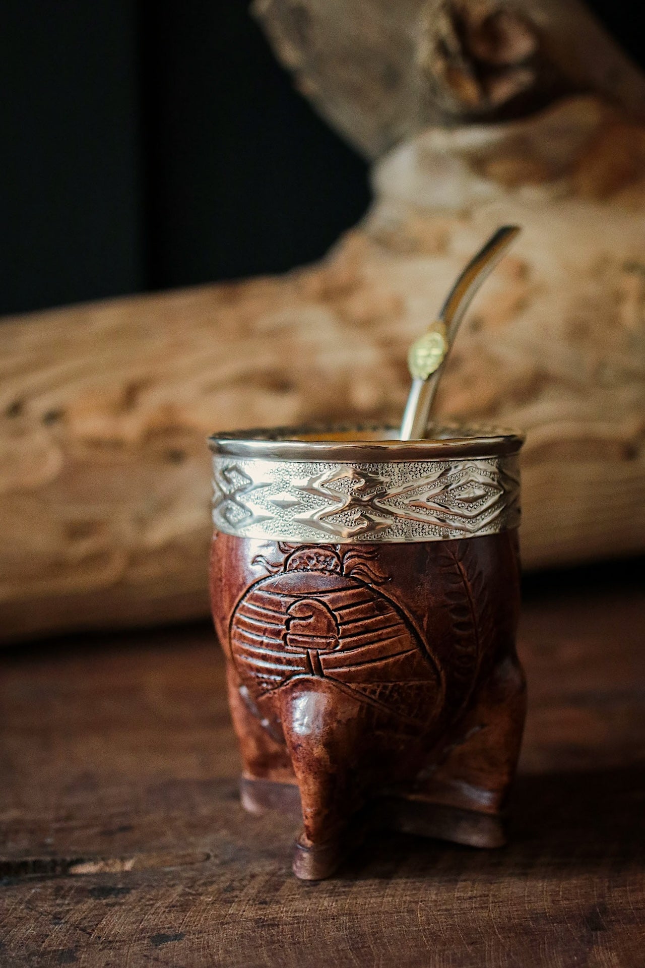 Mate imperial de porongo forrado artesanalmente en cuero natural