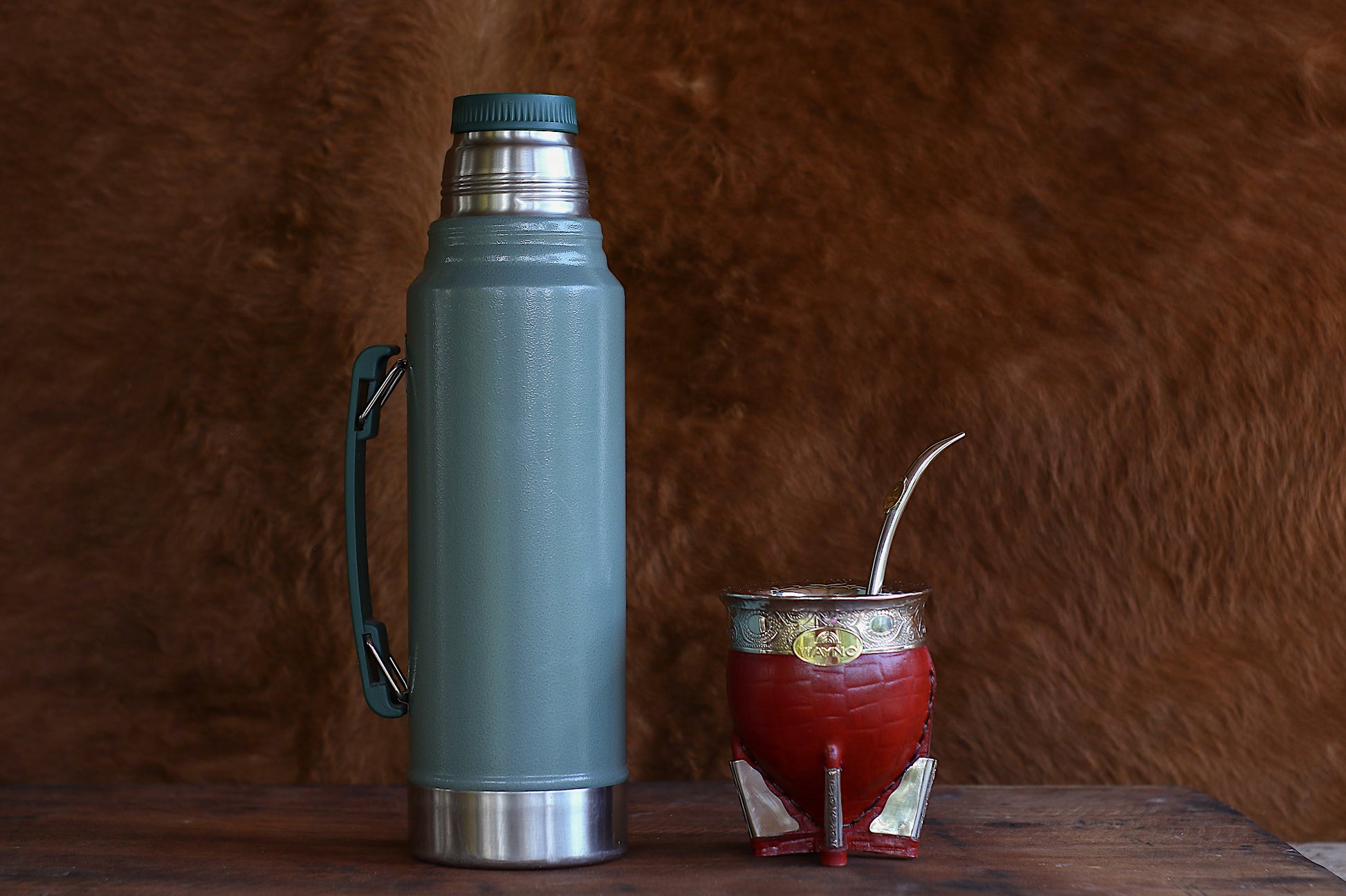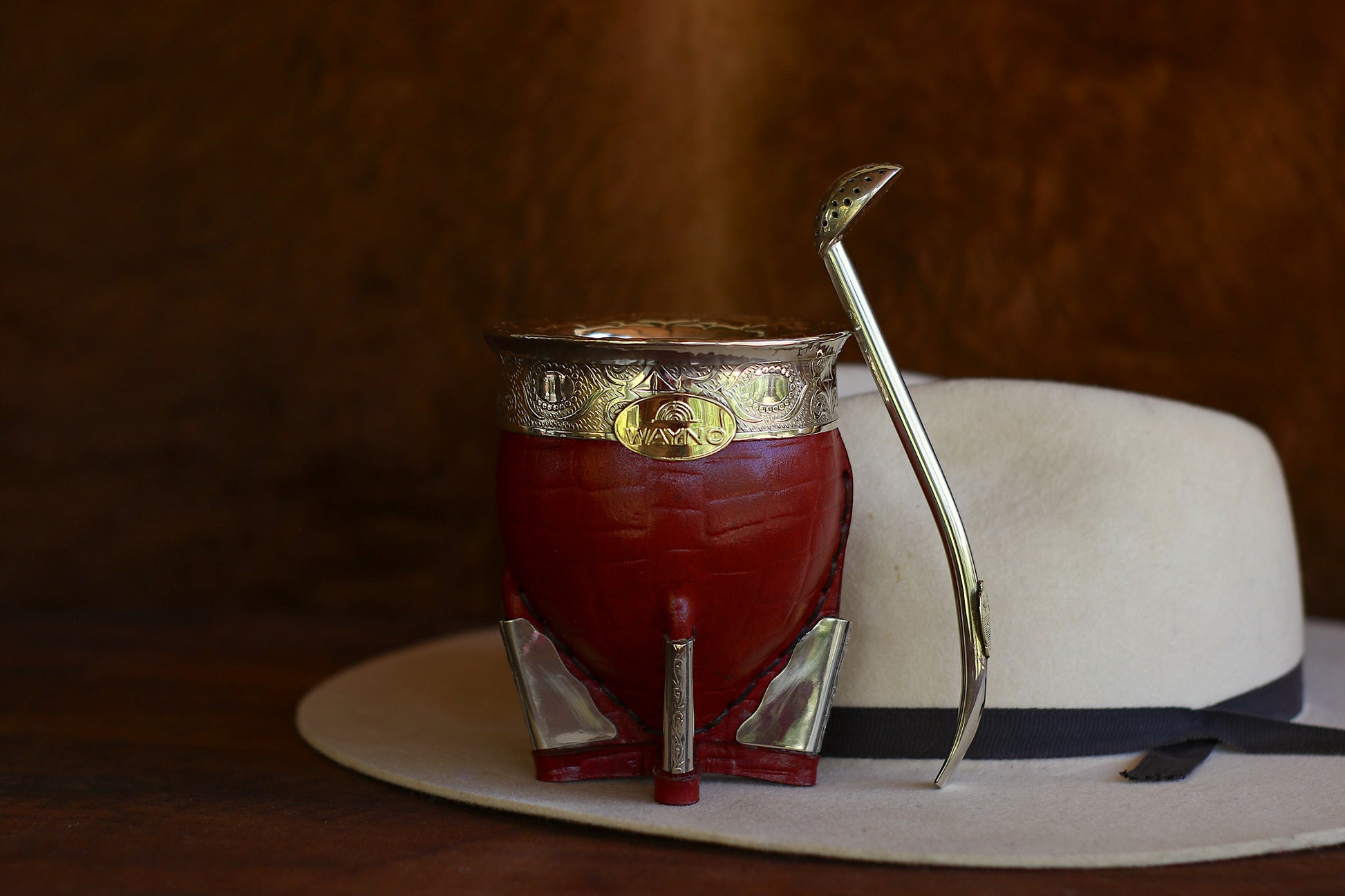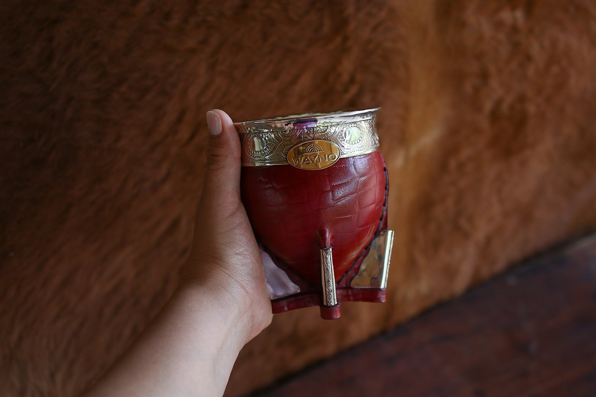 Mate imperial de porongo forrado artesanalmente en cuero natural.