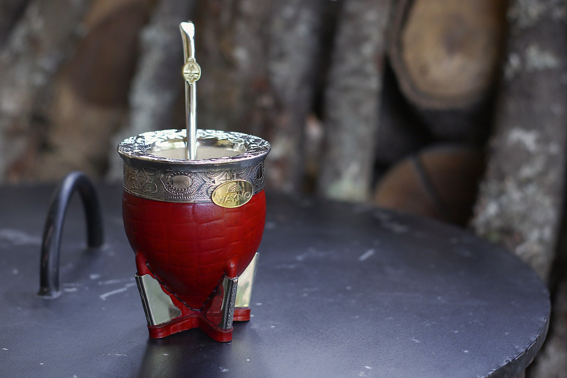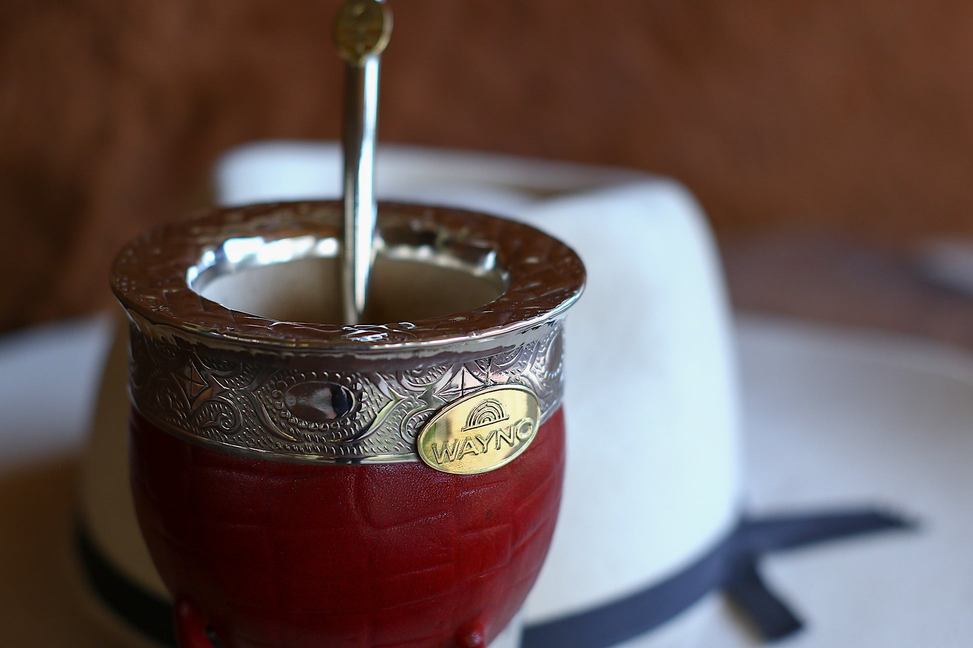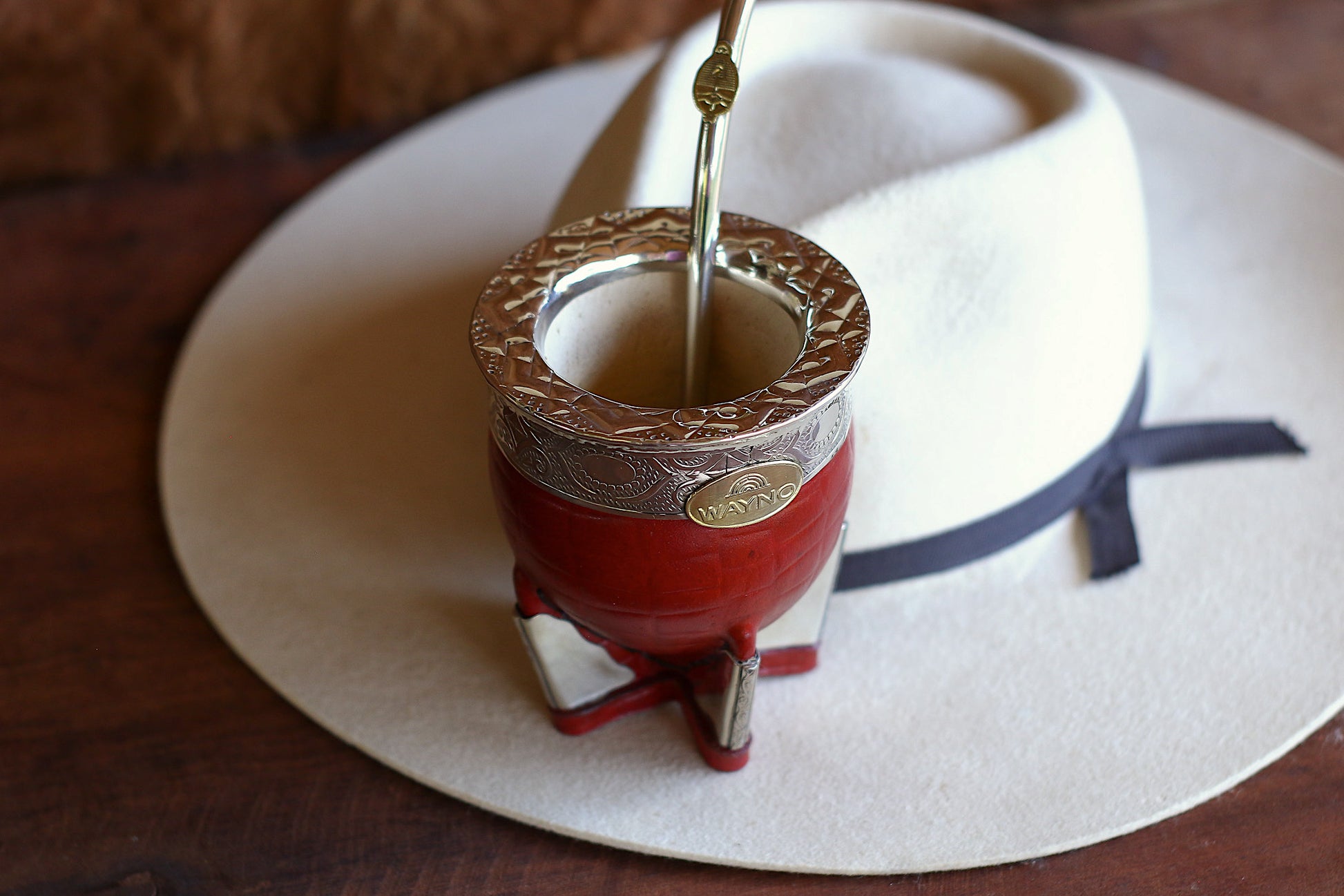 Mate imperial de porongo forrado artesanalmente en cuero natural.