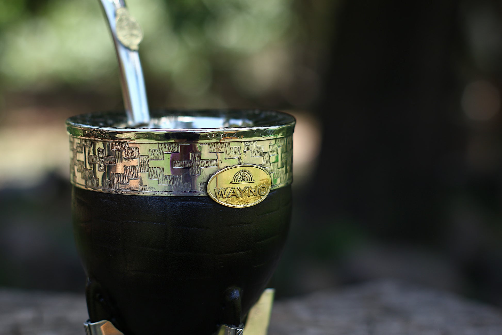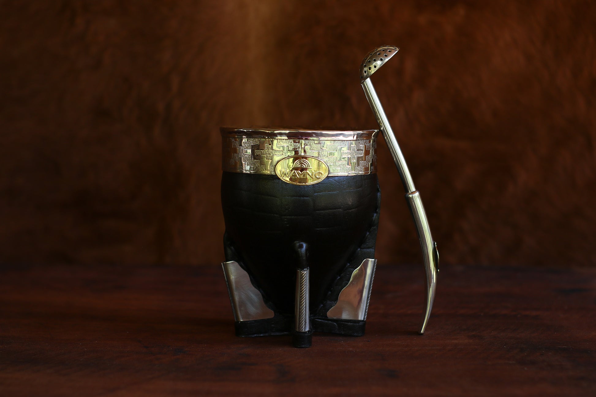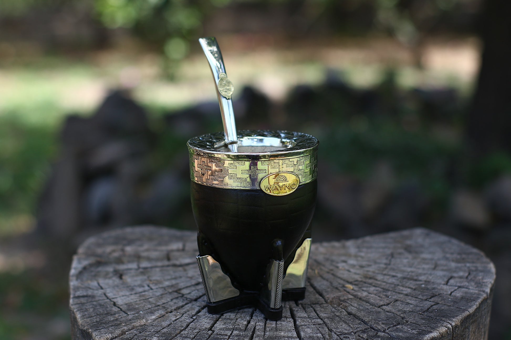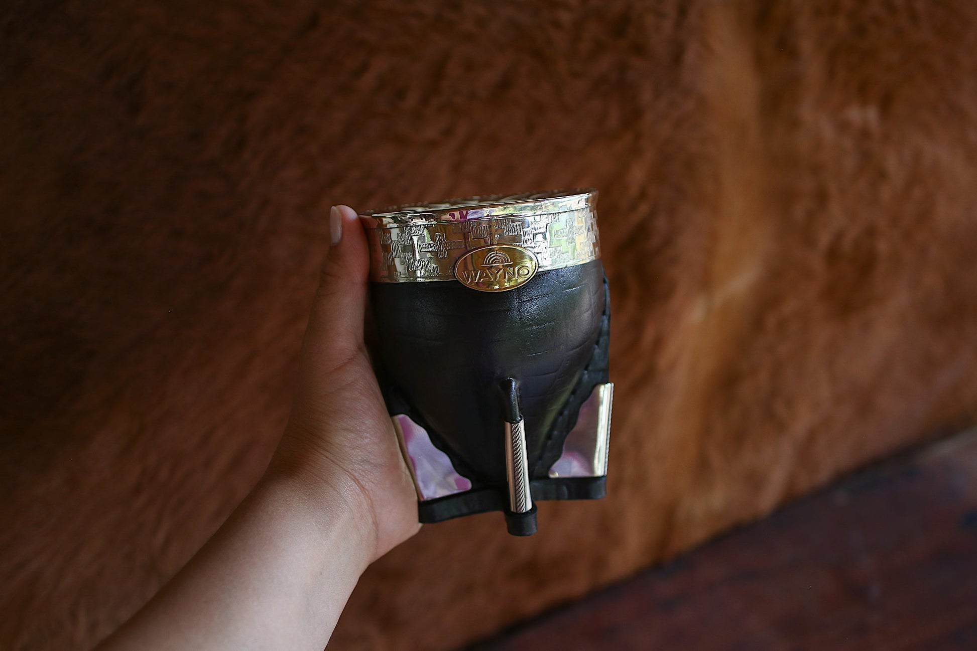 Mate imperial de porongo forrado artesanalmente en cuero natural.