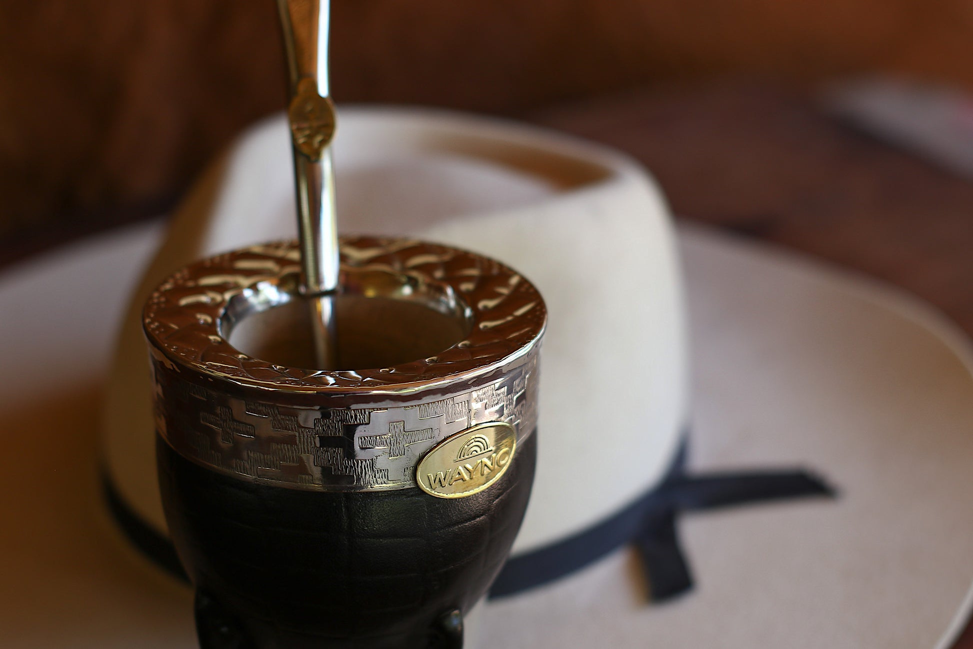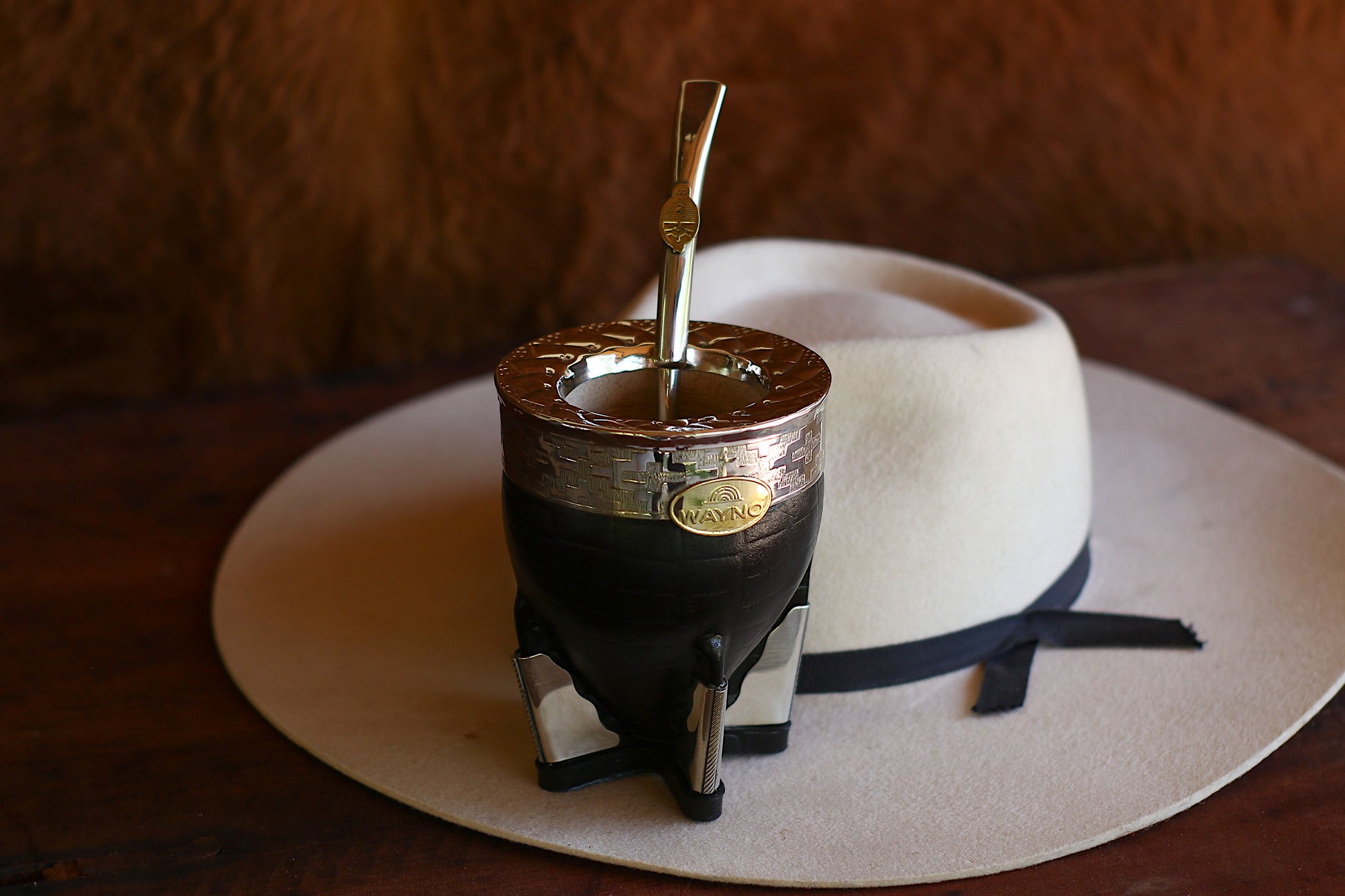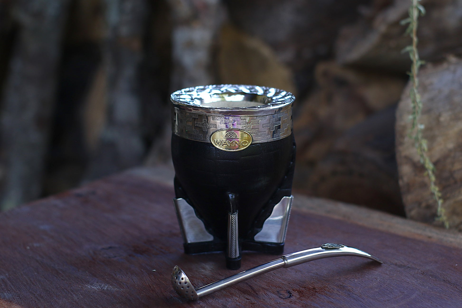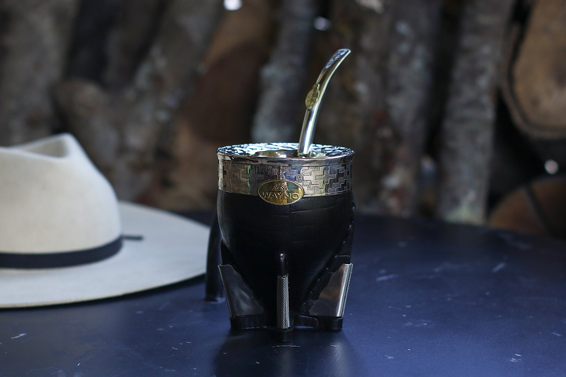 Mate imperial de porongo forrado artesanalmente en cuero natural.