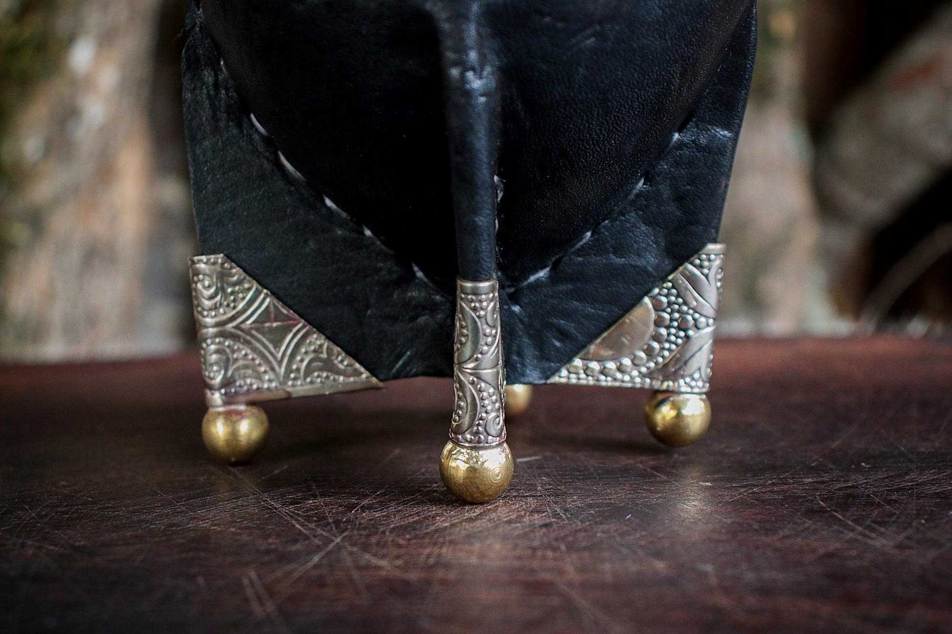 El cincelado de alpaca en virola y base es hecho a mano