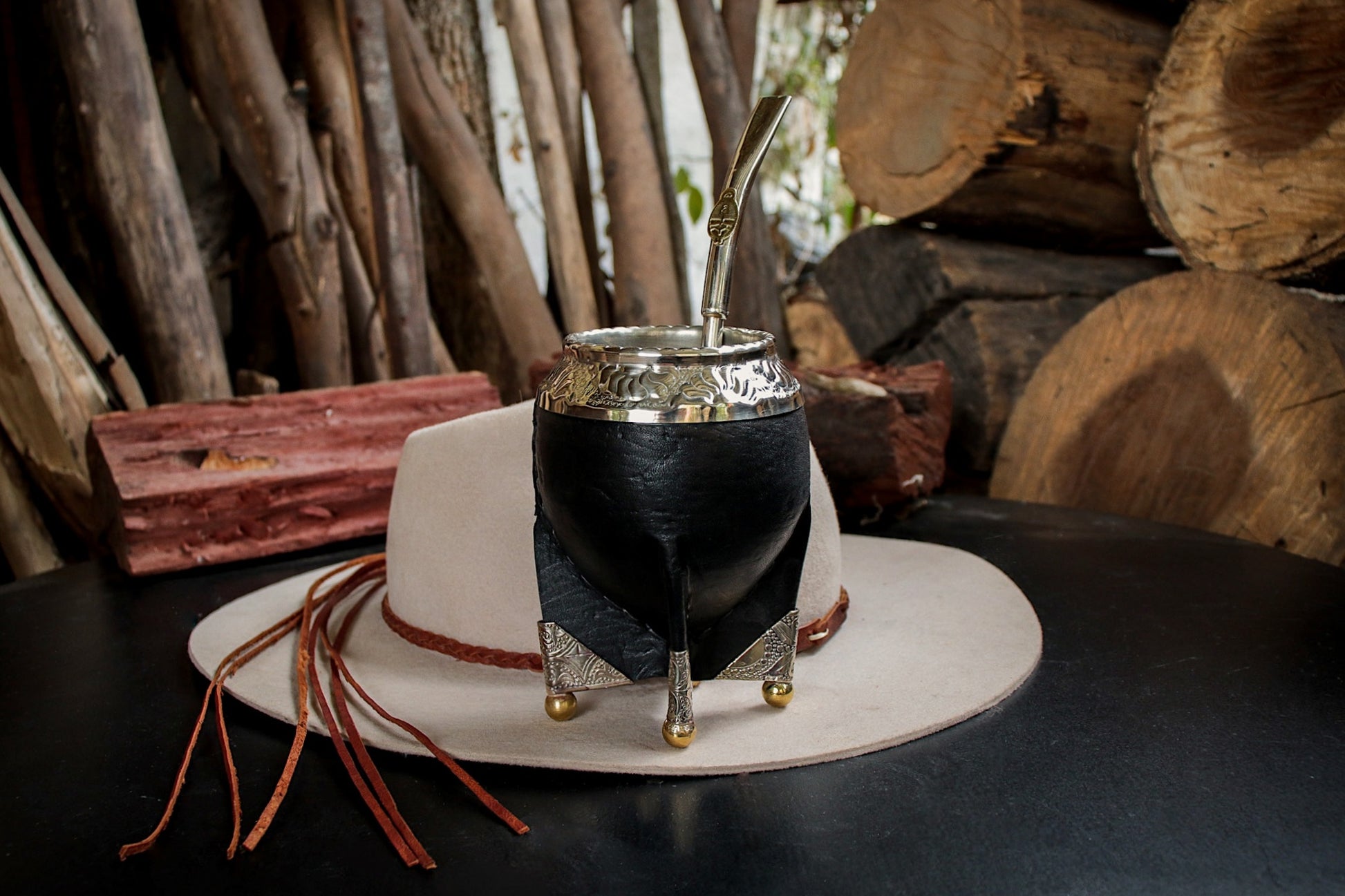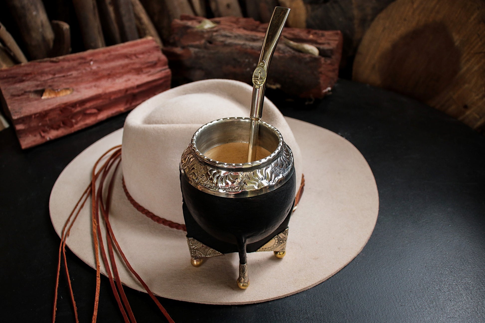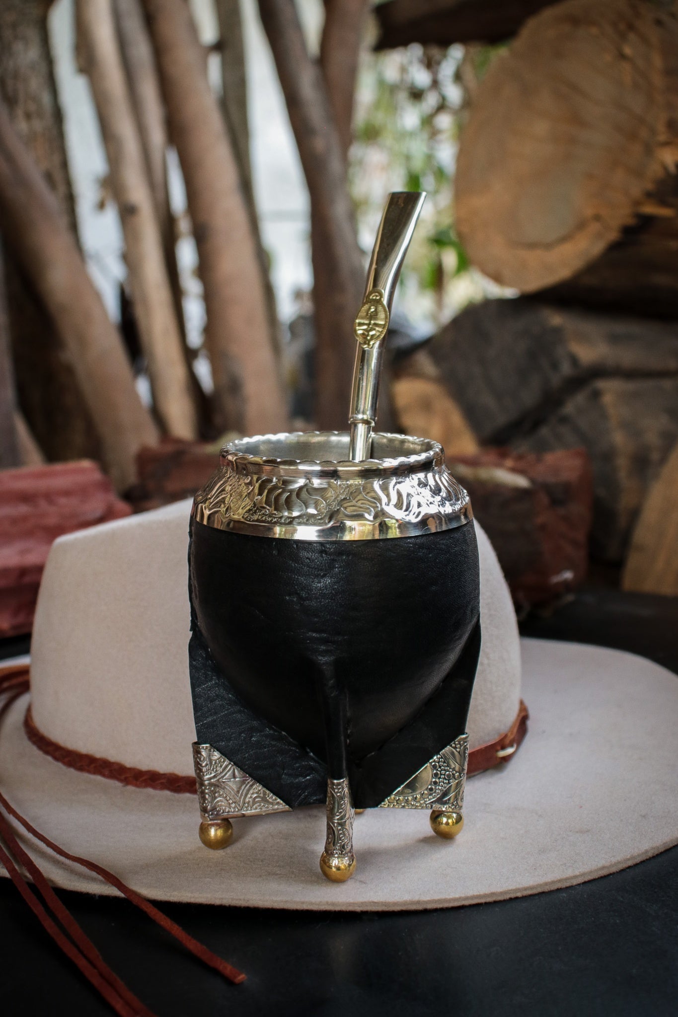 Imperial Cuero y Base de Alpaca con Bombilla Escudo