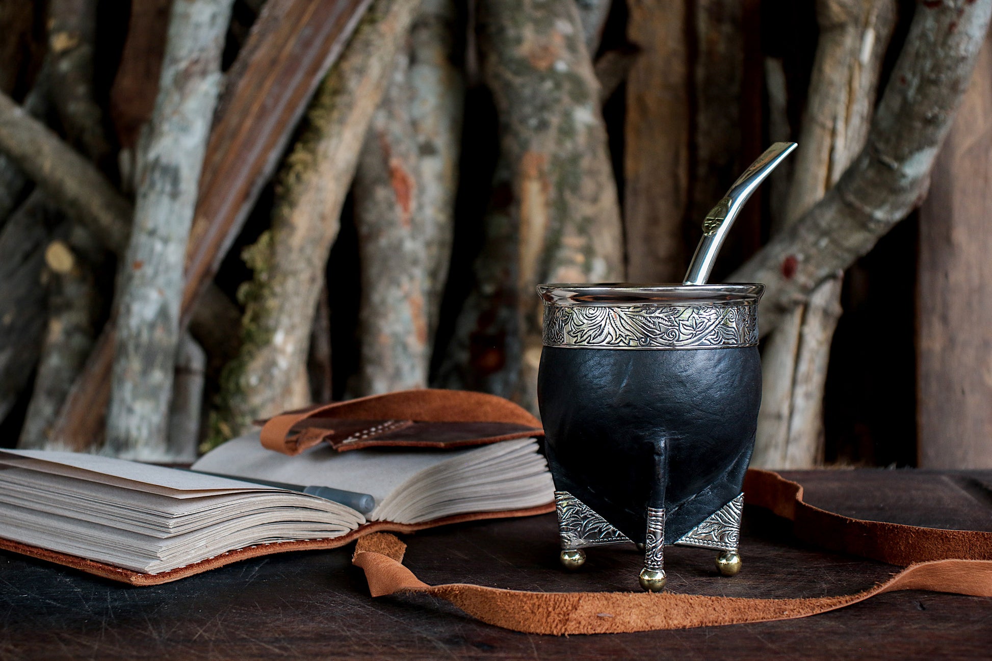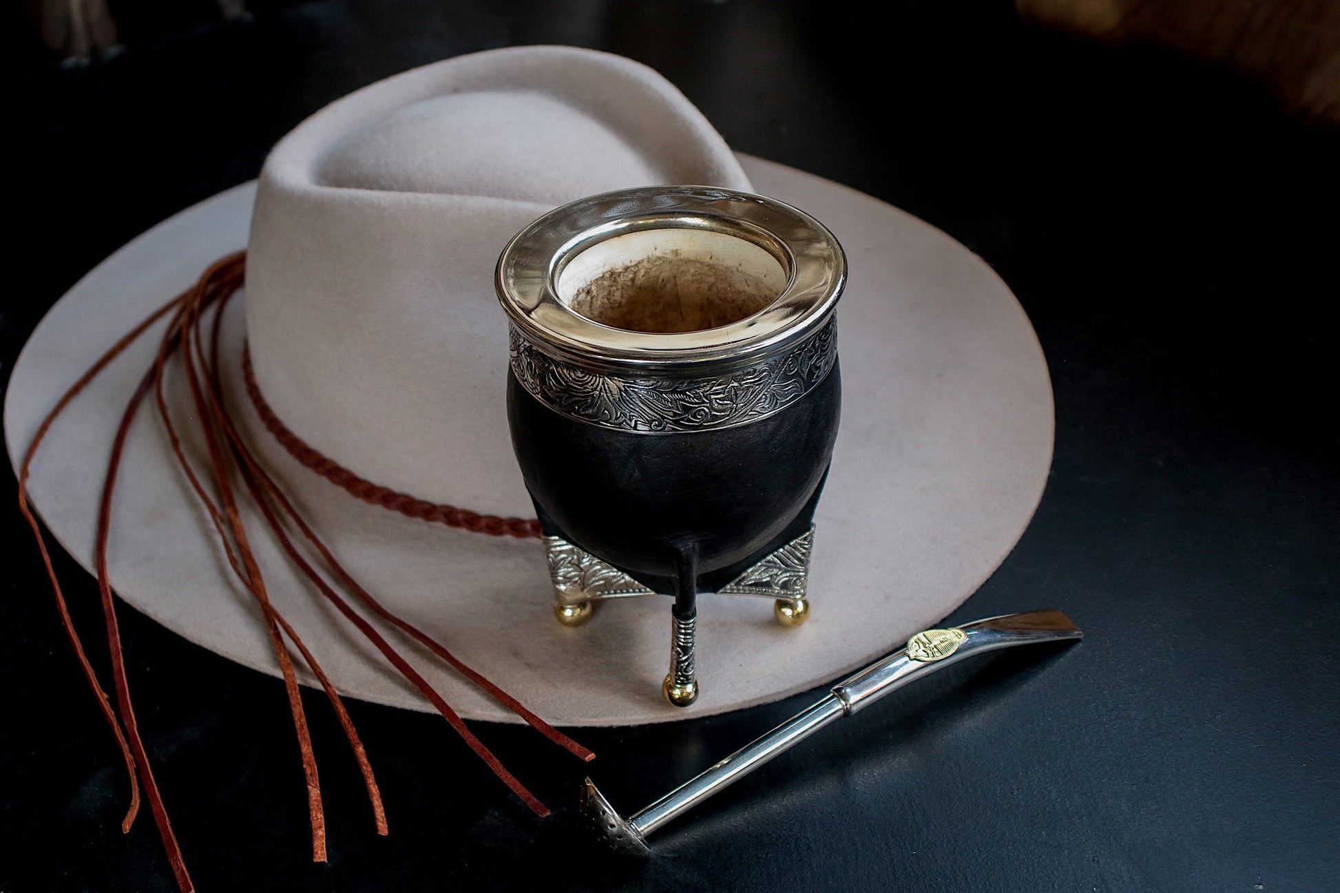 Imperial Cuero y Base de Alpaca con Bombilla Escudo