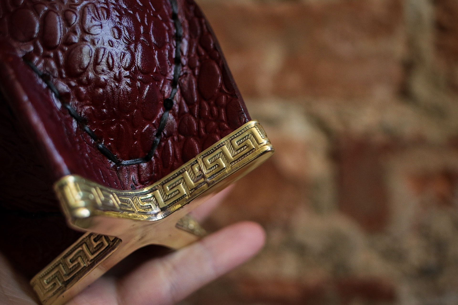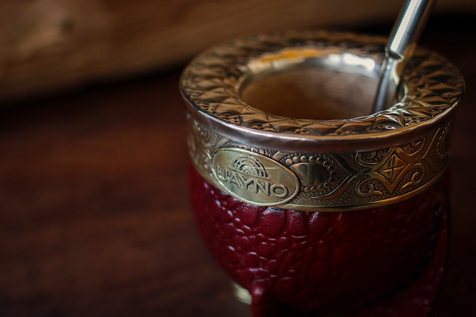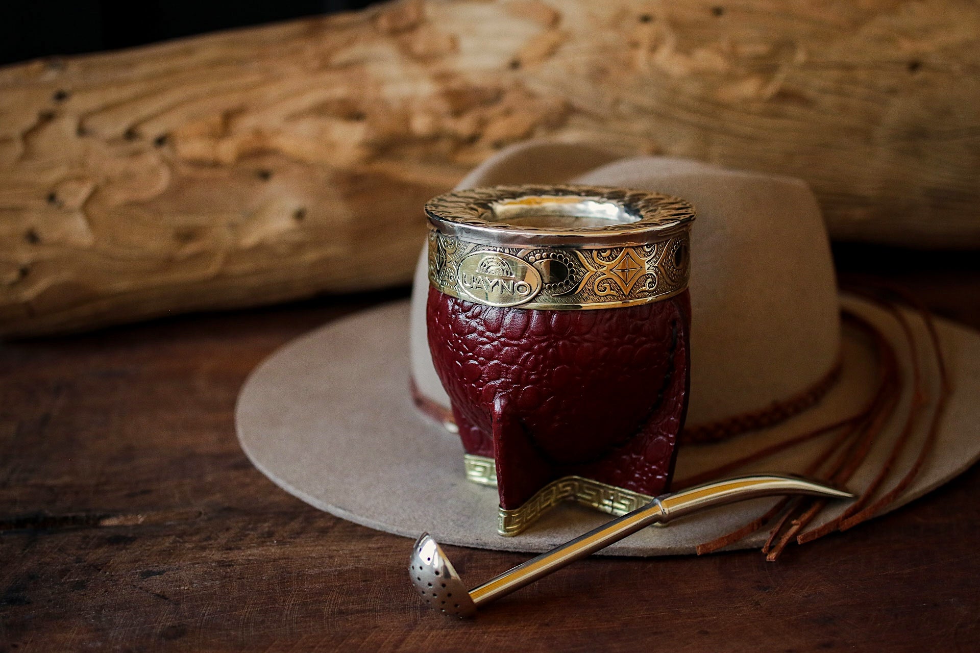 Mate imperial de porongo forrado artesanalmente en cuero natural repujado artesanalmente