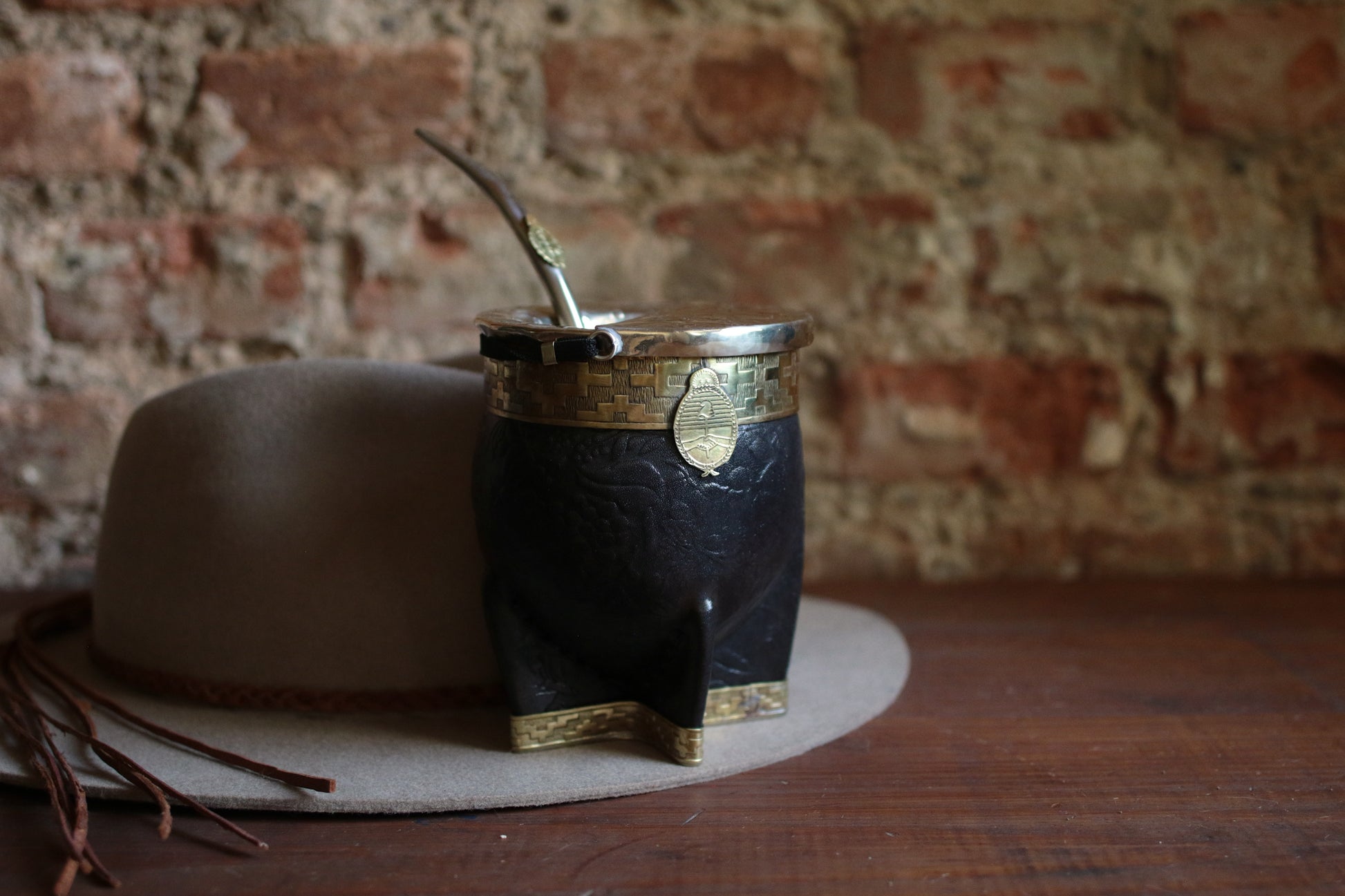 Imperial Cuero y Bronce con Escudo, Matepa y Bombilla