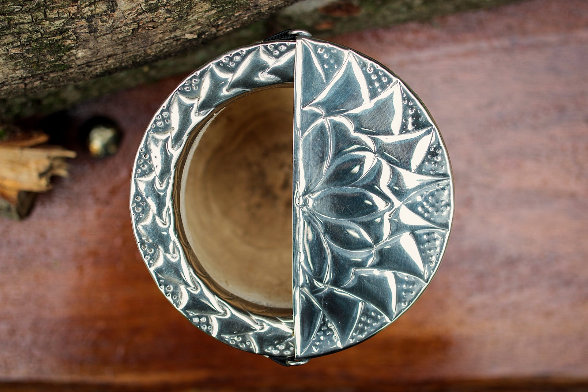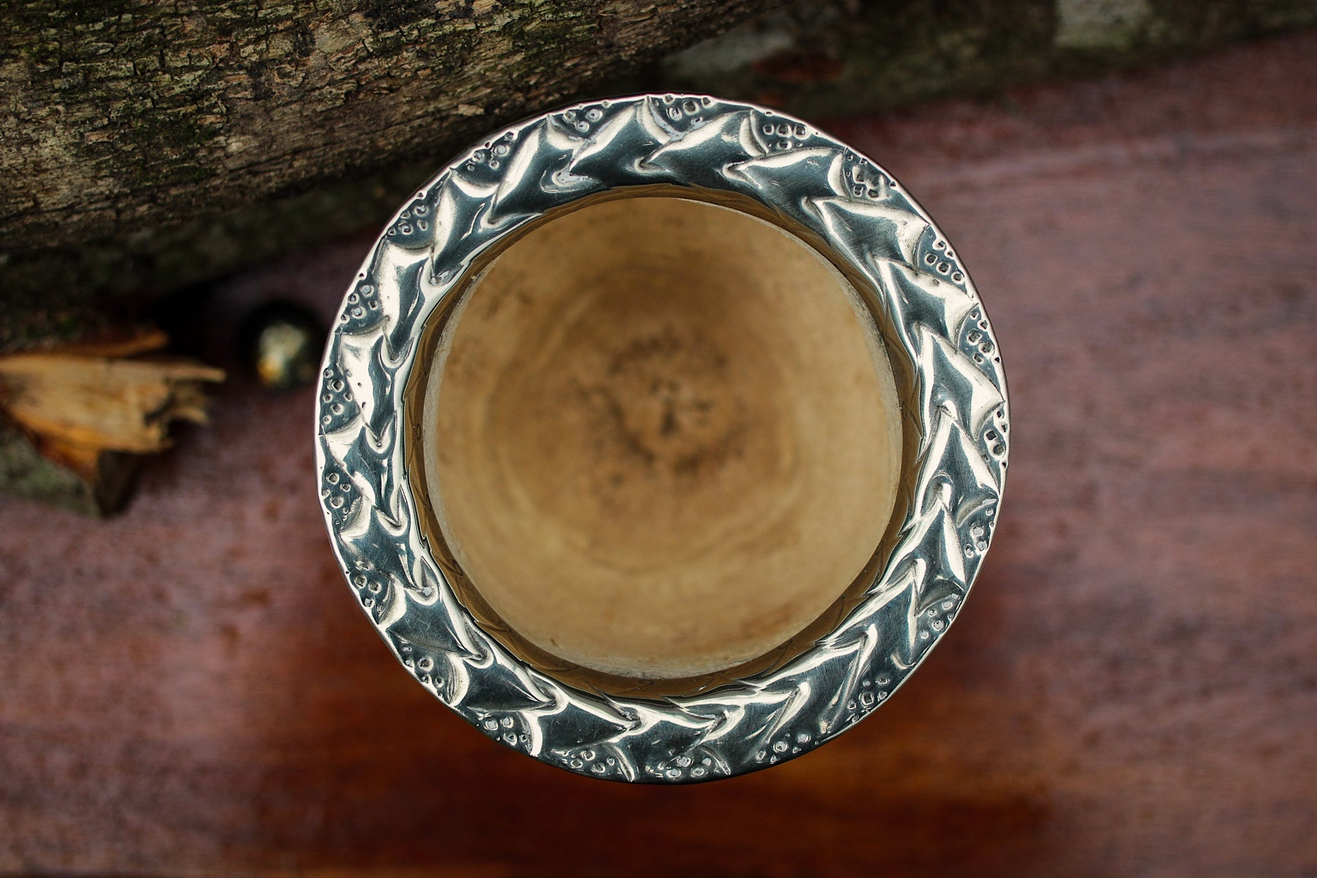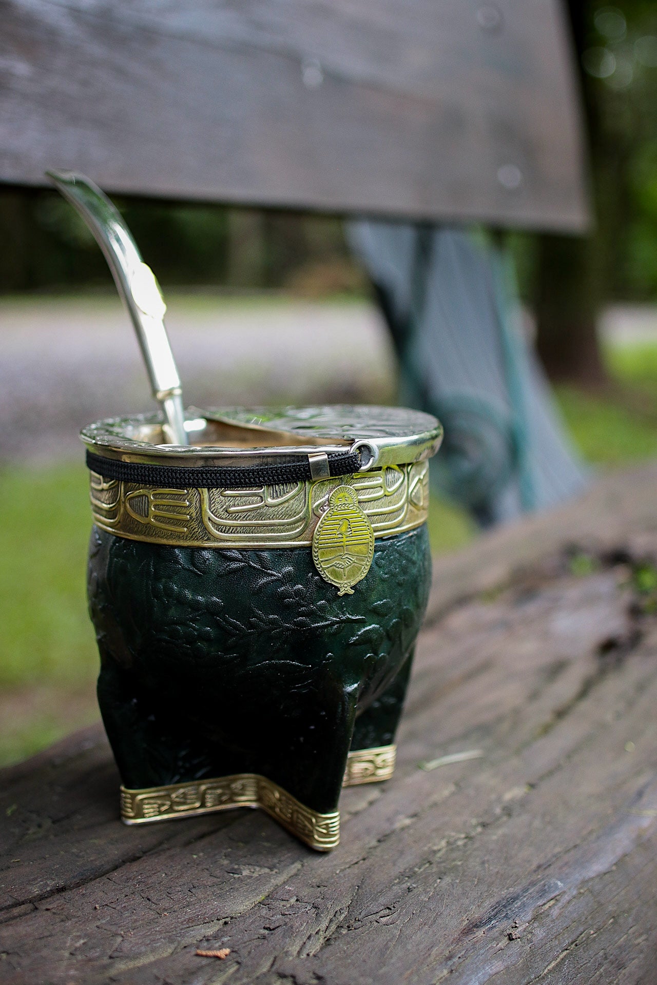 Mate imperial de porongo forrado artesanalmente en cuero natural con matepa de alpaca
