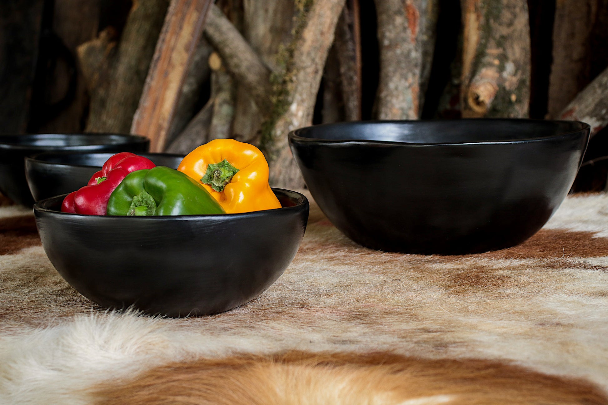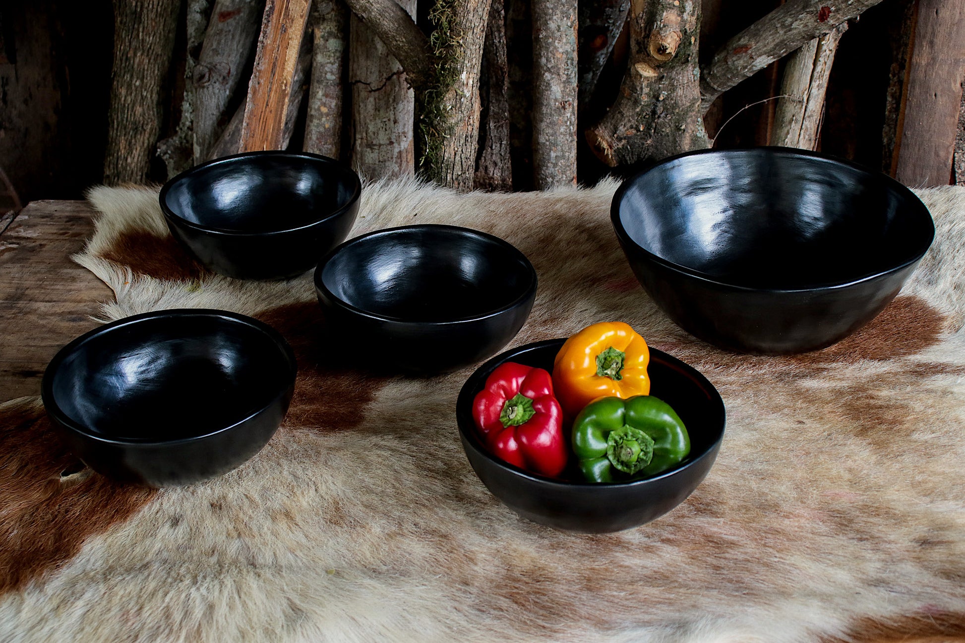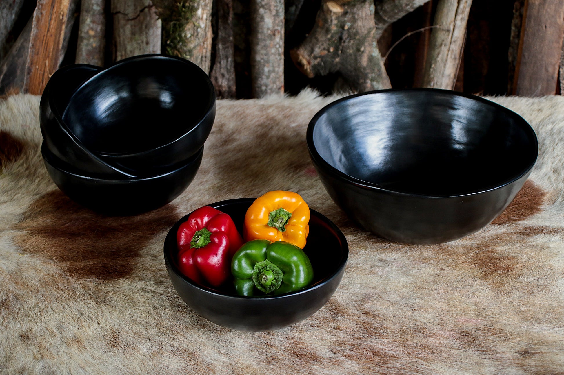 1 Cuenco Grande y 4 Cazuelas de arcilla cocida a temperatura extrema (1180 grados), esto mejora su durabilidad y resistencia a temperaturas en hornos y microondas