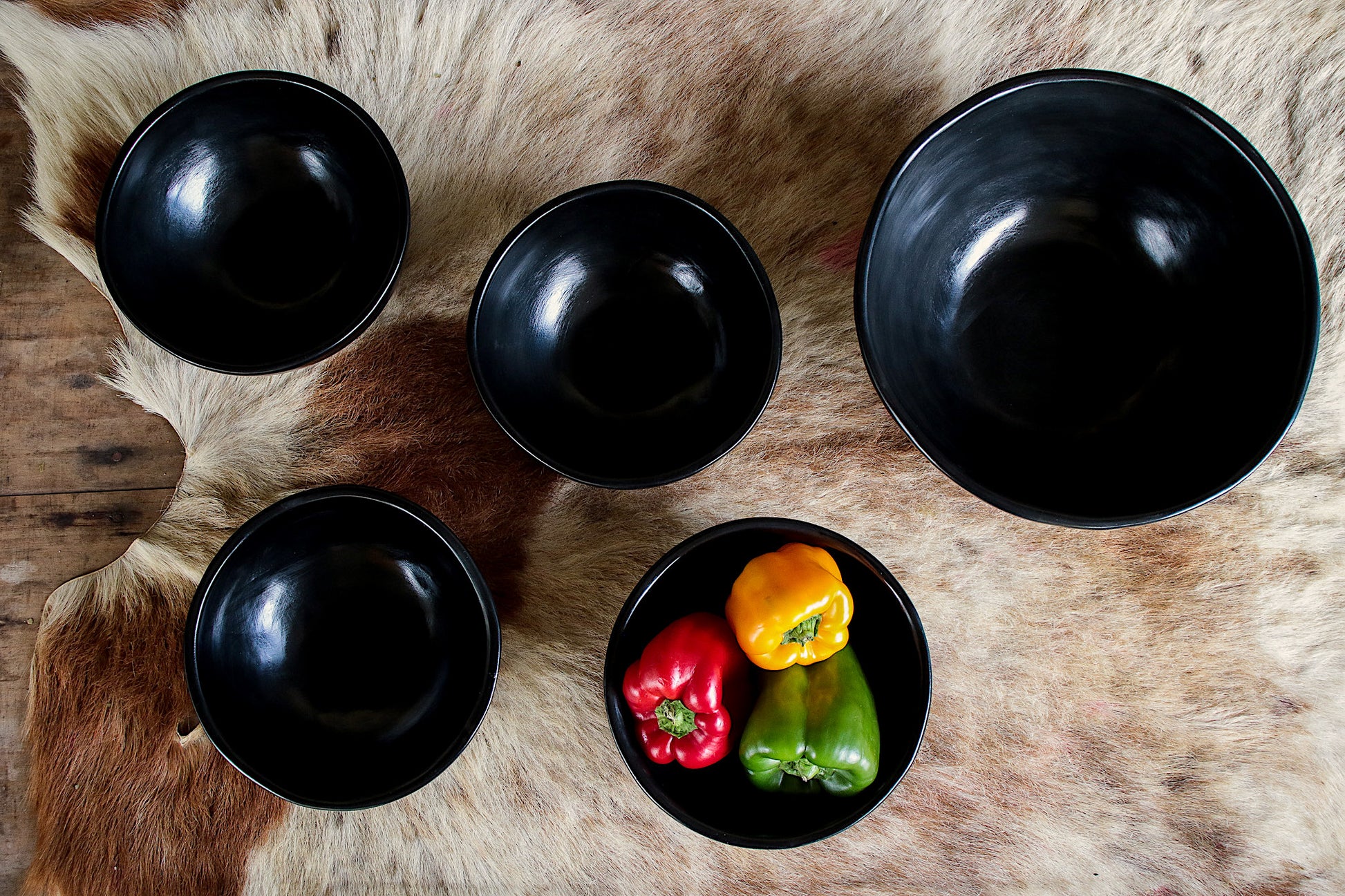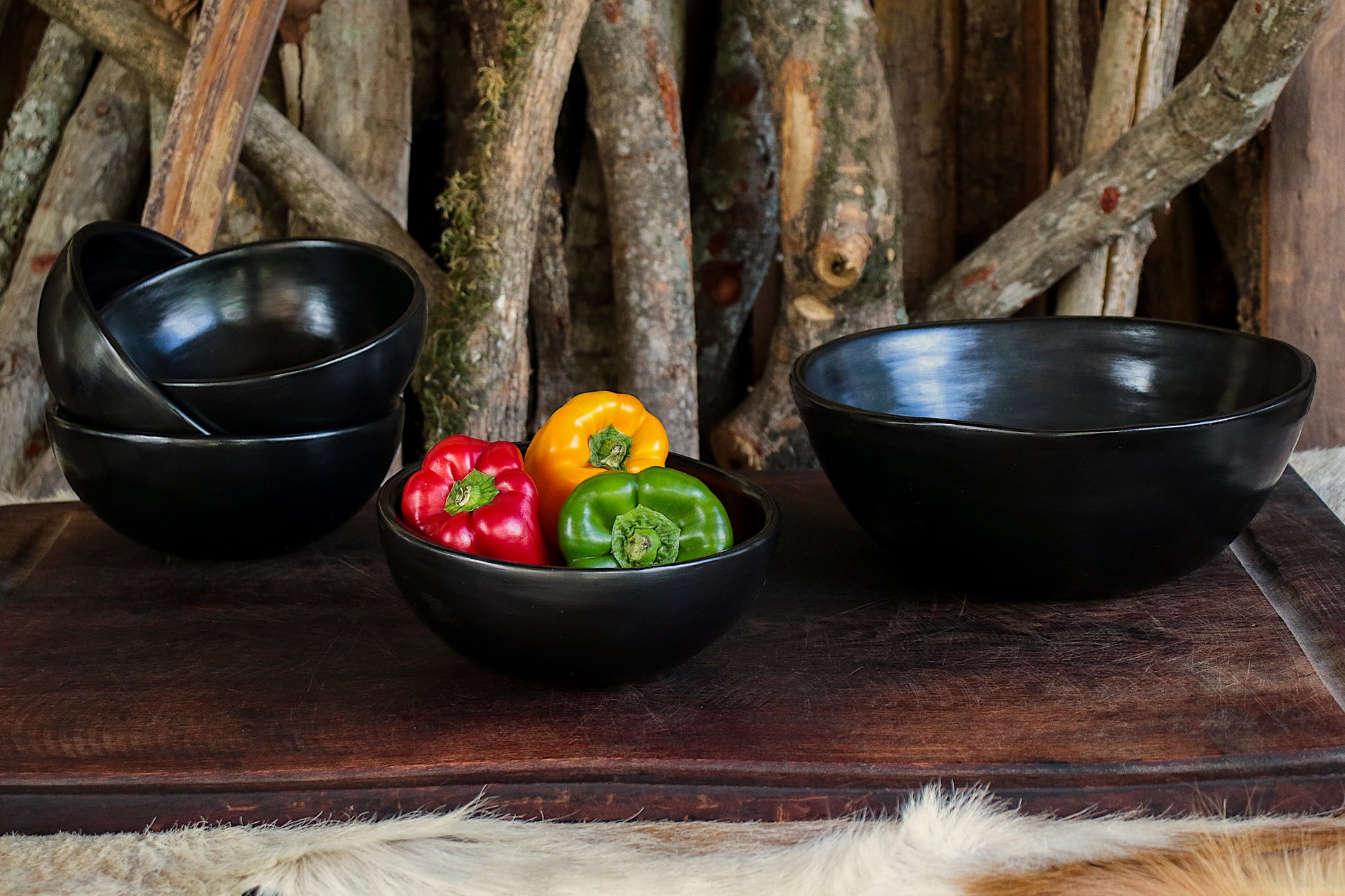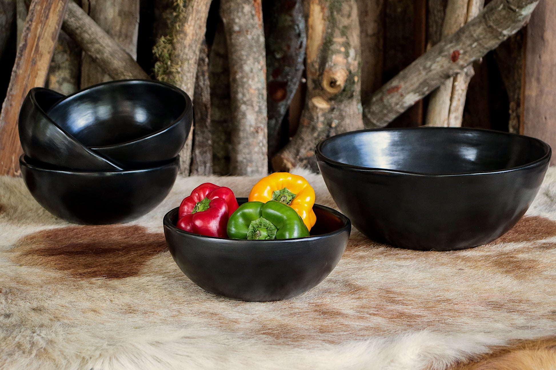 1 Cuenco Grande y 4 Cazuelas de arcilla cocida a temperatura extrema (1180 grados), esto mejora su durabilidad y resistencia a temperaturas en hornos y microondas