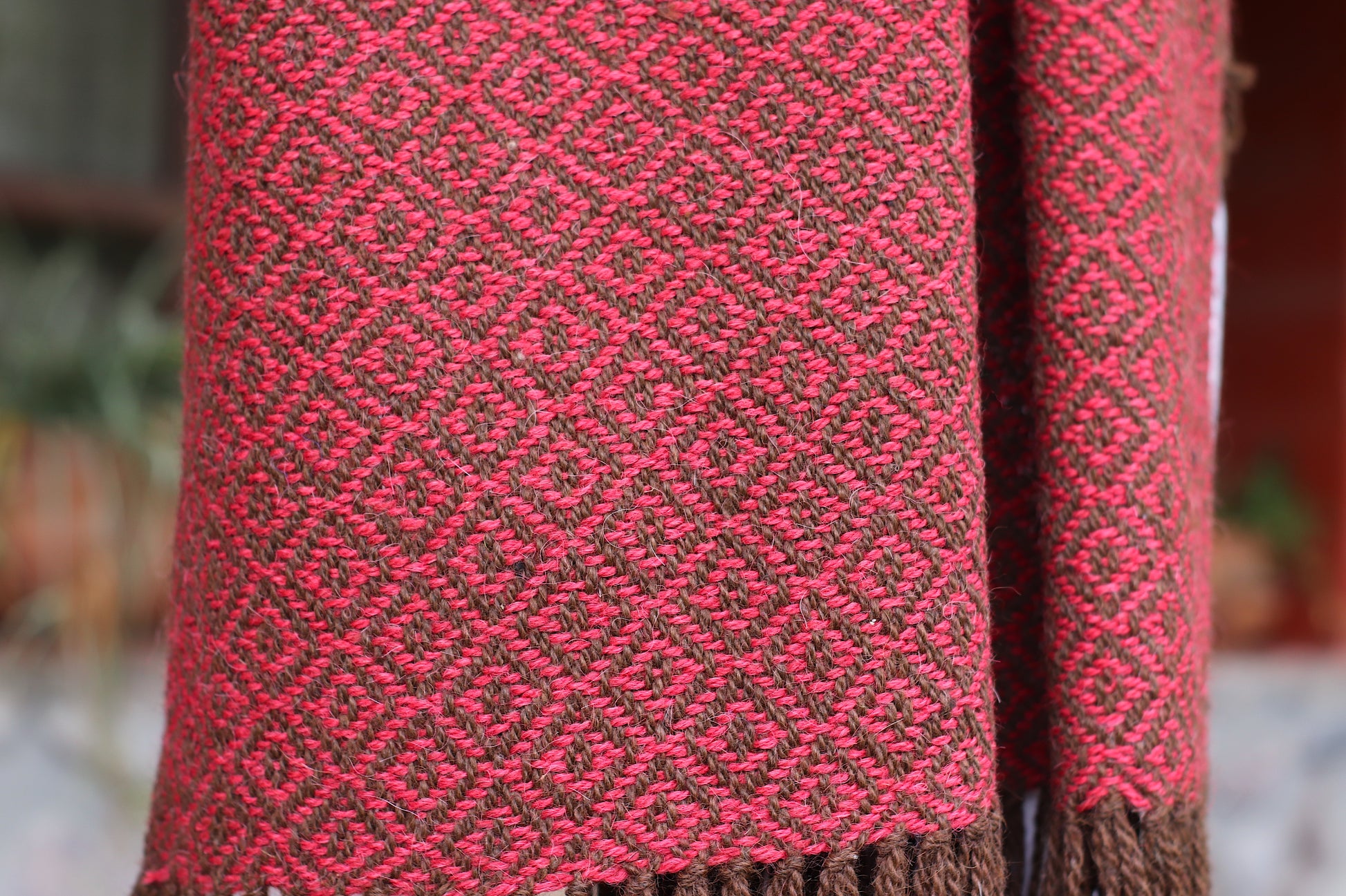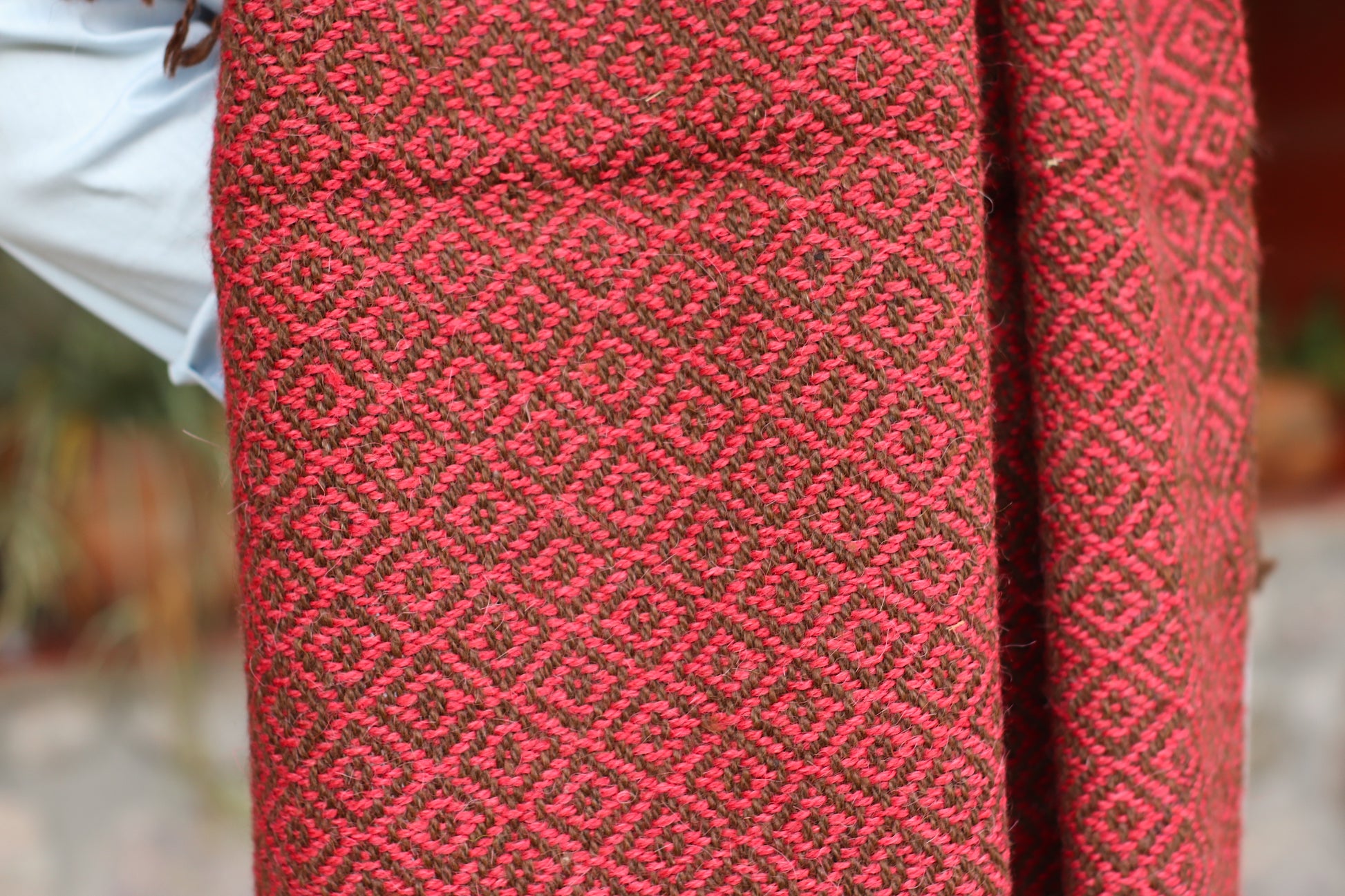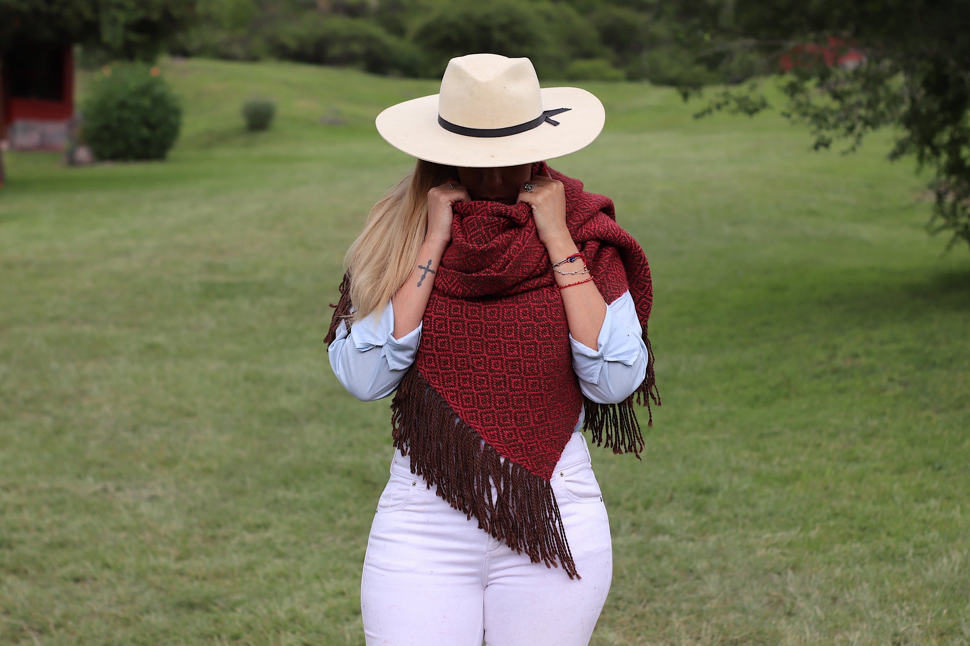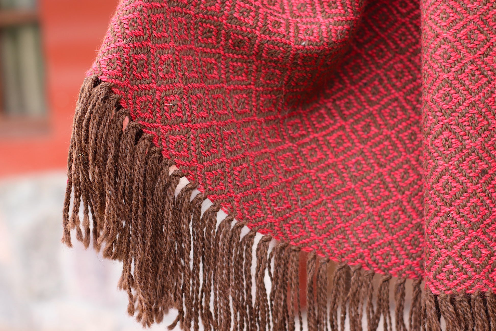 Manta AIRAMPO es parte de la colección "Las Marias" hilada de fibra de llama baby y hecha en telar con técnica Ojo de Perdiz.