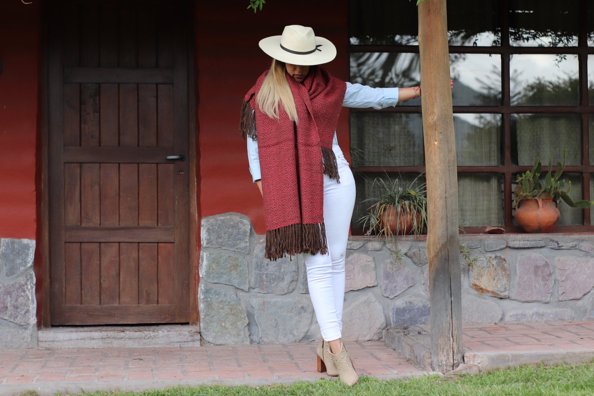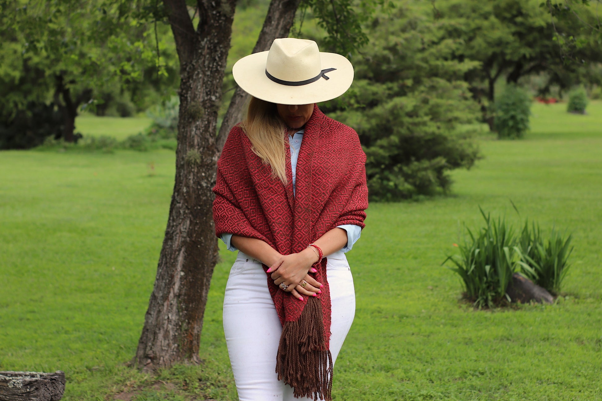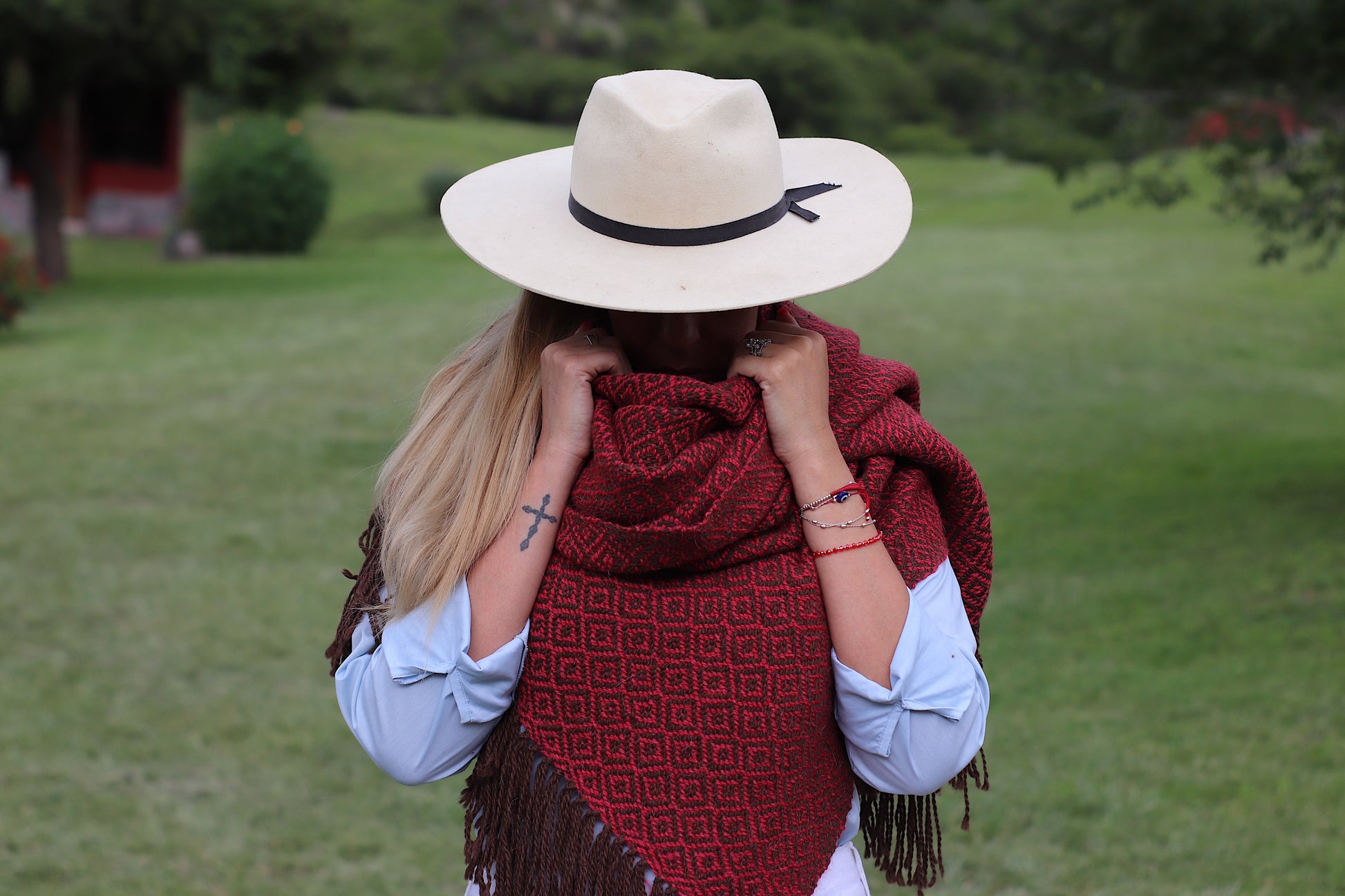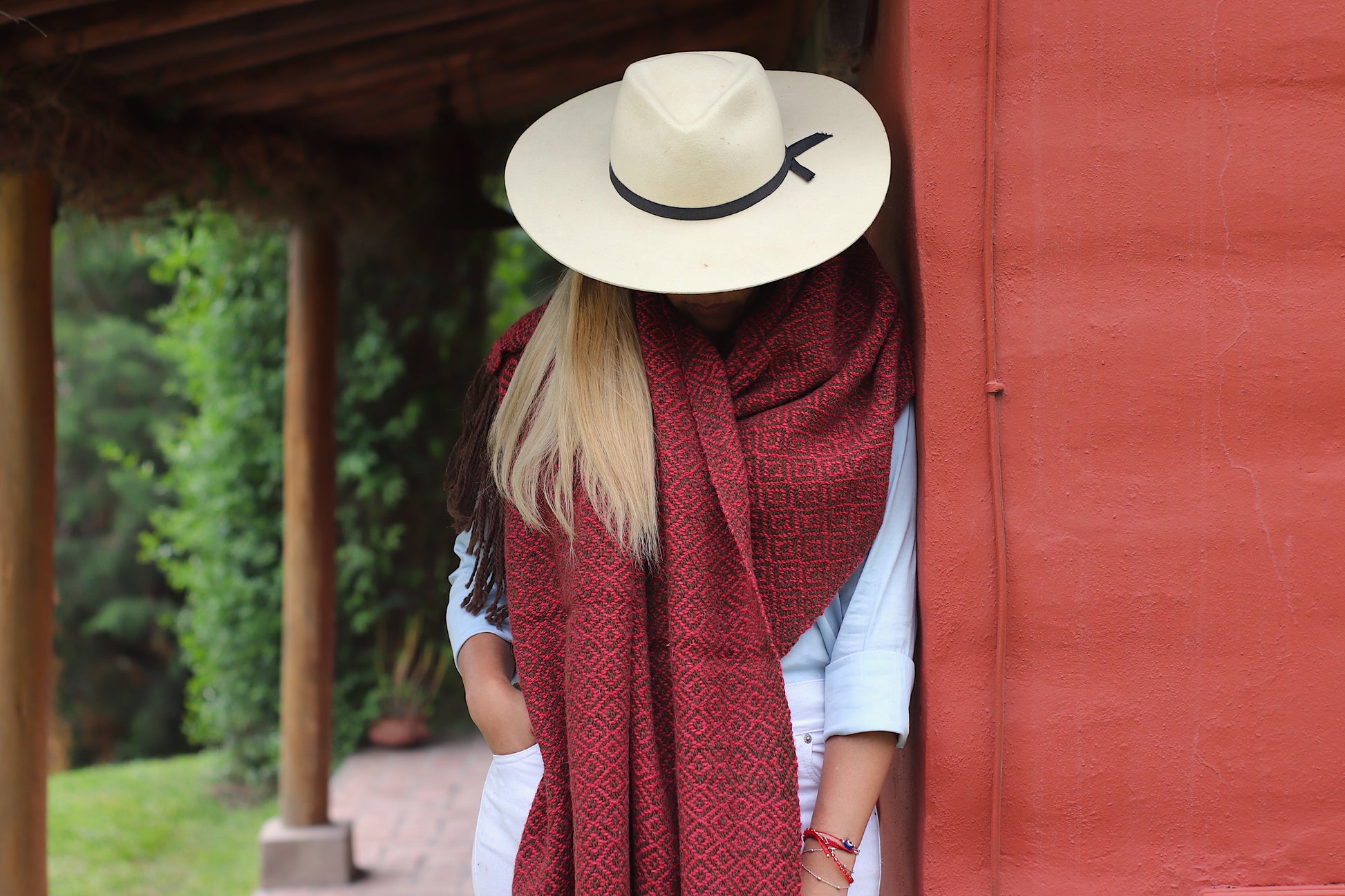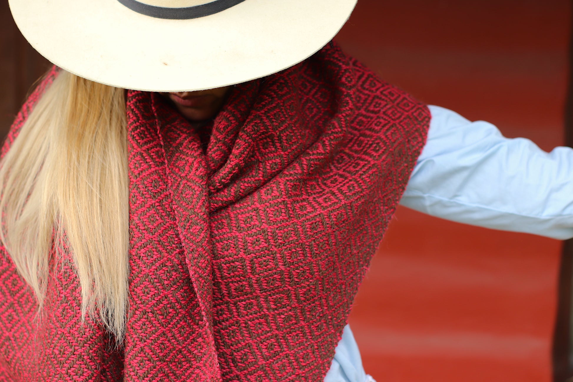 Manta AIRAMPO es parte de la colección "Las Marias" hilada de fibra de llama baby y hecha en telar con técnica Ojo de Perdiz.